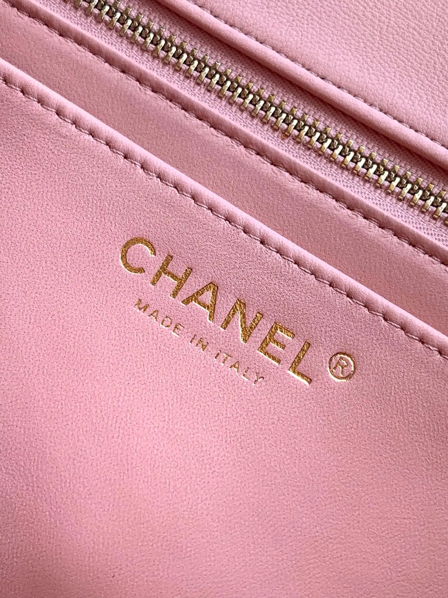 Top Grade Old Factory Sakura Pink Large CF 23cm CHANEL 25B Double C Adjustable Buckle Square Vanity Case, Return Style Double Logo Chain Bag Explosive Charm and Superb Appearance..