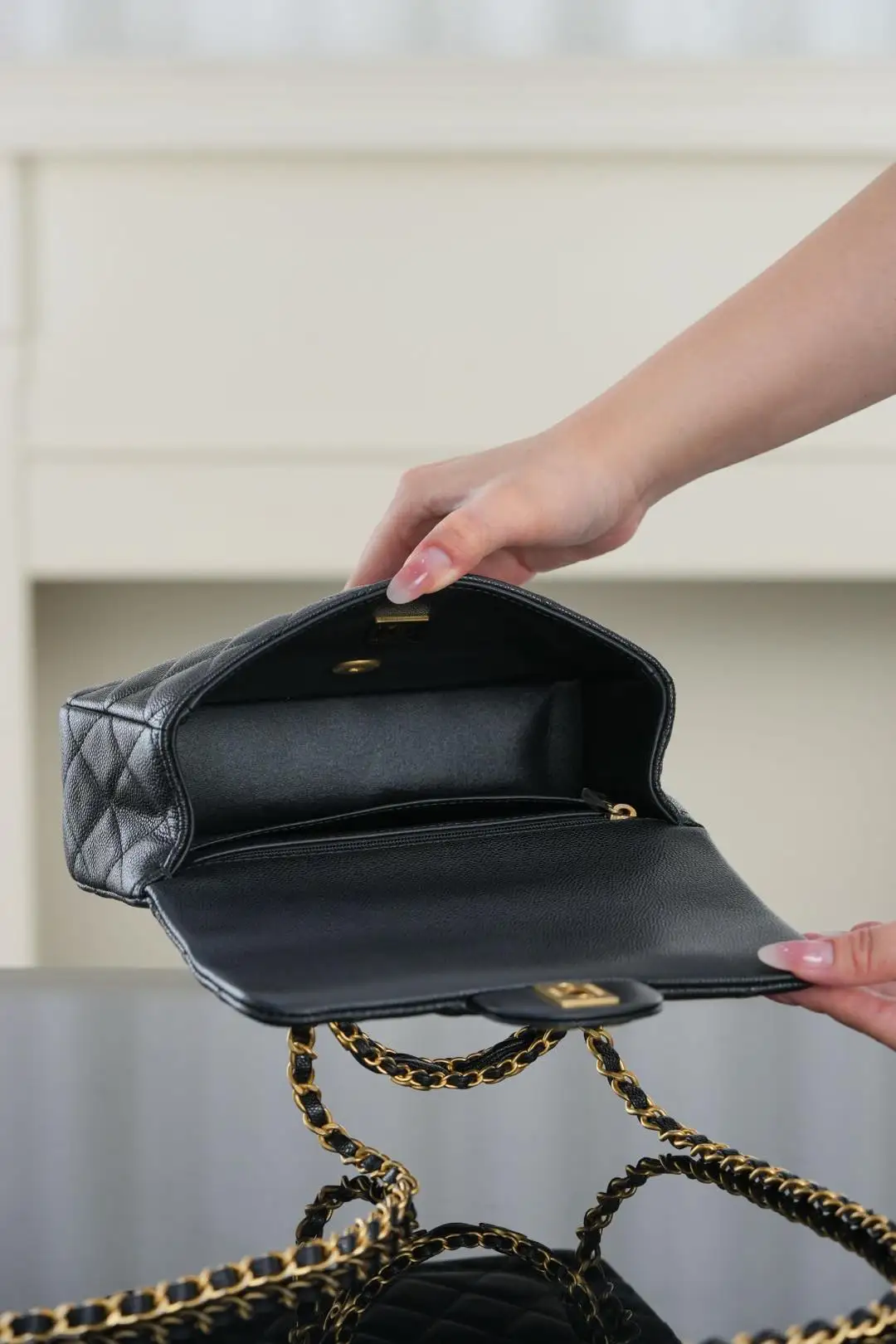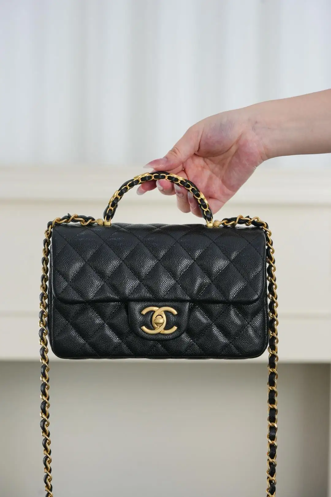 Top-tier Original Code Chanel 25B Double C Handle CF Mini Black. The new 25B series is here with vintage, distressed hardware,荔枝calfskin, and the CF mini size. Every detail hits the mark. The cute size is just right. The double C thick gold interwoven with leather on the handle, whether it s the appearance or the curve and texture that fits the palm when hand-carried, is enough to feel the brand s ingenuity. The long chain can be worn crossbody or on the shoulder, with multiple ways to wear it that are versatile and classic. It s simply perfect and impeccable!! Size: 12x19.5x6.5cm. Retail Price: 50,000 RMB.