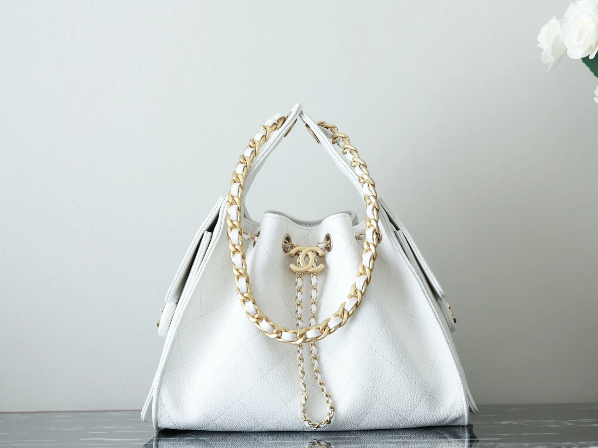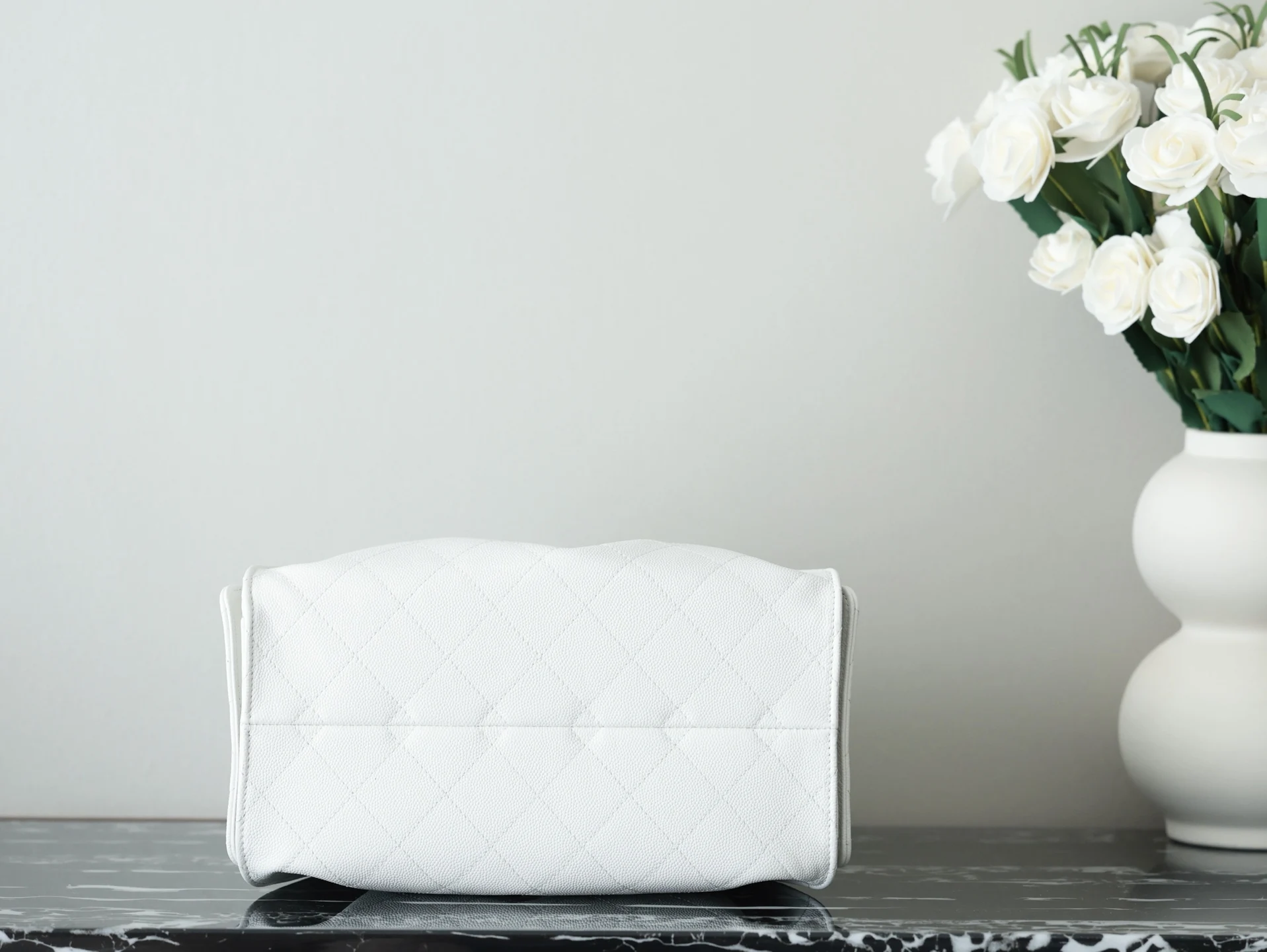 Top-tier original chip Chanel 25. The 25 bag offers a rich selection of materials and colors, with grained calfskin providing a soft and durable texture. The classic white is versatile and timeless, easily adapting to various styles and meeting the needs of different occasions and personalities. Dimensions: 30*26*14cm
