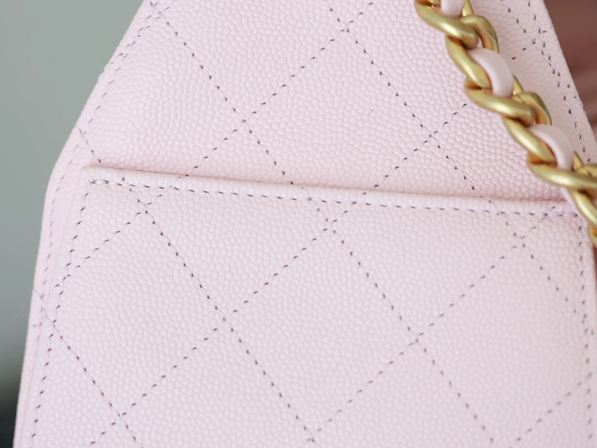Premium original chip version Chanel 25 series, from classic black and white to colorful macaron colors, to cool metallic colors and denim materials, rich colors and materials for you to choose from. The pink model is gentle and sweet, matched with a tough bag shape. Size: 30*26*14cm