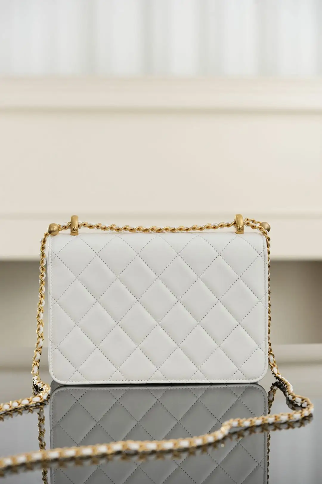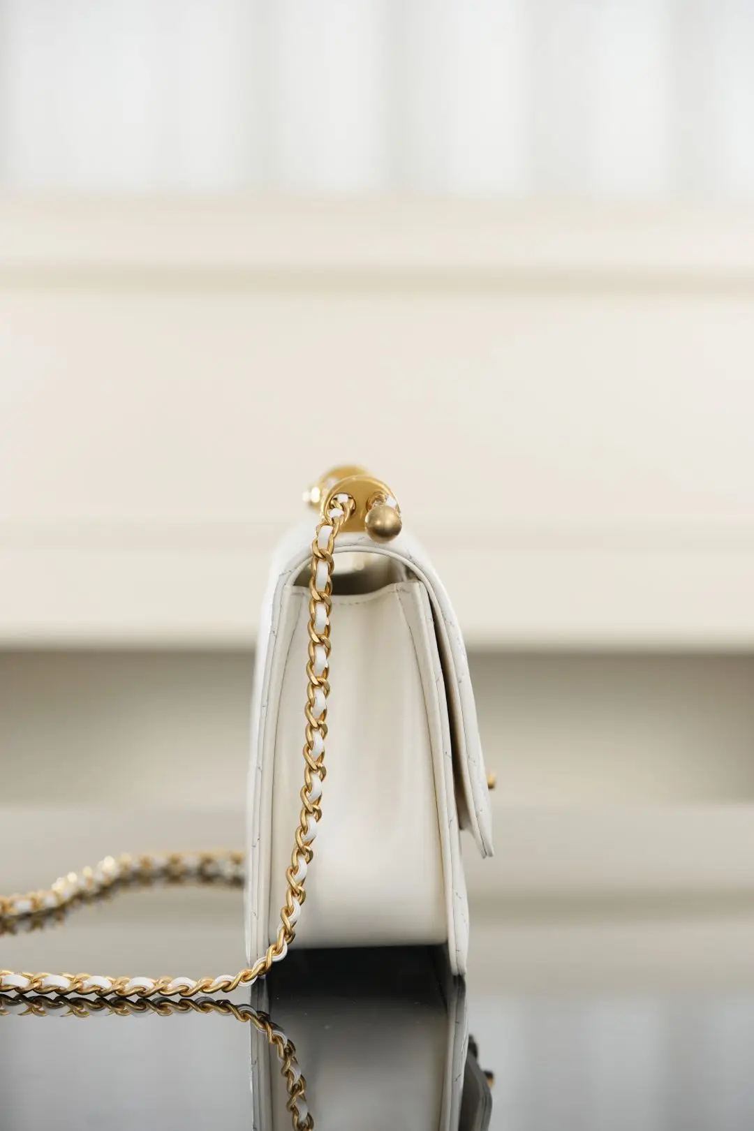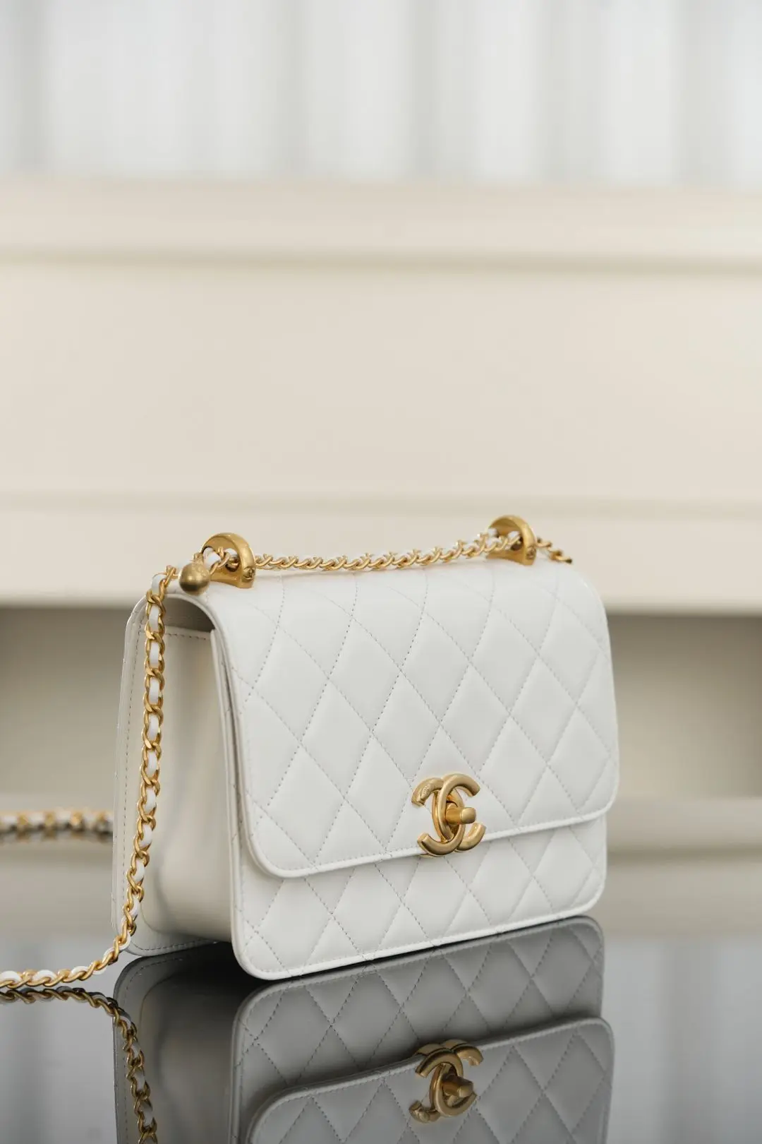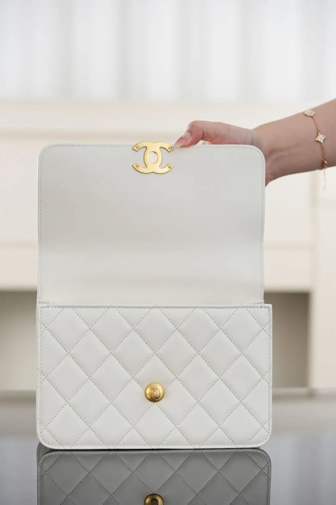 Original Chip Version ๐๐๐๐ก๐๐ ๐๐๐ฌ Original Calfskin Double Gold Ball ๐๐๐๐ฆ White French ๐๐๐๐ฌ Original Smooth Calfskin with a delicate and glossy feel. Antiqued hardware paired with a newly upgraded gold interior! It continues Chanel s long-standing aesthetic and practicality, balancing strength and elegance in its design principles. Every detail exudes sophistication, embodying understated luxury. Size: 14.5*22*8cm