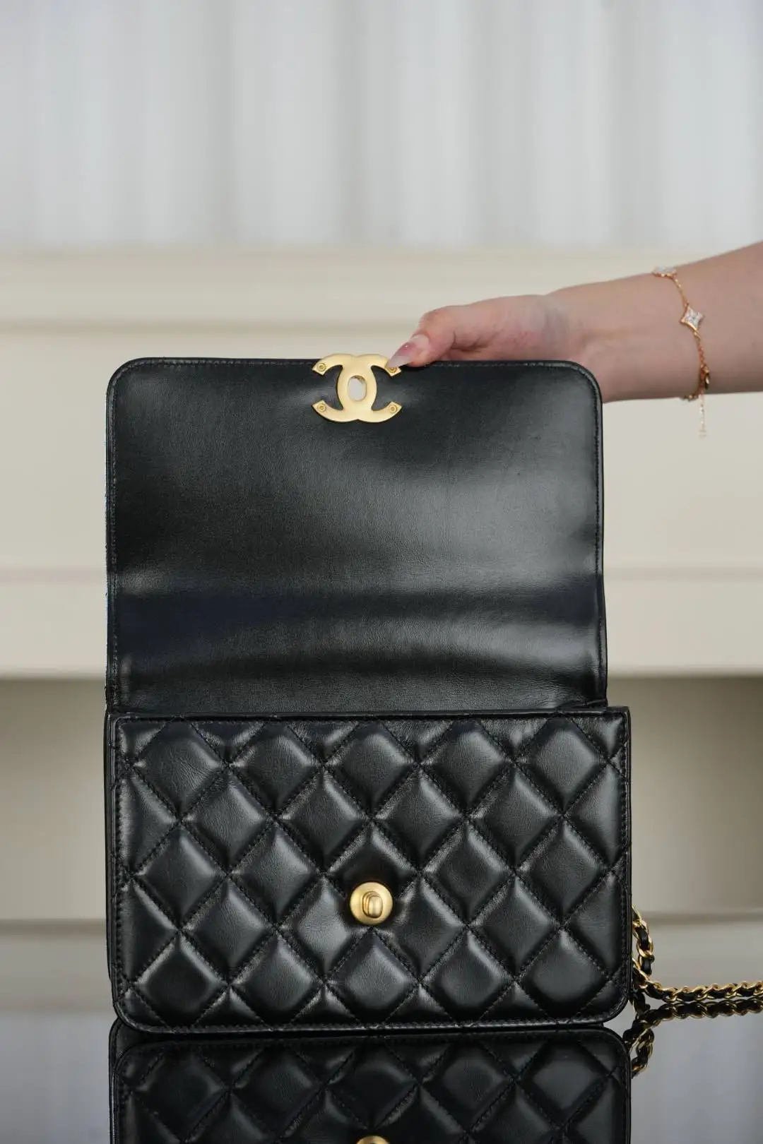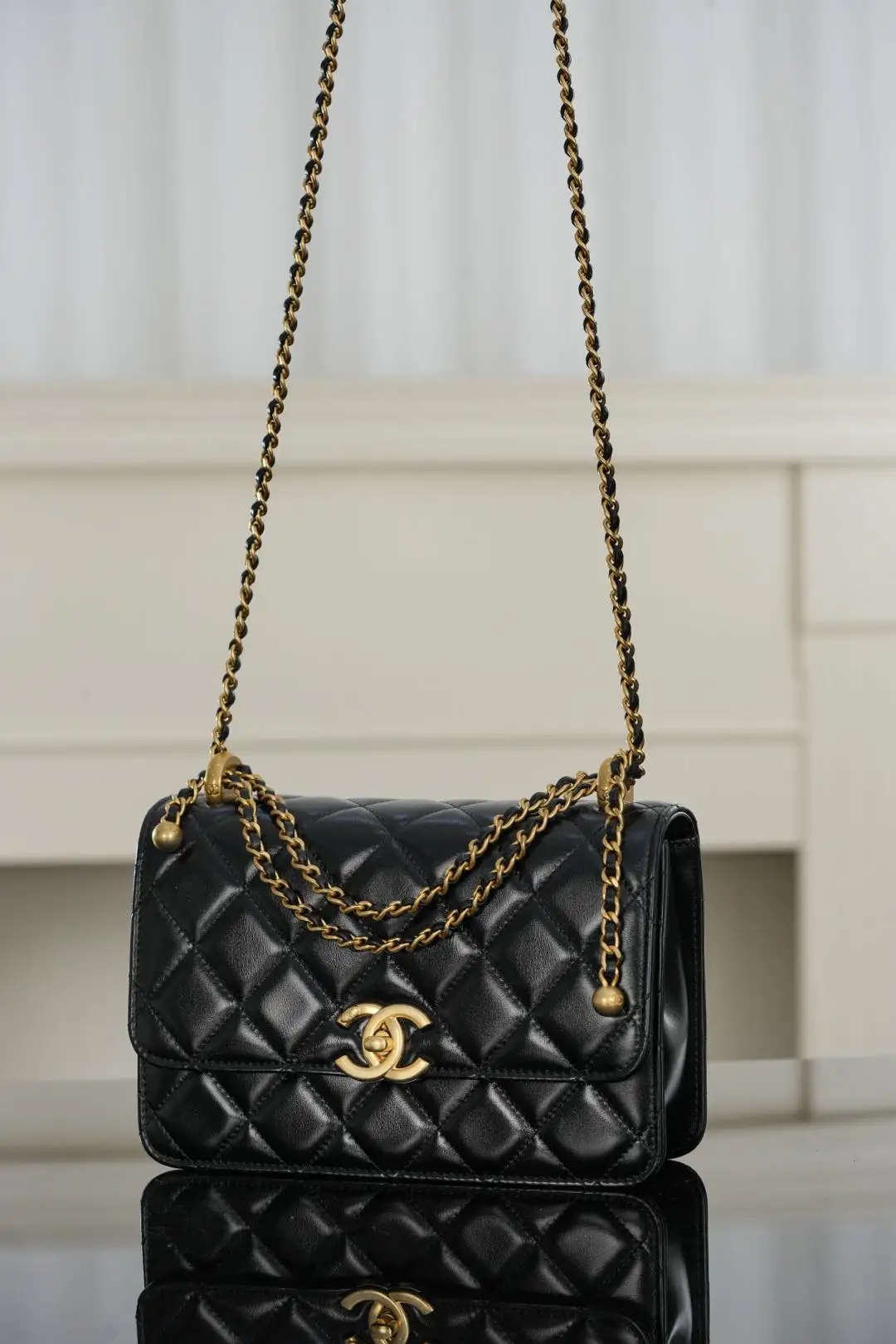 Original factory chip version ๐๐๐๐ก๐๐ ๐๐๐ฌ in original calfskin with double gold balls, ๐๐๐๐ฆ. Black French ๐๐๐๐ฌ original smooth calfskin offers a delicate and lustrous feel. Features aged hardware with a newly upgraded gold interior lining! Continuing the aesthetic and practicality of Chanel handbags, it balances strength and elegance in its design principles. Every detail exudes sophistication; understated and luxurious perfectly describe it. Dimensions: 14.5*22*8cm