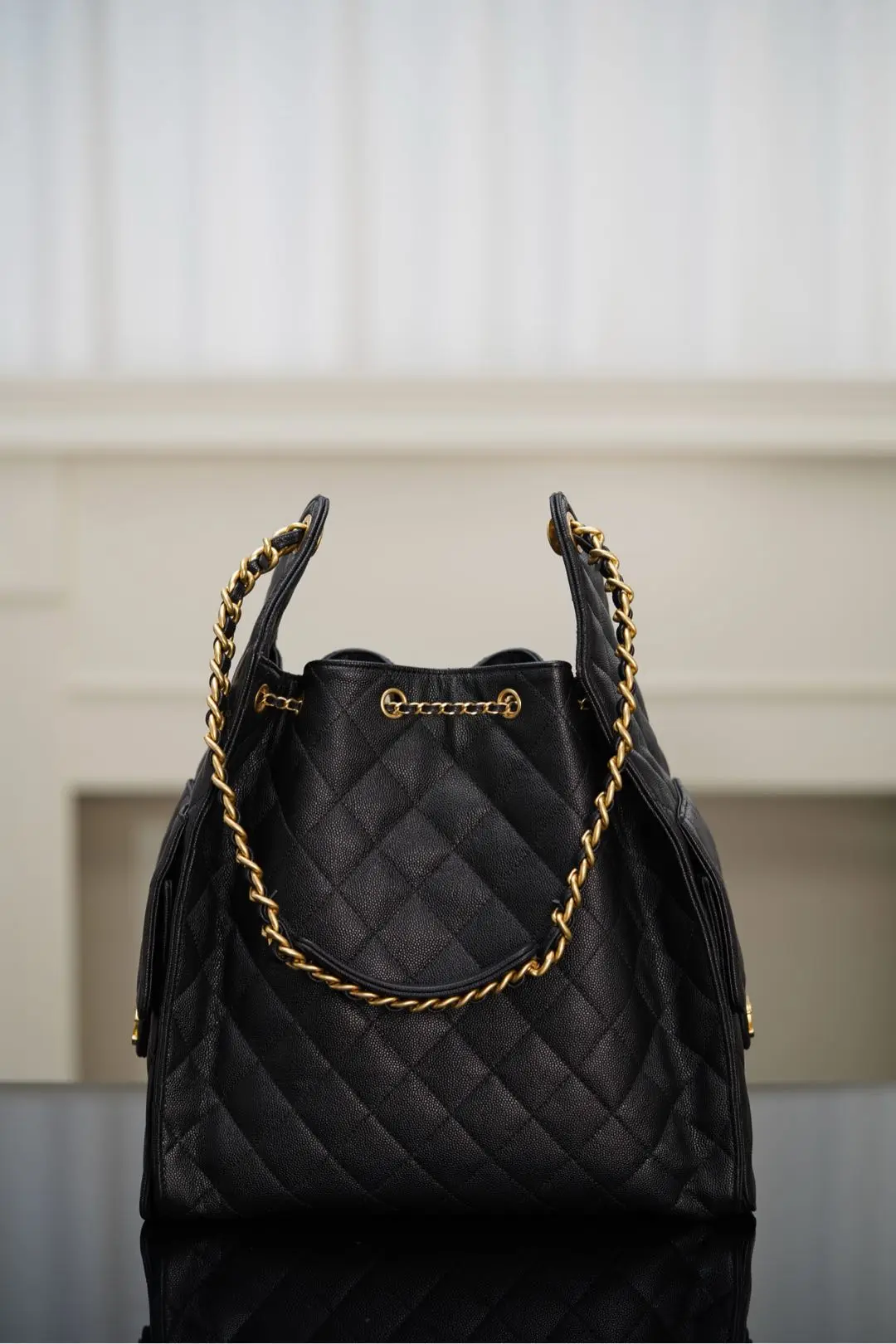 Top grade original factory scanned official website 𝐂𝐡𝐚𝐧𝐞𝐥 𝟐𝟓𝐬 𝐡𝐨𝐛𝐨 𝐛𝐚𝐠 Drawstring Bucket Bag Black Gold Caviar Large size. This season s hit, the Hobo, is absolutely stunning at first glance! Extremely popular since its debut on the runway. Named after the 25bag, just like the 22bag that has been popular for many years! This 25bag is predicted to be a hit in the Year of Yisi! The multi-pocket design is full of casual and lazy vibes. The caviar texture is not too heavy, but rather delicate. The adjustable drawstring design at the opening is very practical, instantly transforming into a bucket bag. The size is moderate, a must-have item for cool girls. Absolutely love it!! Size: 40x30x15cm