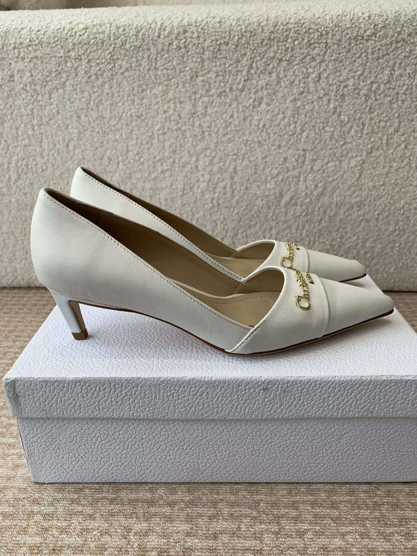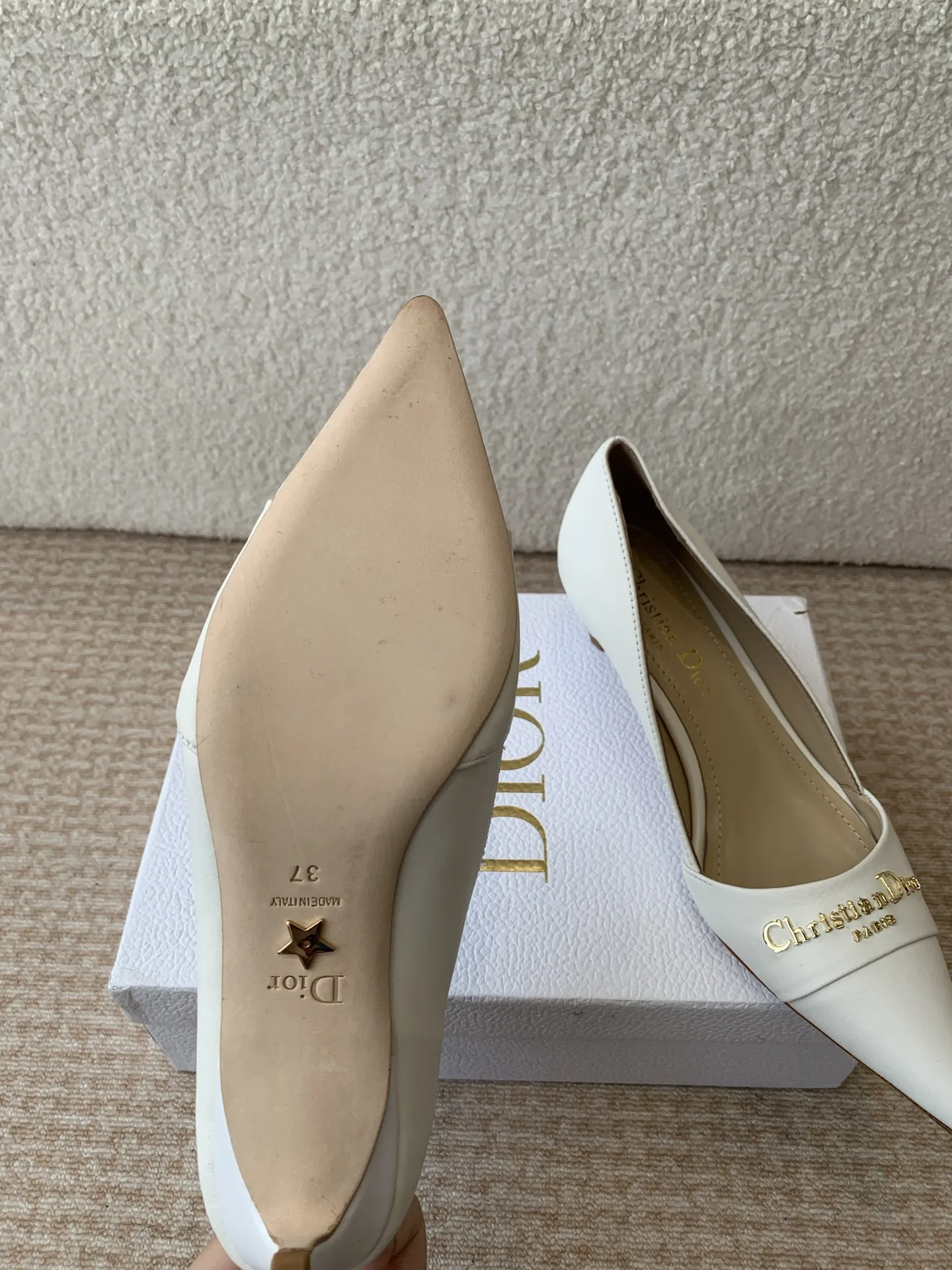 This My Dior high heel is a new arrival from the 2025 Spring/Summer Ready-to-Wear collection, exuding refined elegance. Crafted from calfskin leather, it features a pointed-toe design adorned with a gold-finish metal Christian Dior Paris signature, offering a distinctive touch that showcases Dior s exceptional craftsmanship. The cut-out detailing complements the flat heel, 5cm, and 8cm graphic-style heels, adding a touch of sophistication to the fashionable design.