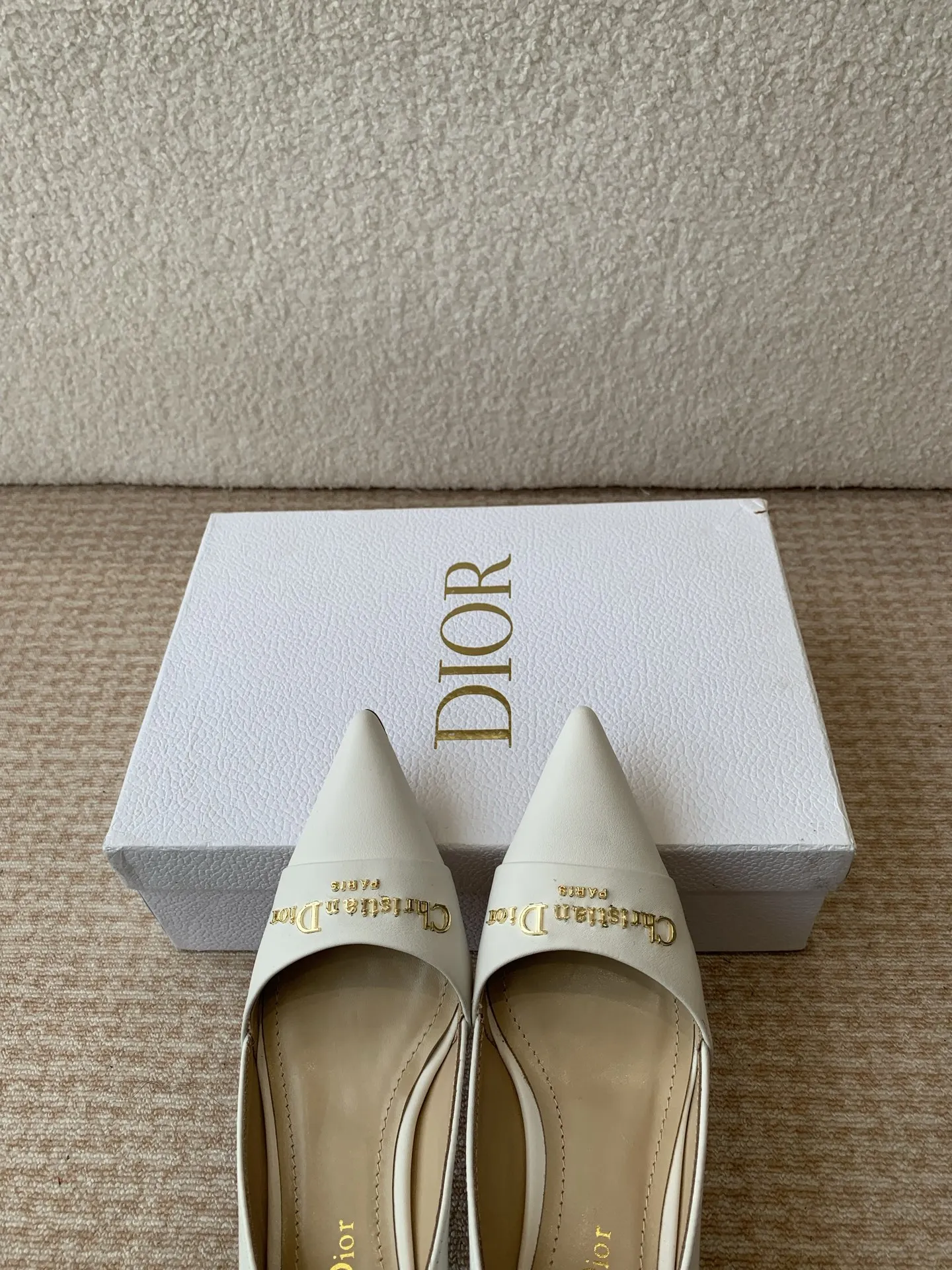 Dior 25SS Spring/Summer New Collection D-My Hardware Logo Pointed-Toe High Heels, Flats, Slingbacks, Kitten Heels, and Sandals