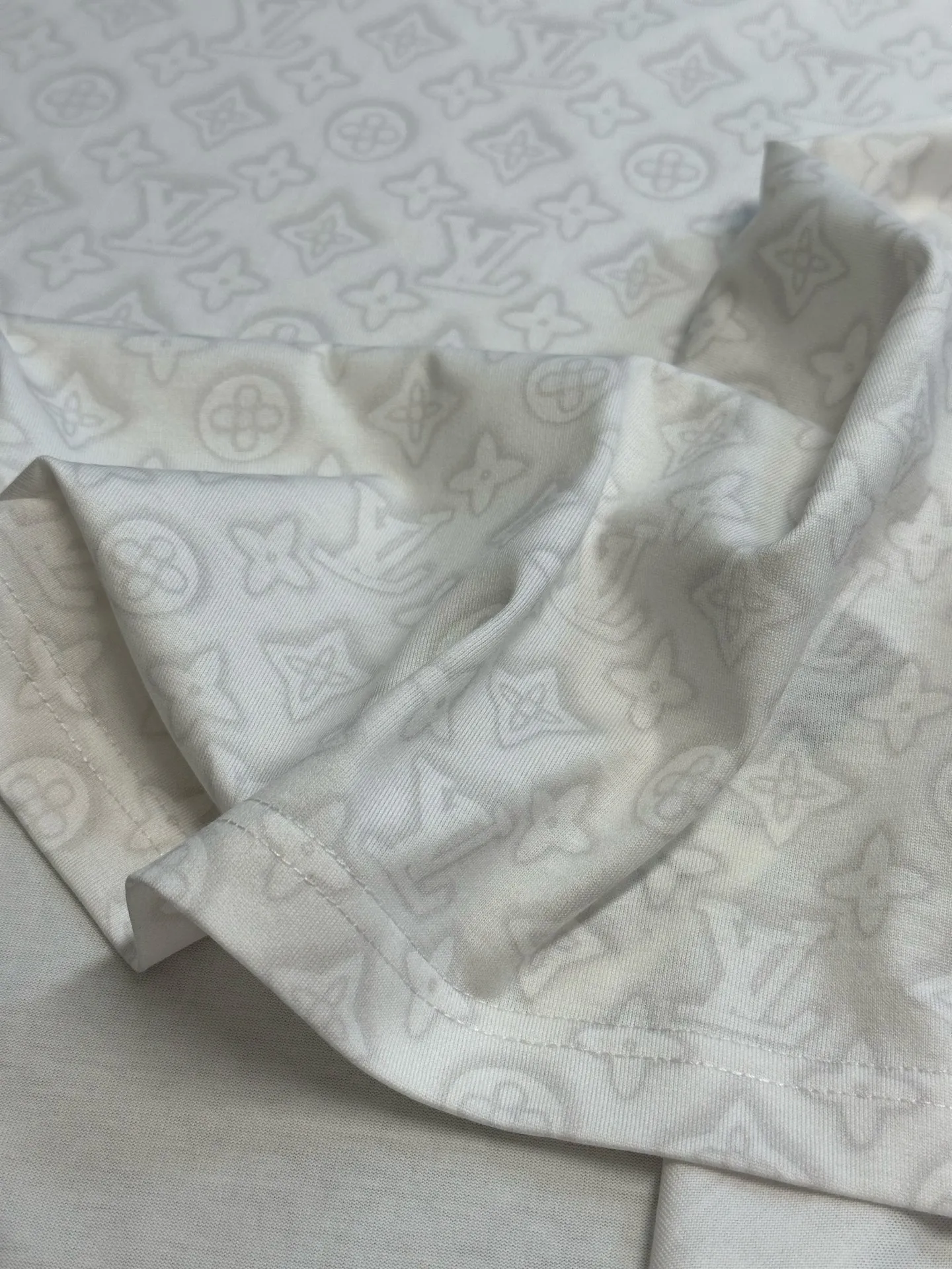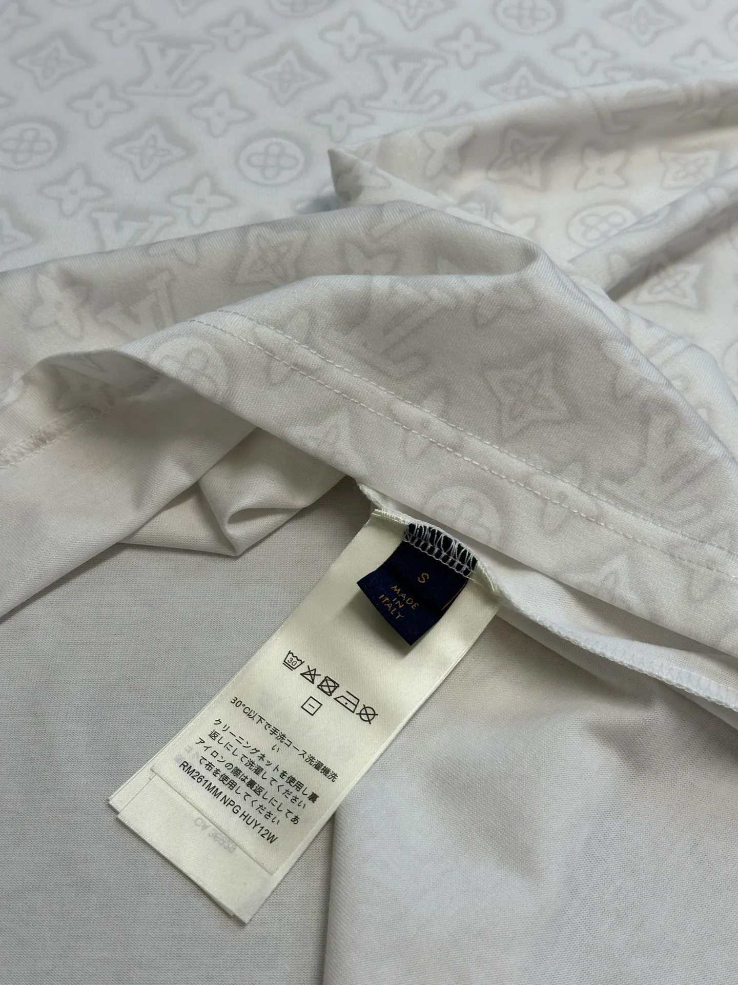 This full print Halo Monogram features a soft glow around the logo pattern. The first-generation seamless design of the brand pattern adds a fresh touch to everyday styling. Made from lightweight cotton knit fabric, it is adorned with a woven label of Marque LVuiton Deposee on the back.