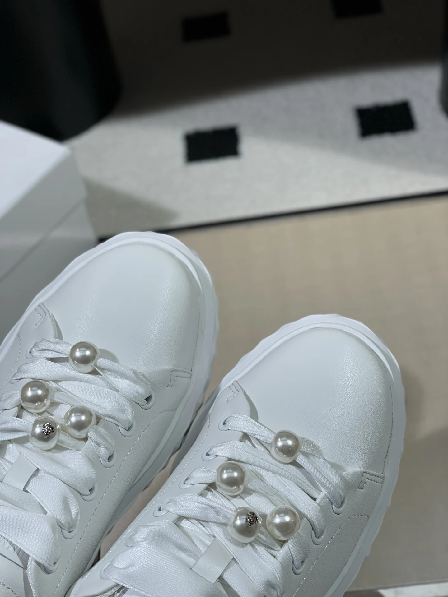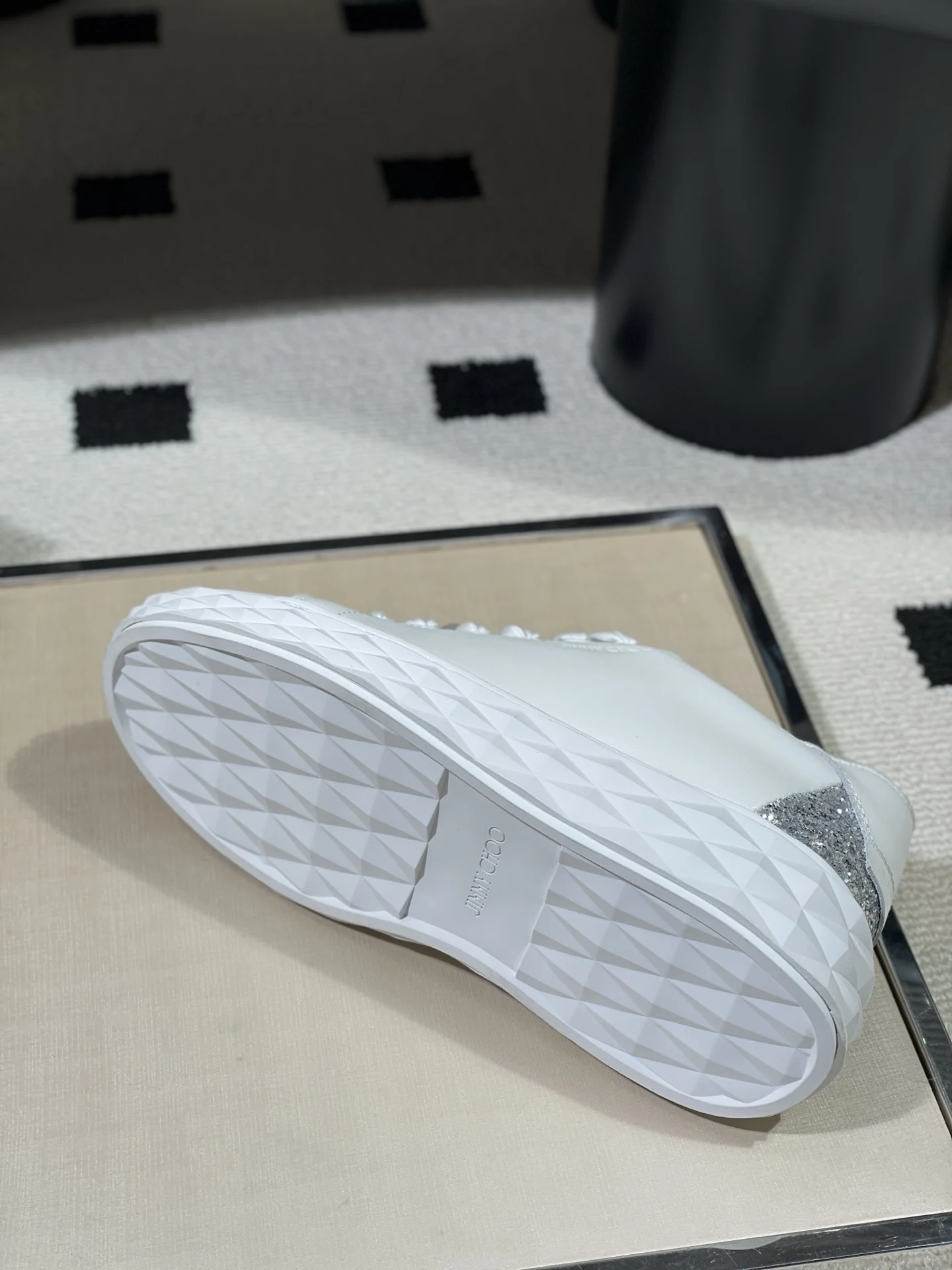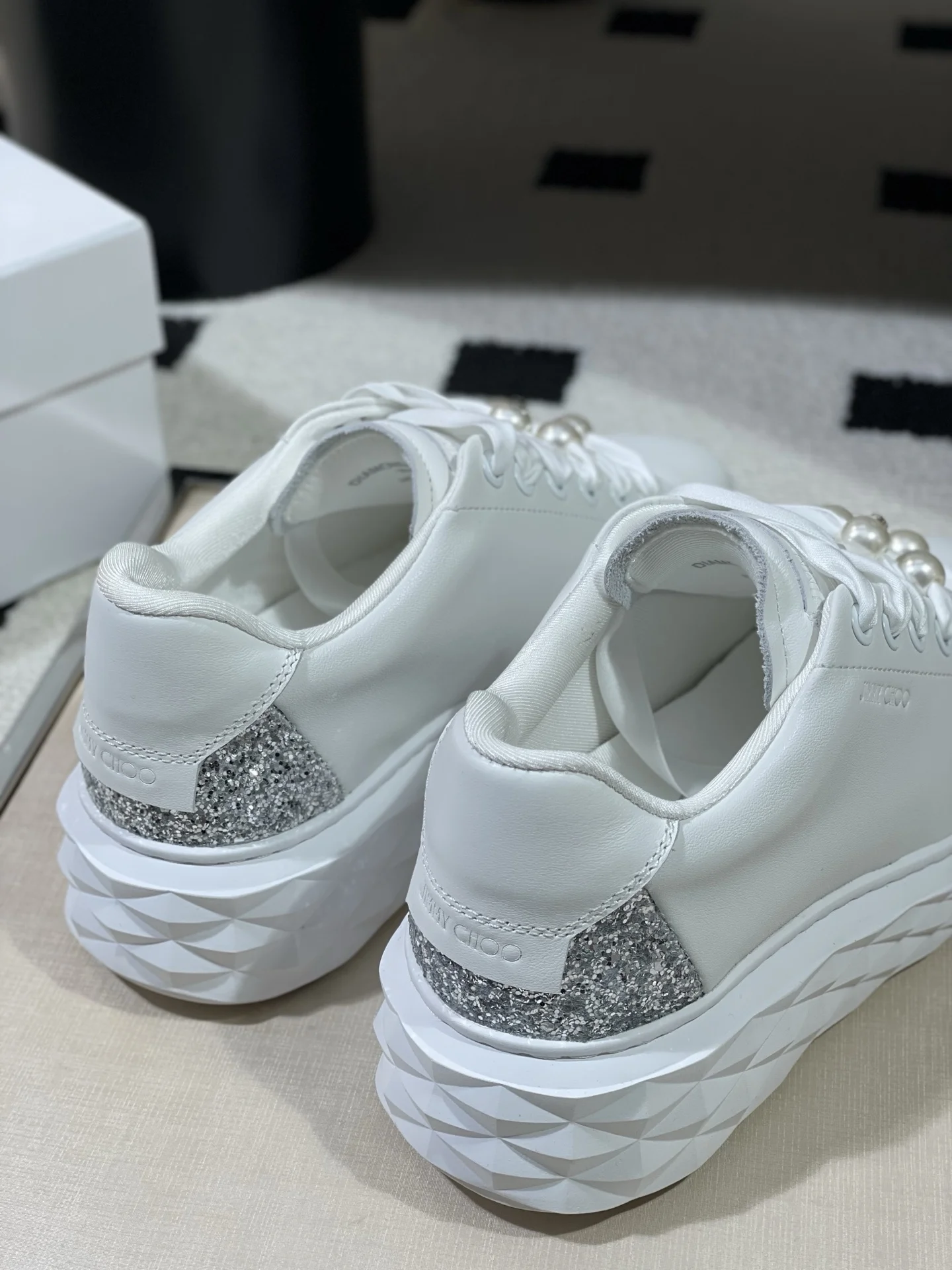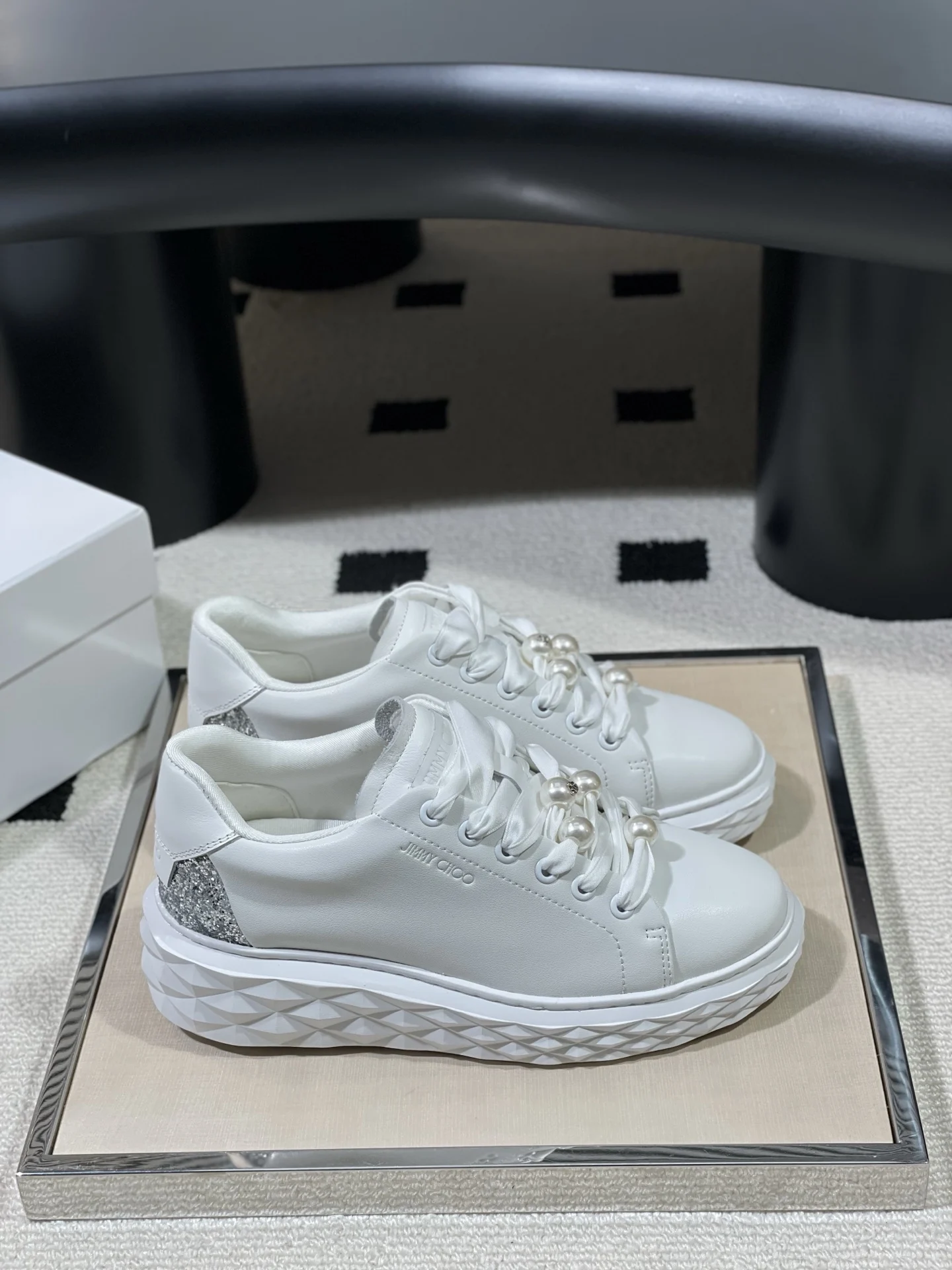 JimmyChoo 26s Spring/Summer New Round Toe Platform Rhinestone Bow White Sneakers