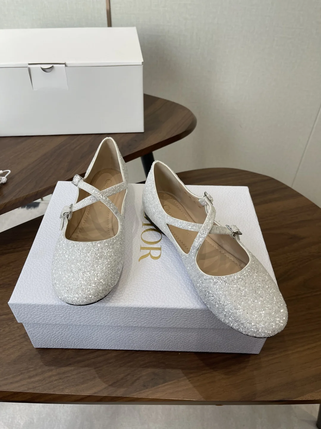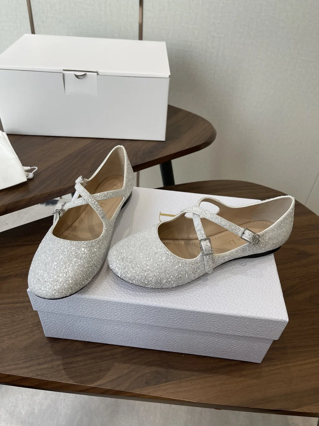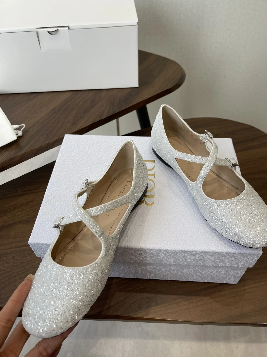 Dior 26ss Early Spring New Cross Strap Glitter Flat Mary Jane Shoes