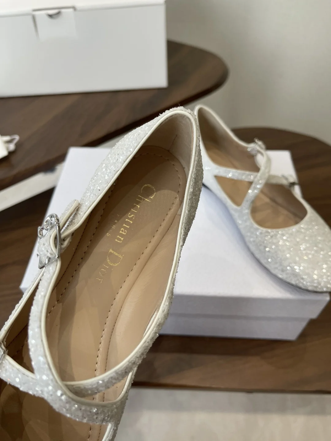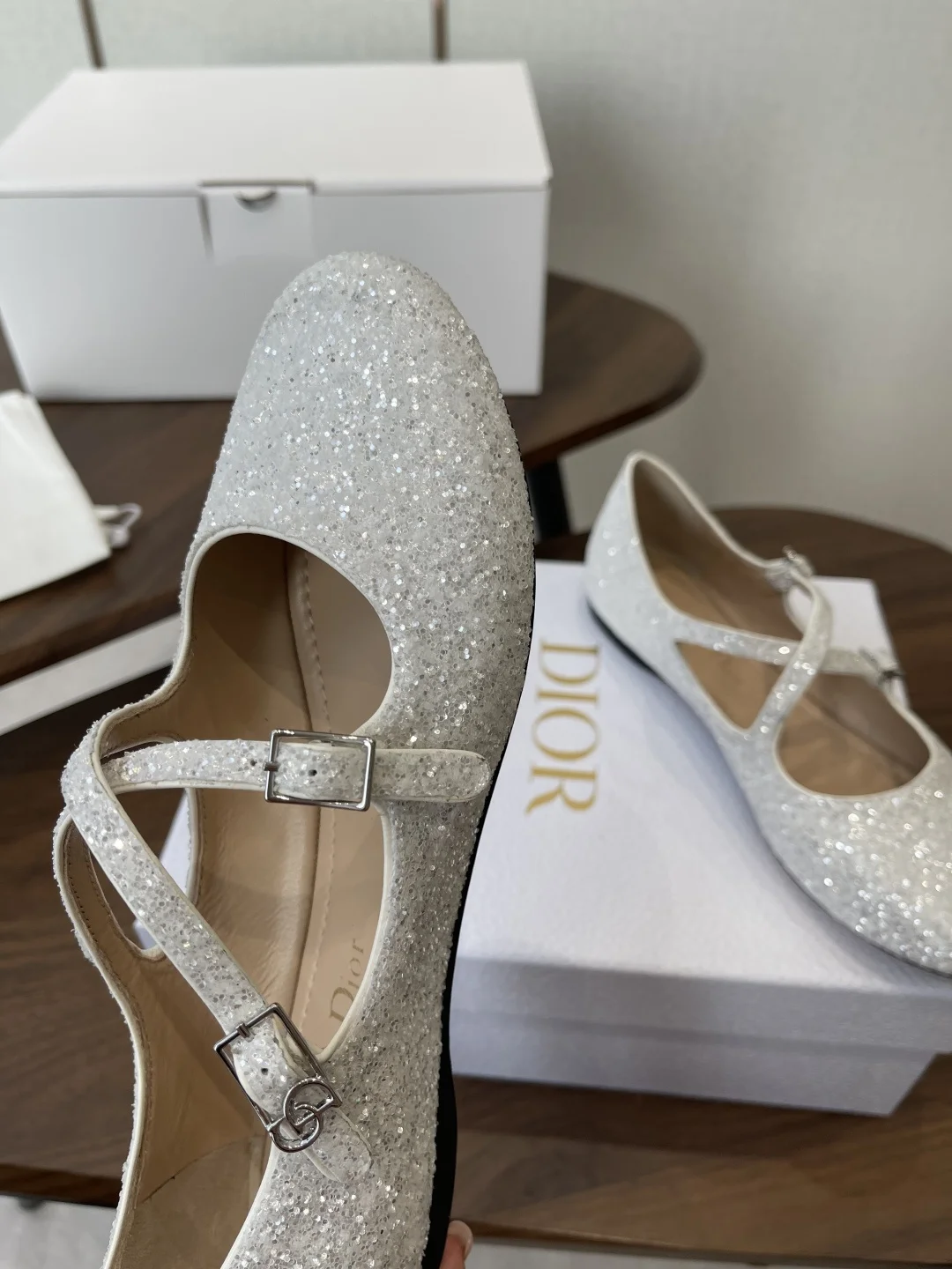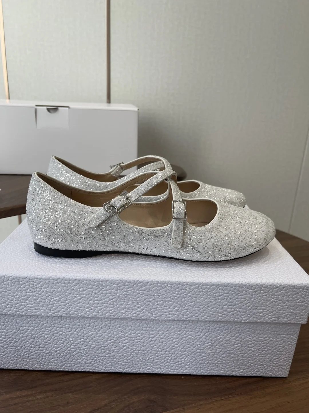 Dior 26ss Early Spring New Cross Strap Glitter Flat Mary Jane Shoes