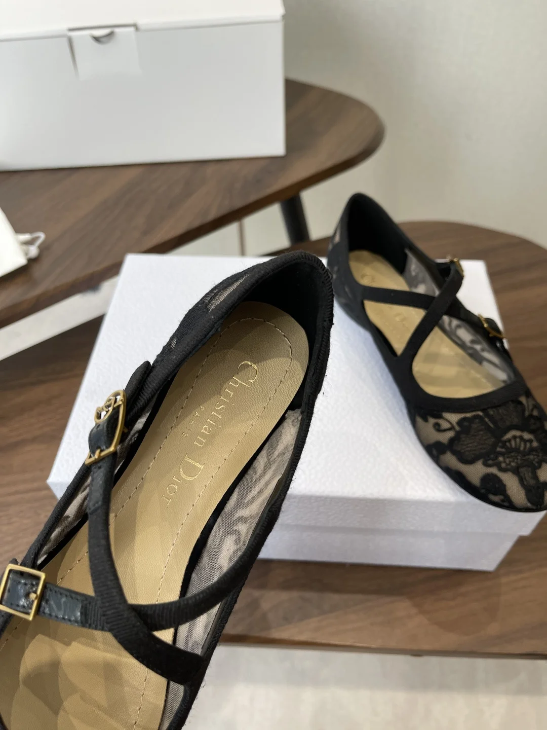 Dior 26ss Early Spring New Cross Strap Glitter Flat Mary Jane Shoes
