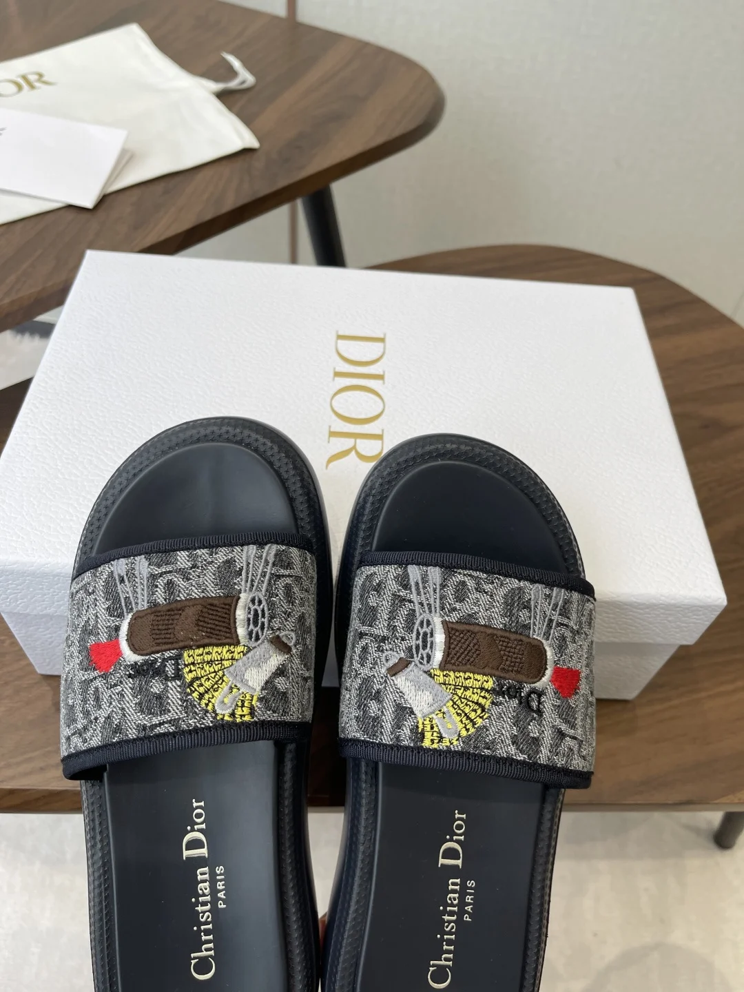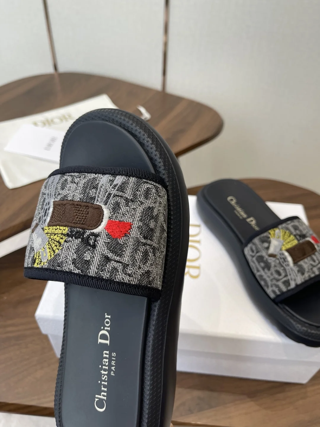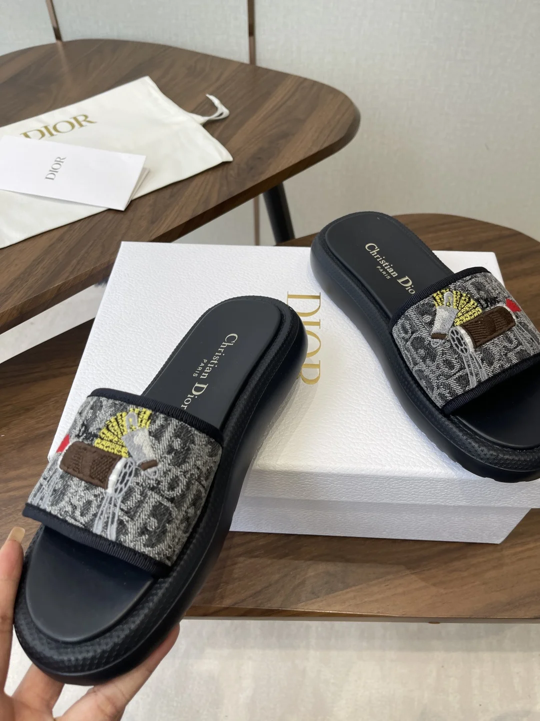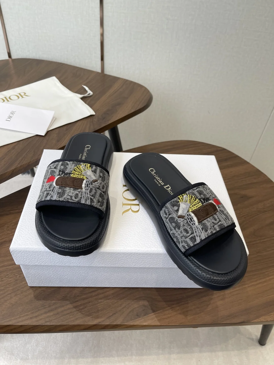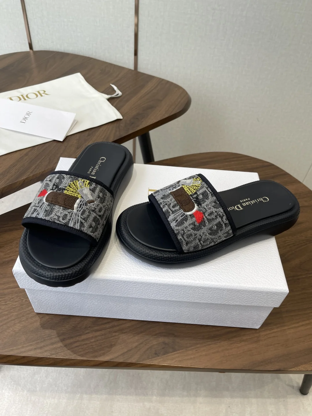 Dior 26ss Spring/Summer New D-Logo Embroidered Platform Slides