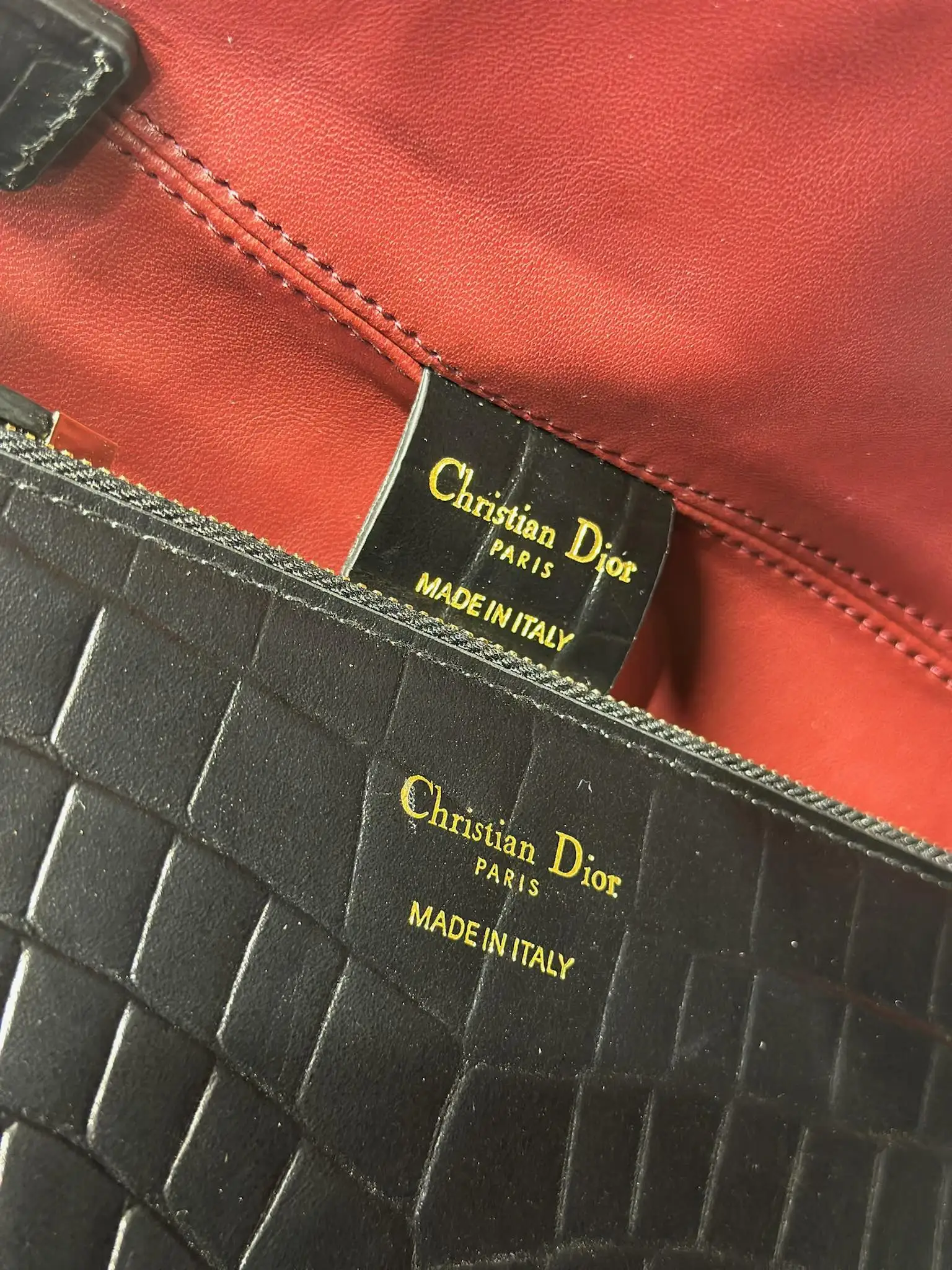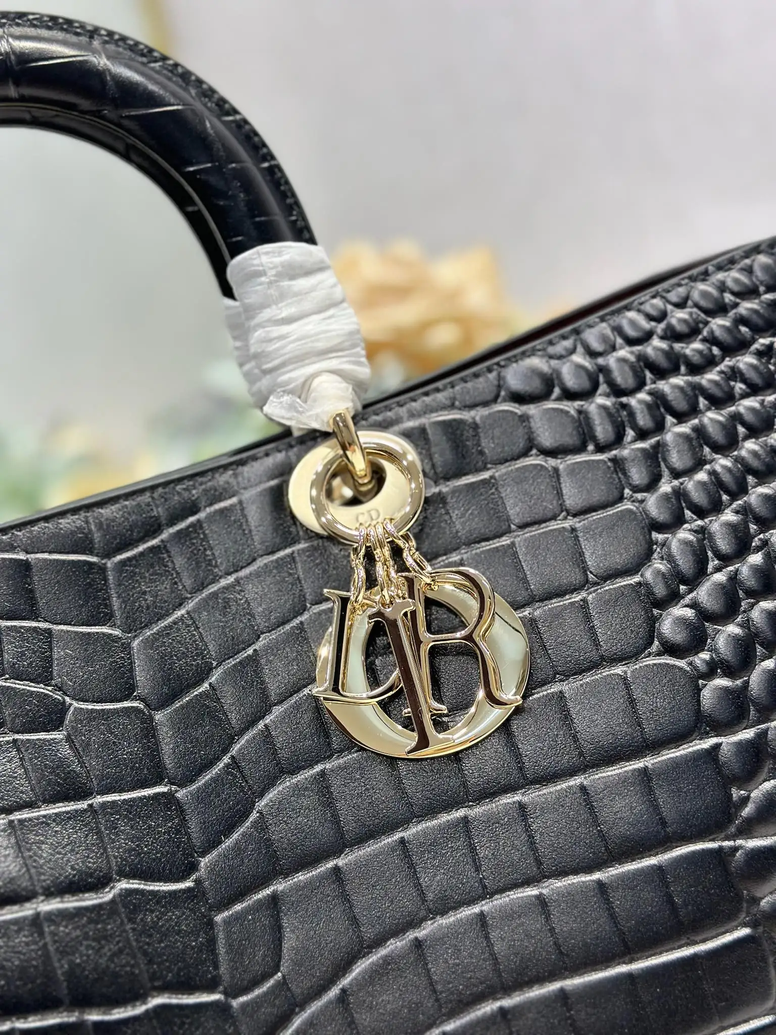 Dior Toujours Handbag [Large Black Crocodile Pattern] This Dior Toujours handbag made a stunning appearance at the autumn/winter collection launch, featuring a uniquely casual a..