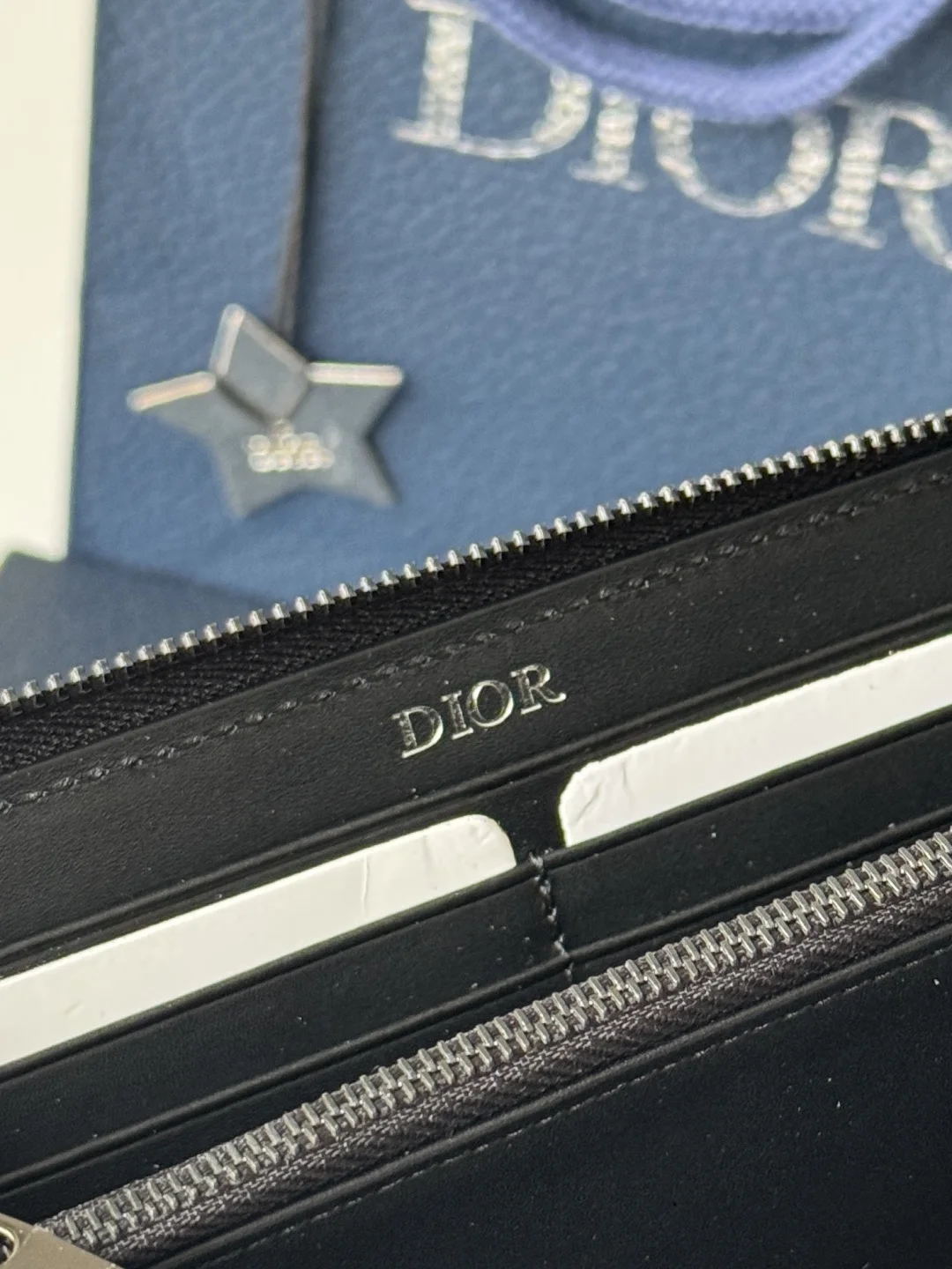 Saddle Zip Long Wallet in Black Fine-Grained Leather, Item No: 2ADBC315YKK_H00N_TU, Dimensions: 19.8 11 cm (LxH). This Saddle Zip Long Wallet is understated yet elegant, part of the 2023 Winter Men s Collection. Crafted from black fine-grained leather with meticulous detailing, it features contrasting stitching that reinterprets the classic saddle shape, adorned with a metal-coated brass Dior logo on the front for an elevated touch. The central zip compartment is designed for coins, while two cash compartments and 12 card slots provide ample storage space. Elegant and spacious, it is the ideal companion for daily use. Black fine-grained leather with contrasting stitching, front metal-coated brass Dior logo, interior adorned with Dior logo, metal-coated brass zip closure, internal zip compartment, two cash compartments, and 12 card slots, includes a dust bag.