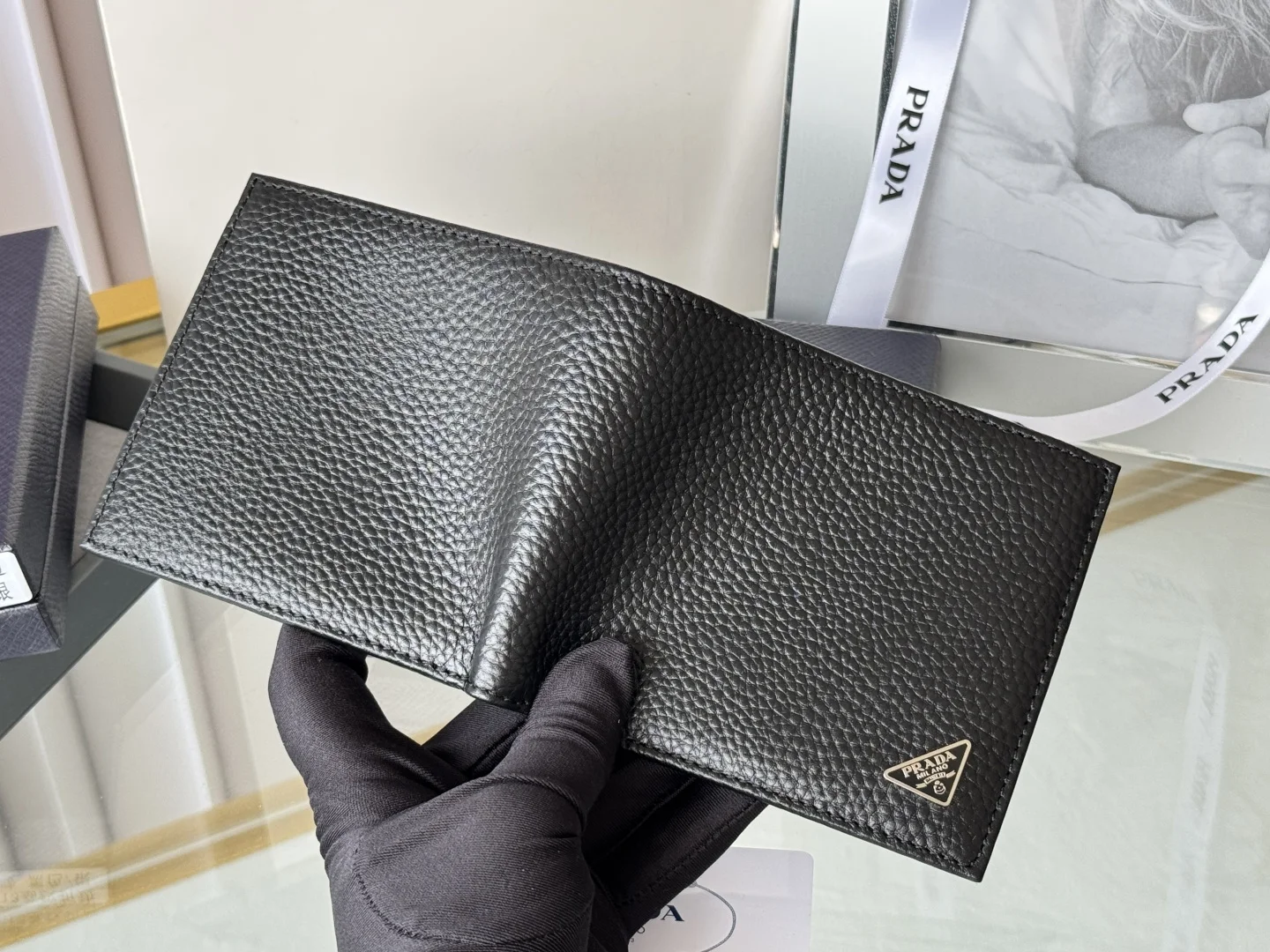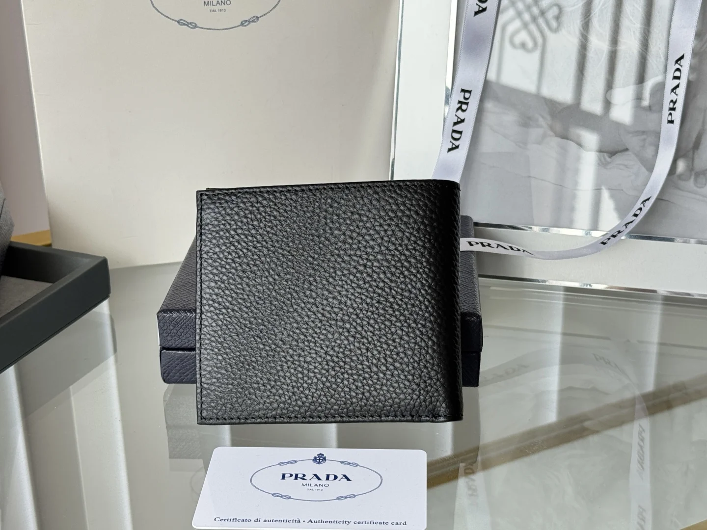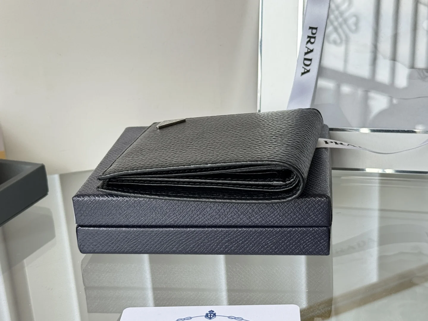 Prada men s short wallet, made of litchi grain cowhide, with folded edges for easy storage, can hold 8 cards and cash, a must-have for men, model 2M0513, original quality, litchi grain cowhide imported hardware, dimensions 11cm 9.5cm, color as shown.