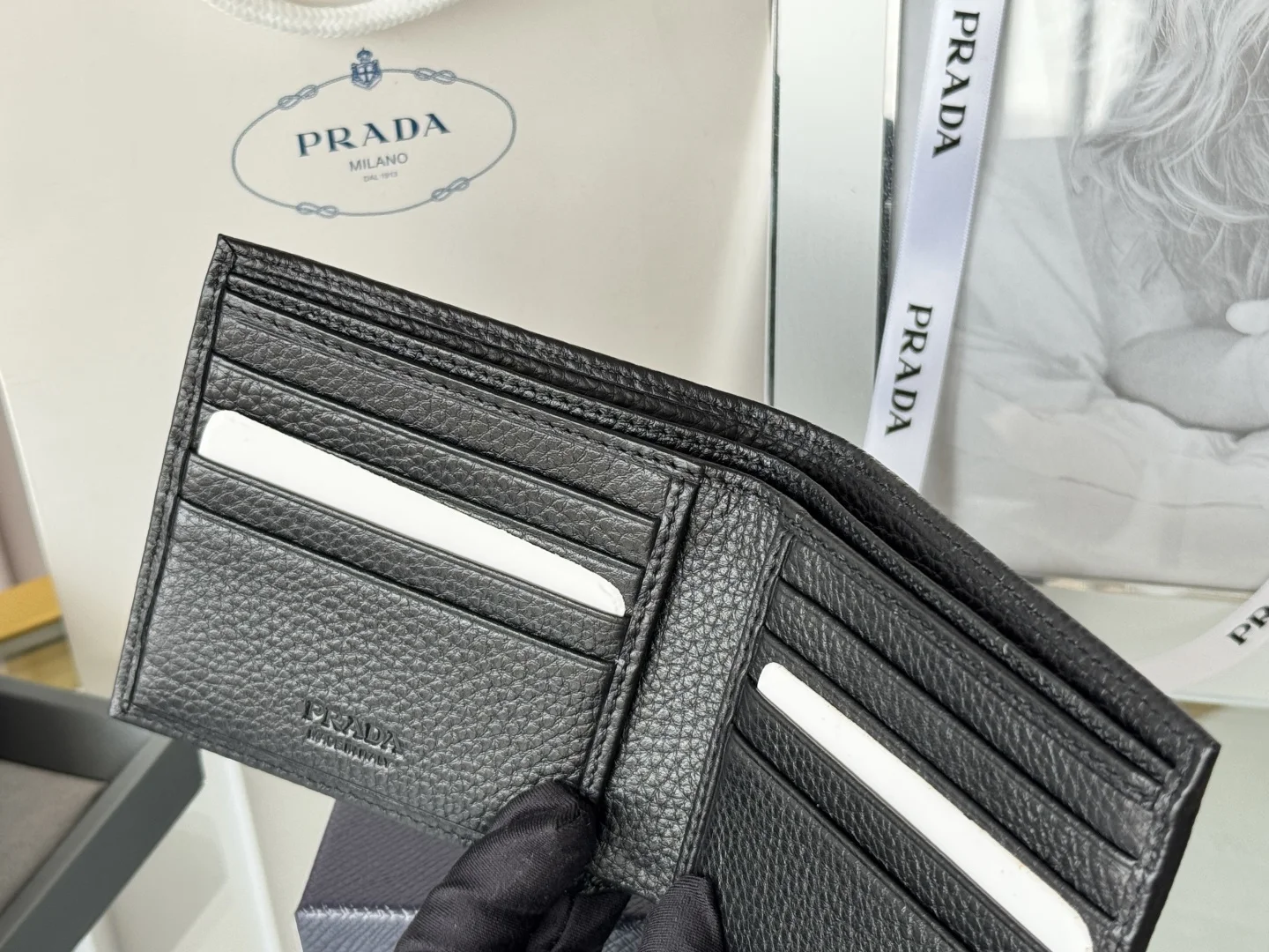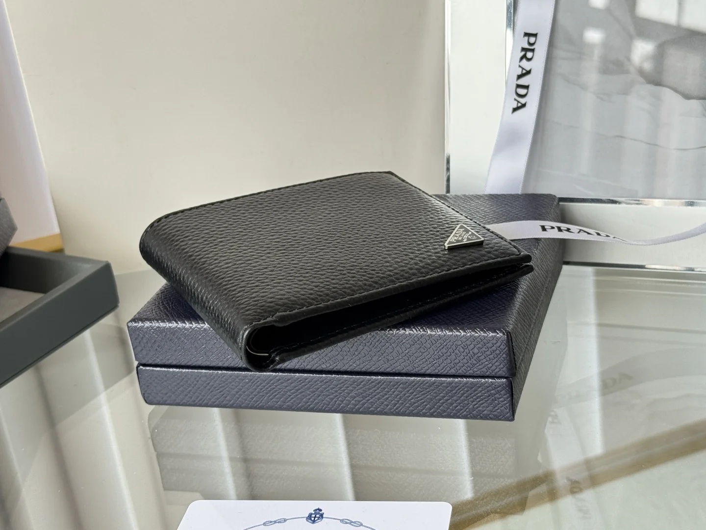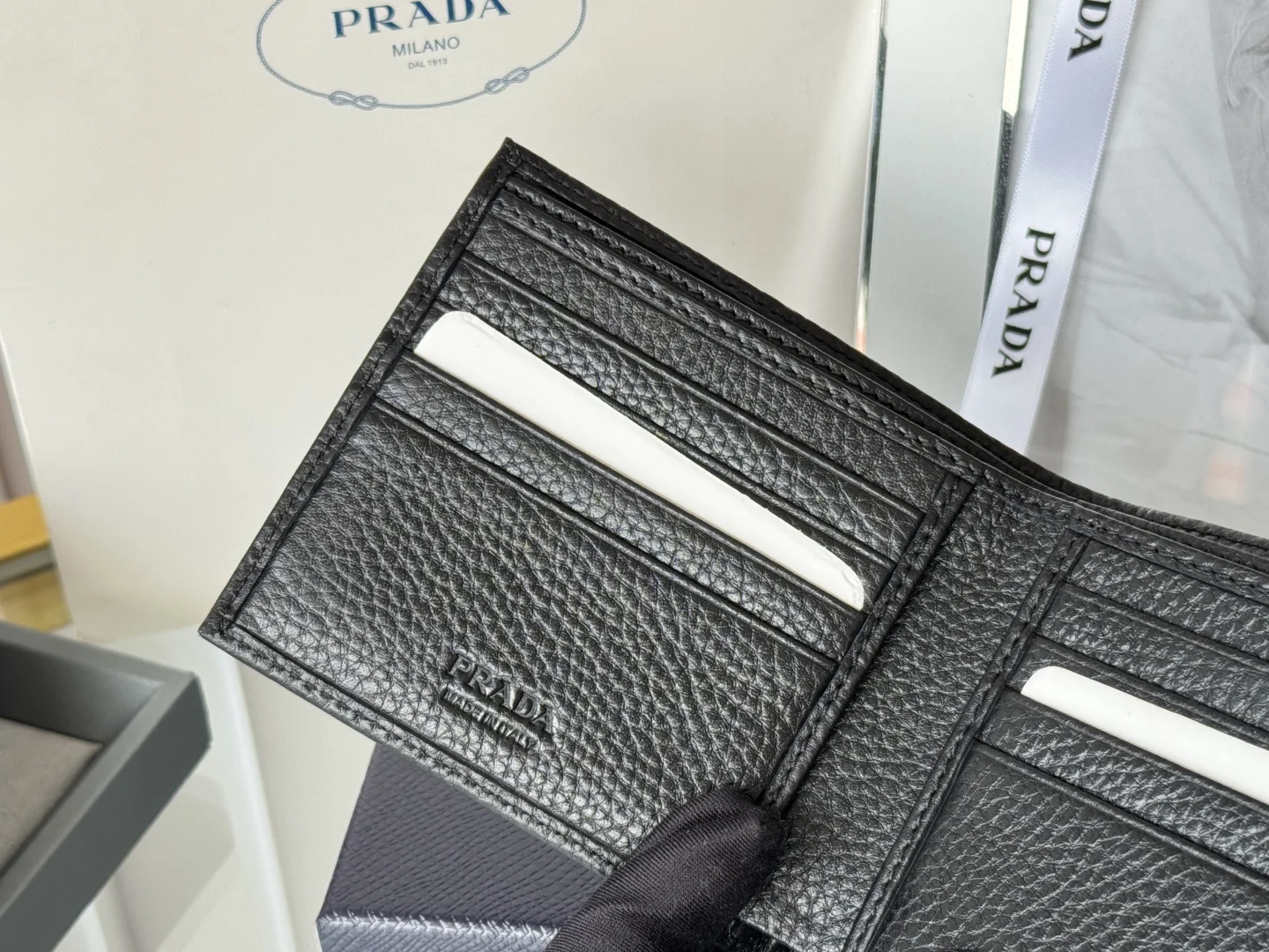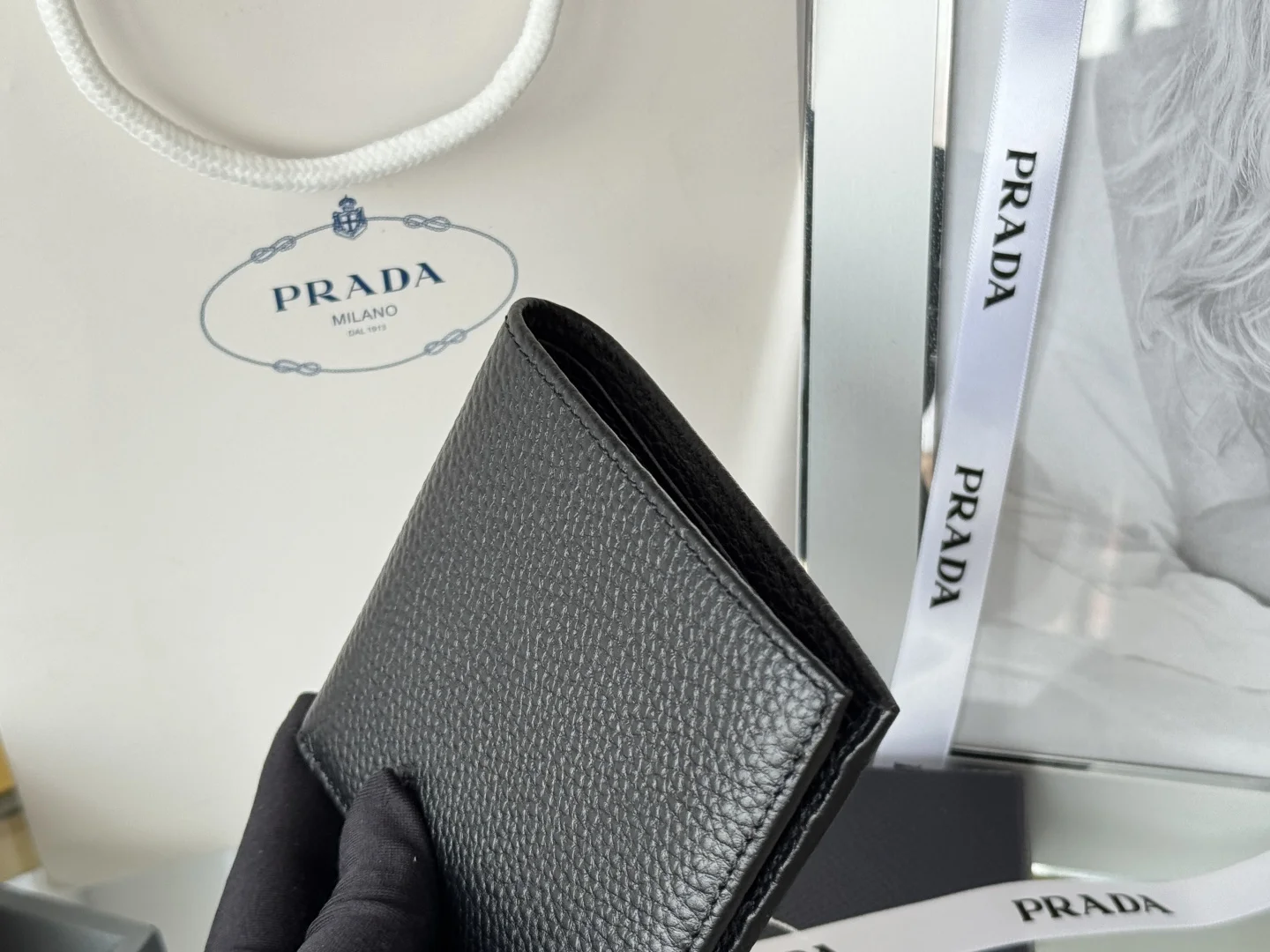 Prada men s short wallet, made of litchi grain cowhide, with folded edges for easy storage, can hold 8 cards and cash, a must-have for men, model 2M0513, original quality, litchi grain cowhide imported hardware, dimensions 11cm 9.5cm, color as shown.