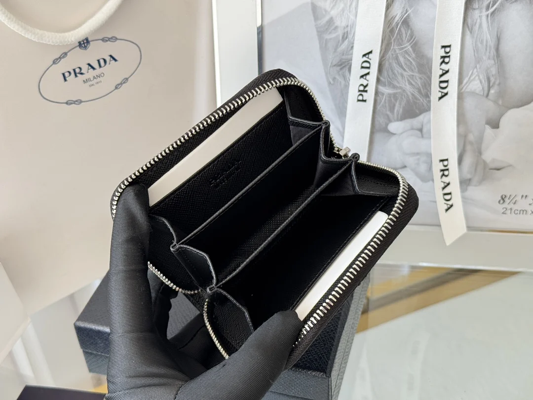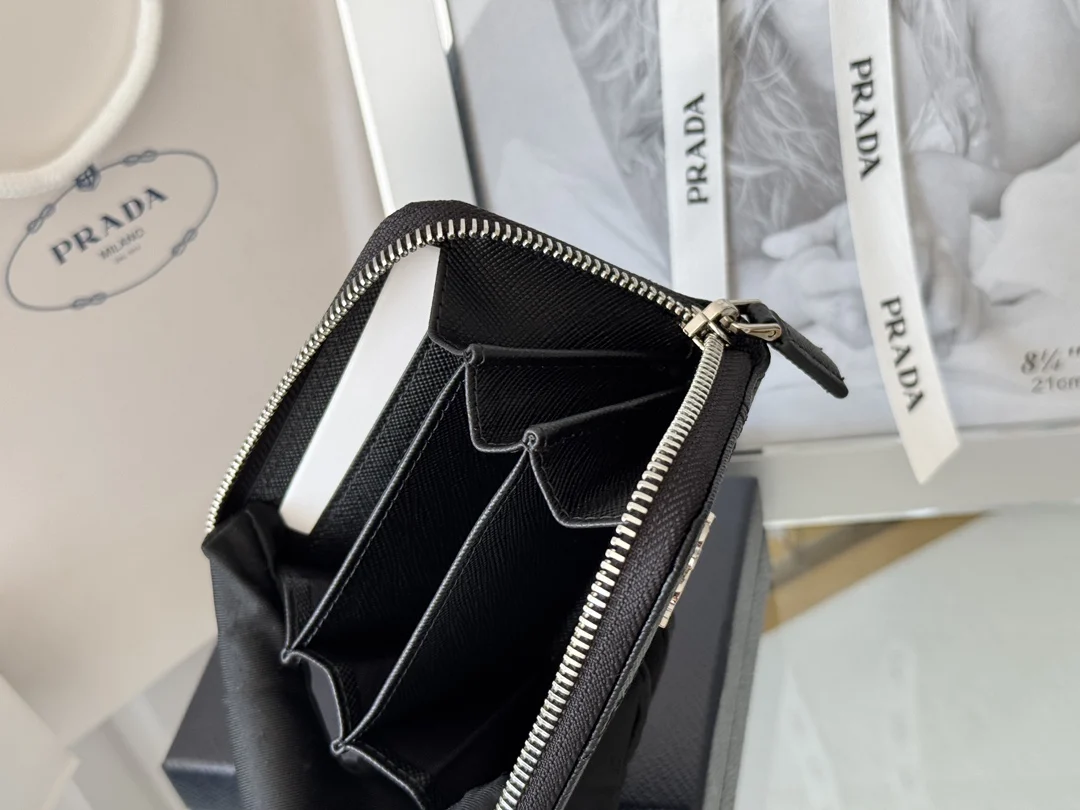 Prada 2MM358 Unisex Card Holder Zippered Wallet