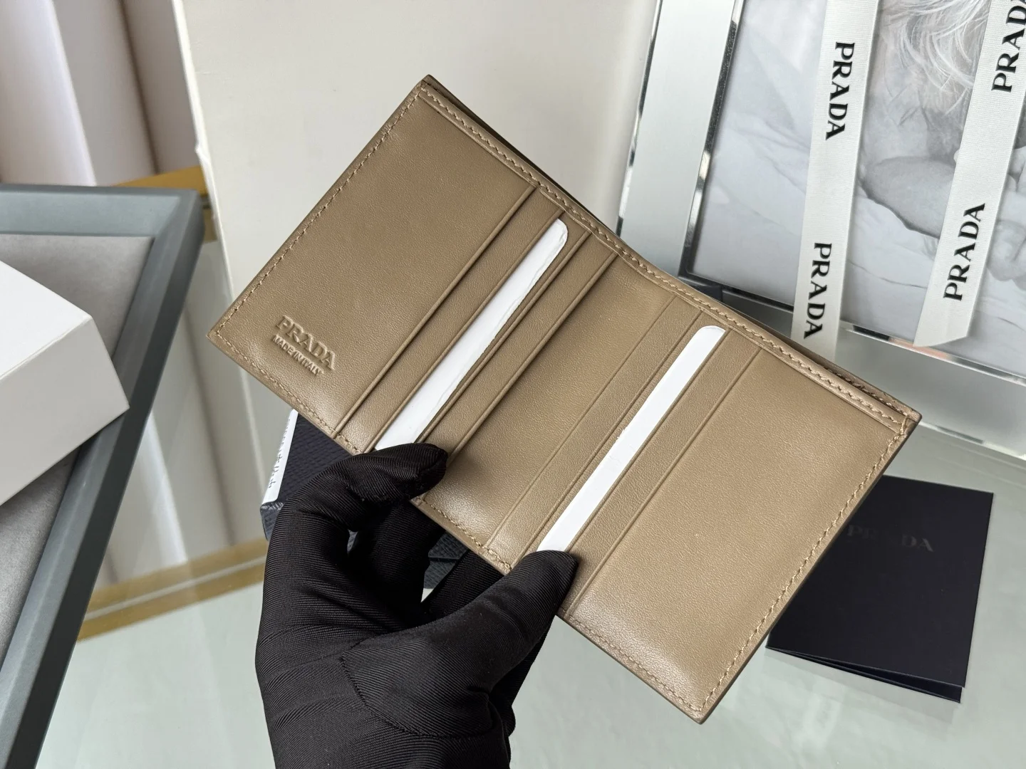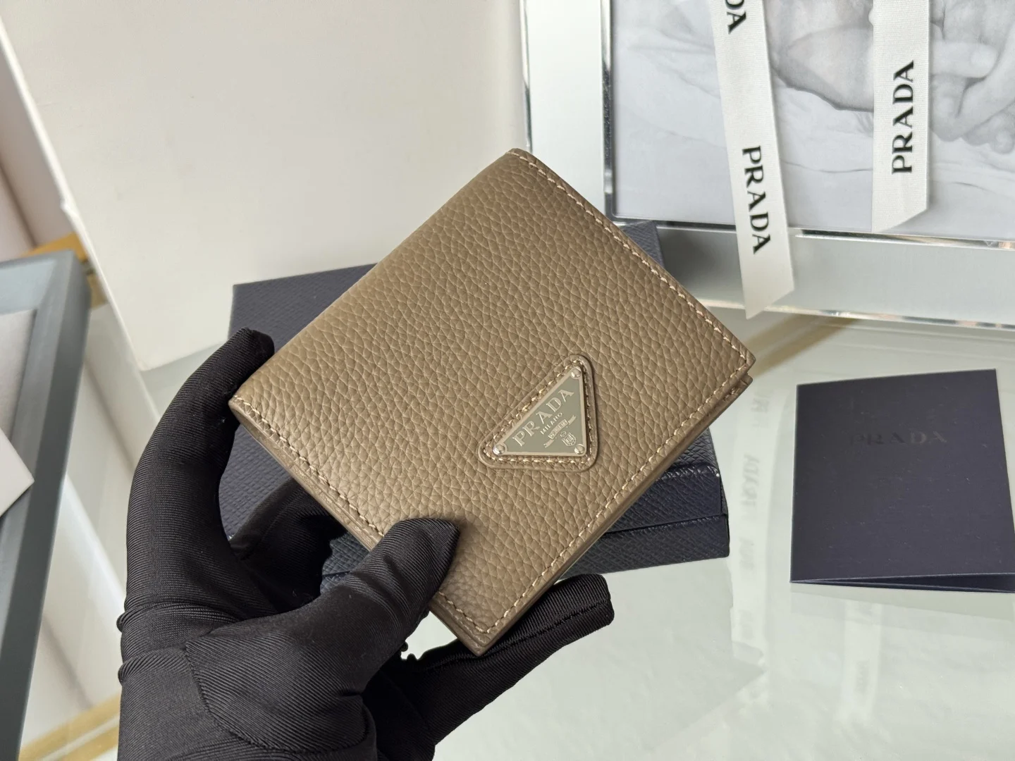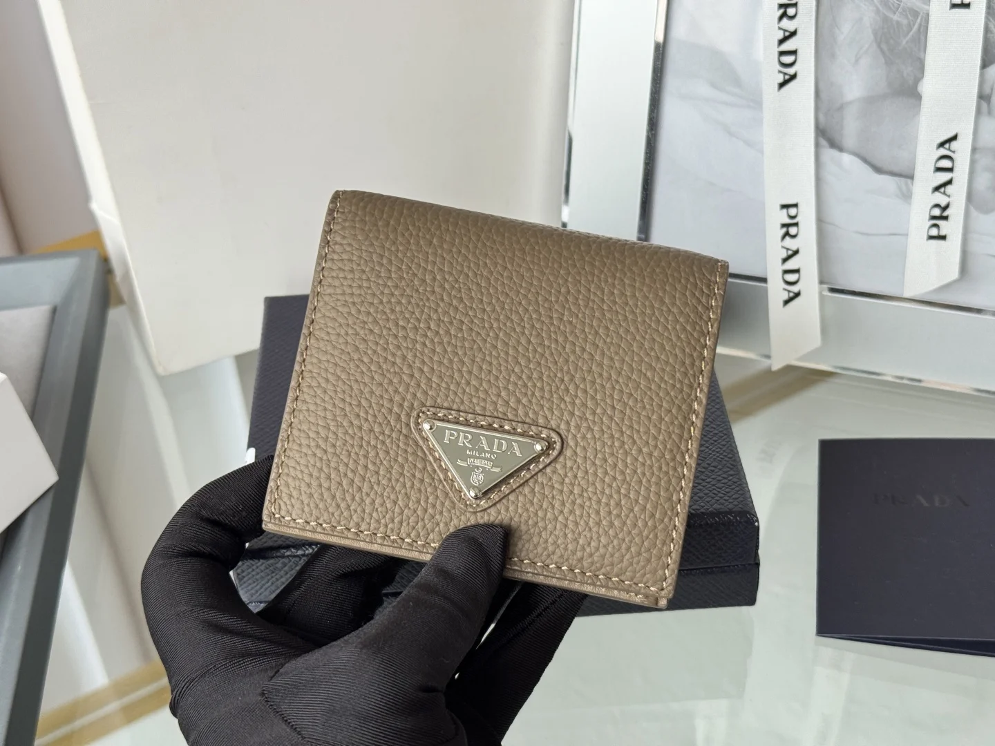 Prada Unisex Short Wallet in Deer Leather (Upgraded Version), Style Number: 2MO004. Crafted in upgraded deer leather, featuring eight card slots. Dimensions: Length 9cm, Height 10cm. Meticulously and exquisitely crafted.