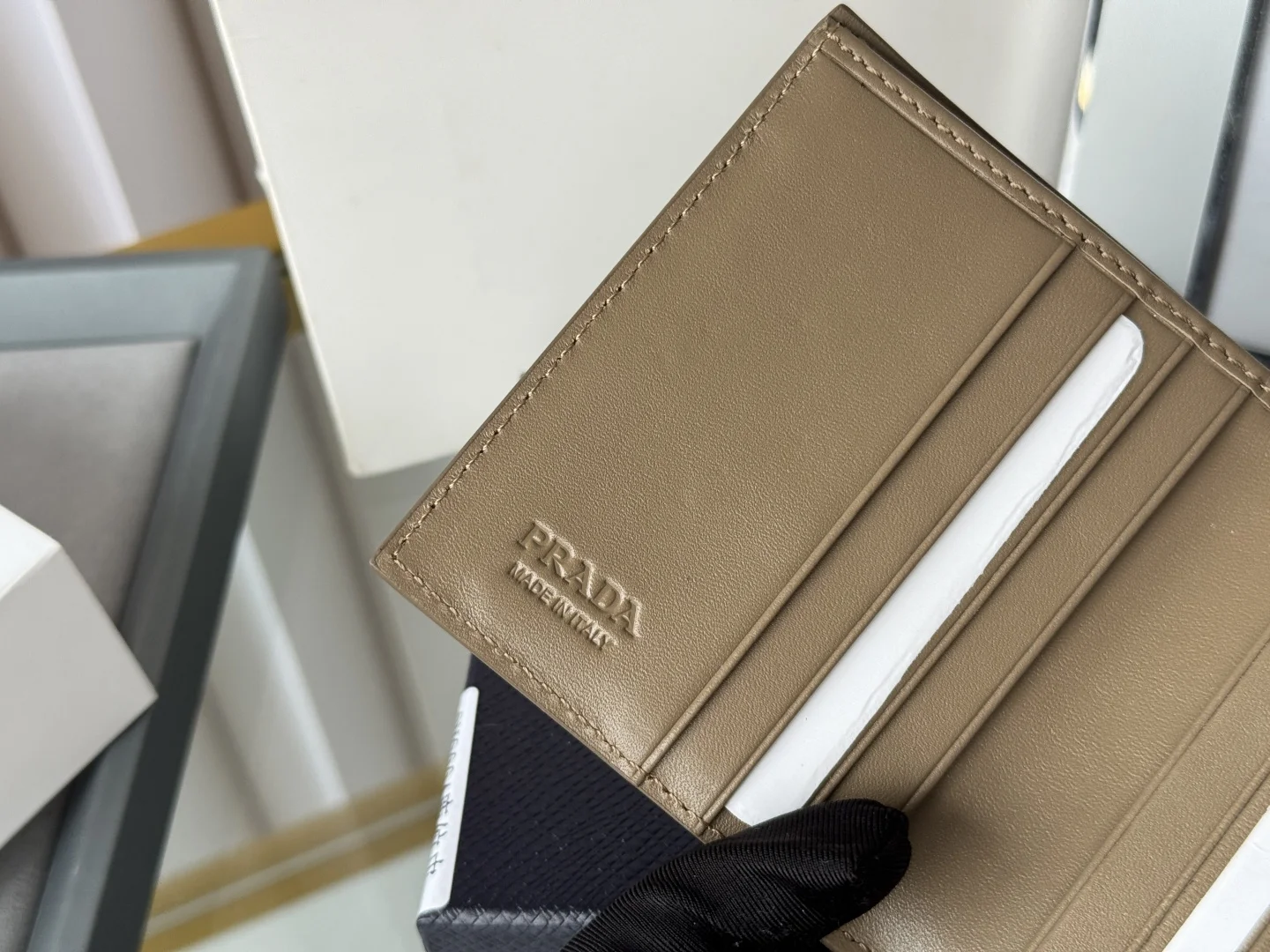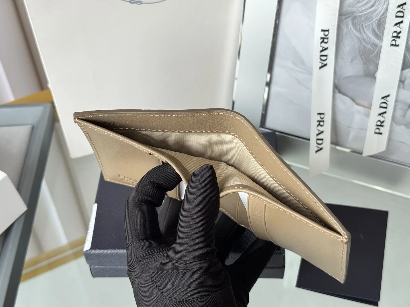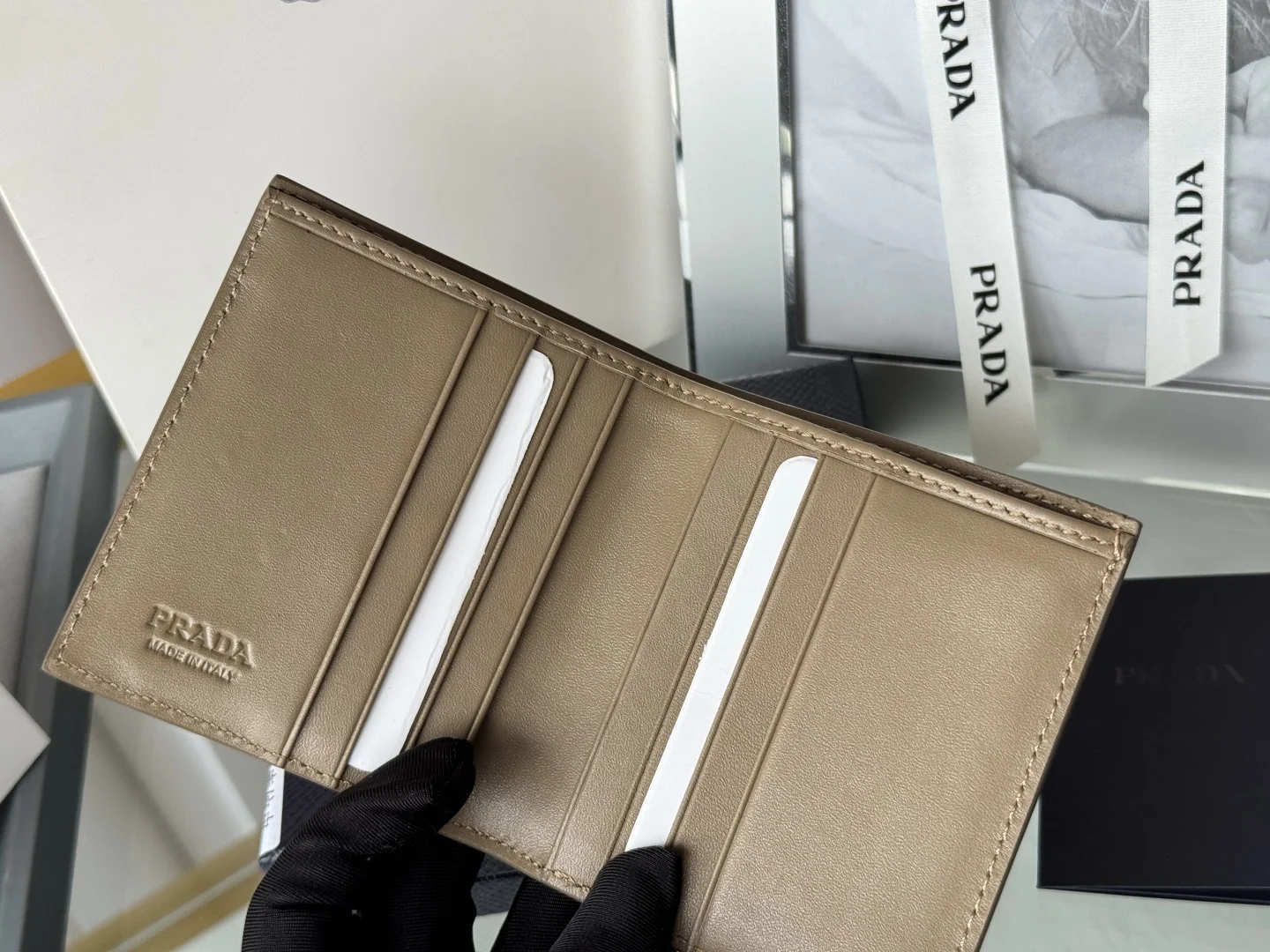 Prada Unisex Short Wallet in Deer Leather (Upgraded Version), Style Number: 2MO004. Crafted in upgraded deer leather, featuring eight card slots. Dimensions: Length 9cm, Height 10cm. Meticulously and exquisitely crafted.
