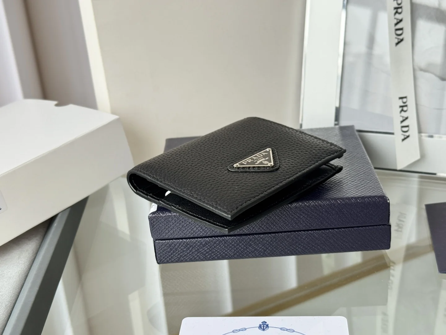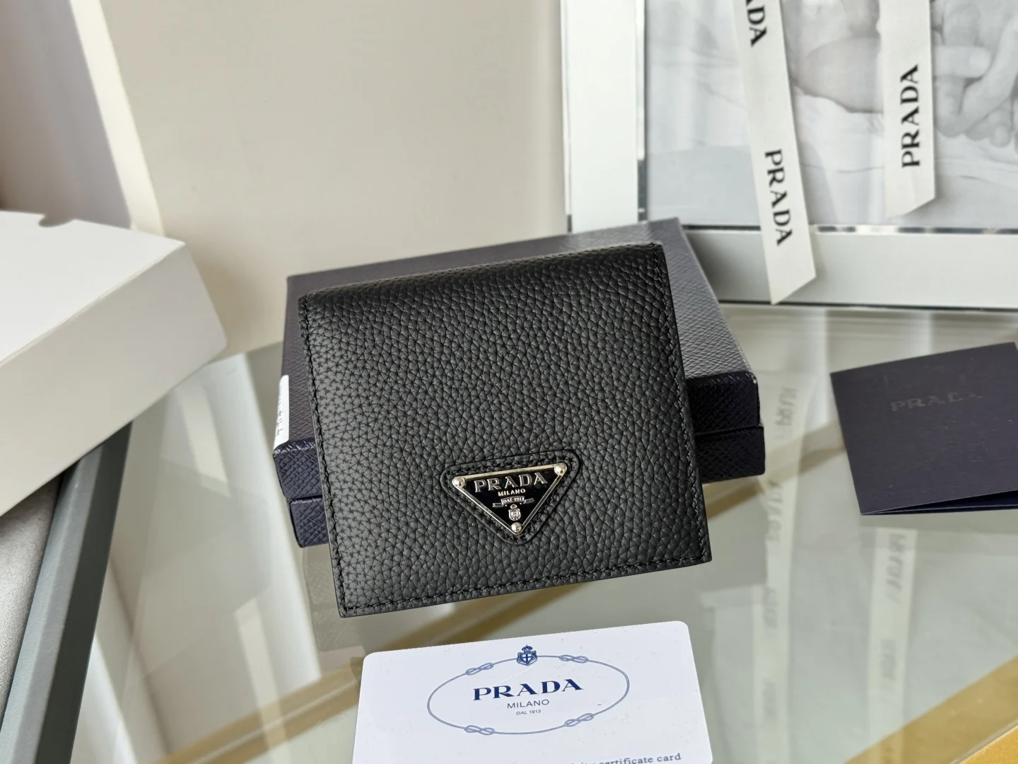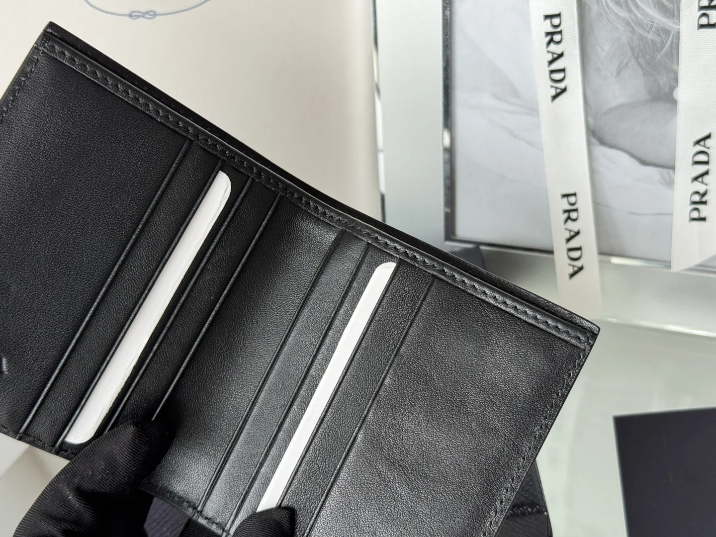 Prada Unisex Short Wallet in Deer Leather (Upgraded Version), Style Number: 2MO004. Crafted in upgraded deer leather, featuring eight card slots. Dimensions: Length 9cm, Height 10cm. Meticulously crafted with exquisite workmanship.