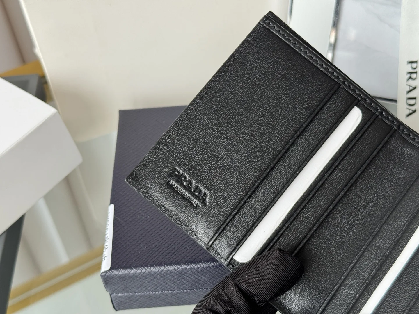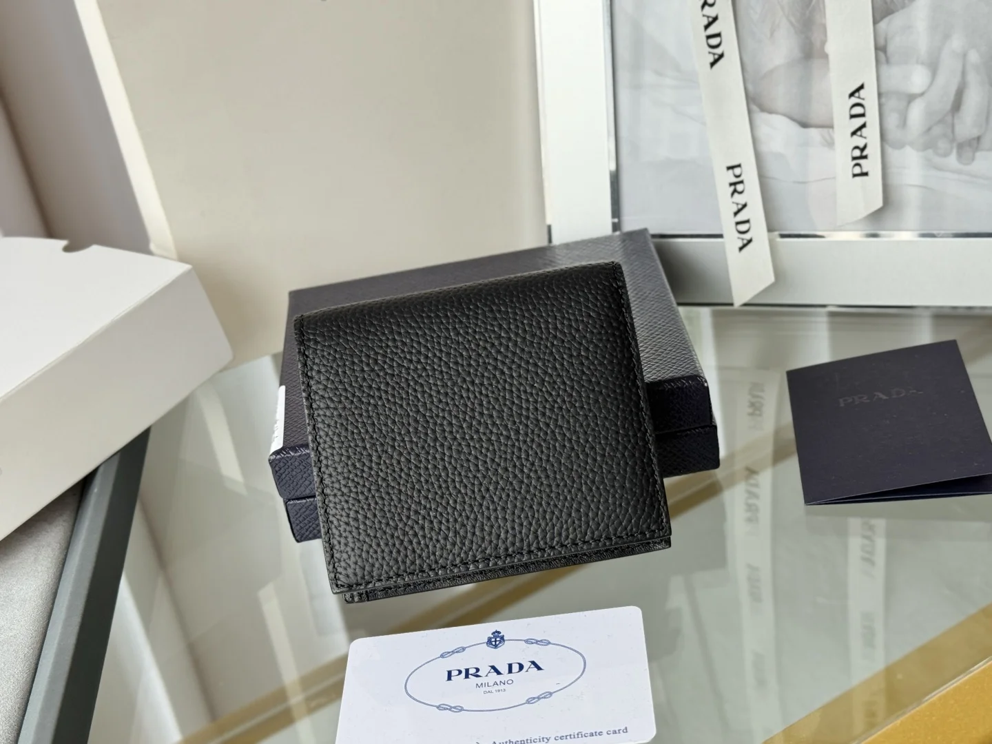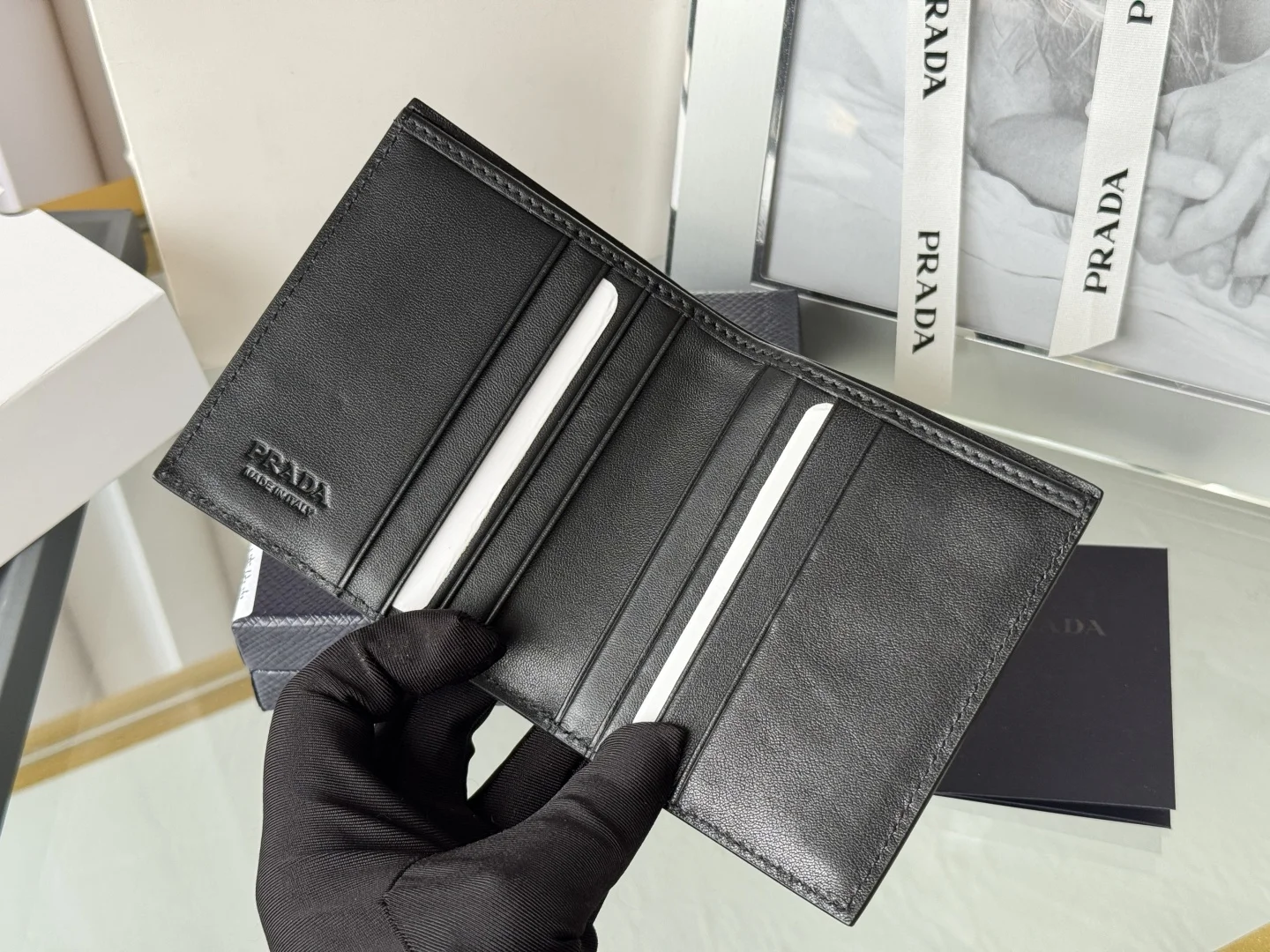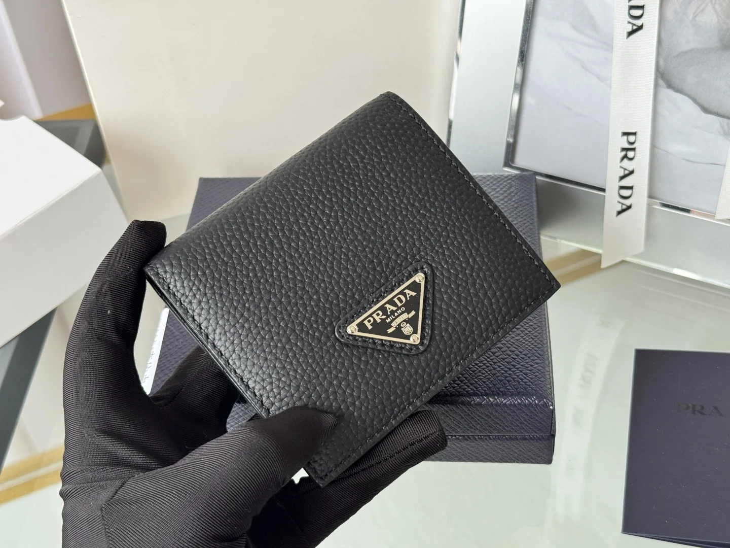 Prada Unisex Short Wallet in Deer Leather (Upgraded Version), Style Number: 2MO004. Crafted in upgraded deer leather, featuring eight card slots. Dimensions: Length 9cm, Height 10cm. Meticulously crafted with exquisite workmanship.