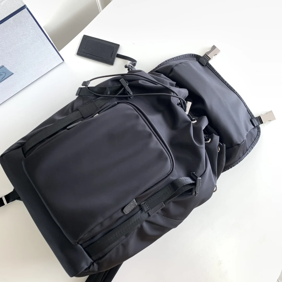 This nylon backpack features Saffiano leather trim, combining creativity and technology to create a distinctive style. The top-quality brushed hardware, multiple pockets, and tech fabric-lined back showcase unique design characteristics. A new classic that is fashionable and elegant, it is a timeless piece that never goes out of style.