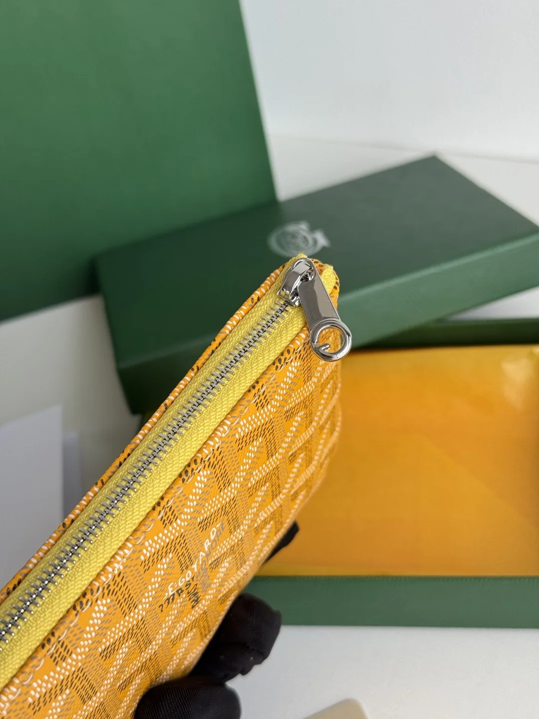 G0YARD was established in 1853, boasting a history of over 160 years. The fabric is woven from a blend of linen, cotton, and hemp fibers, then coated with a glossy resin to make it waterproof, sturdy, and durable, highly favored by celebrities, royalty, and nobility. The vacuum electroplated hardware and the leather label with stitched outer edges are effects that can only be achieved using imported machinery. The latest design features a mini handbag and a small pouch, with dimensions of 15x10x2cm, model number: 3309.