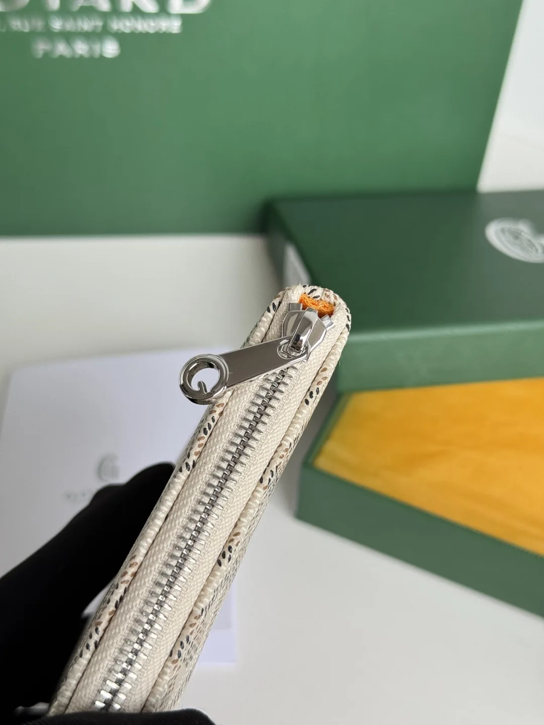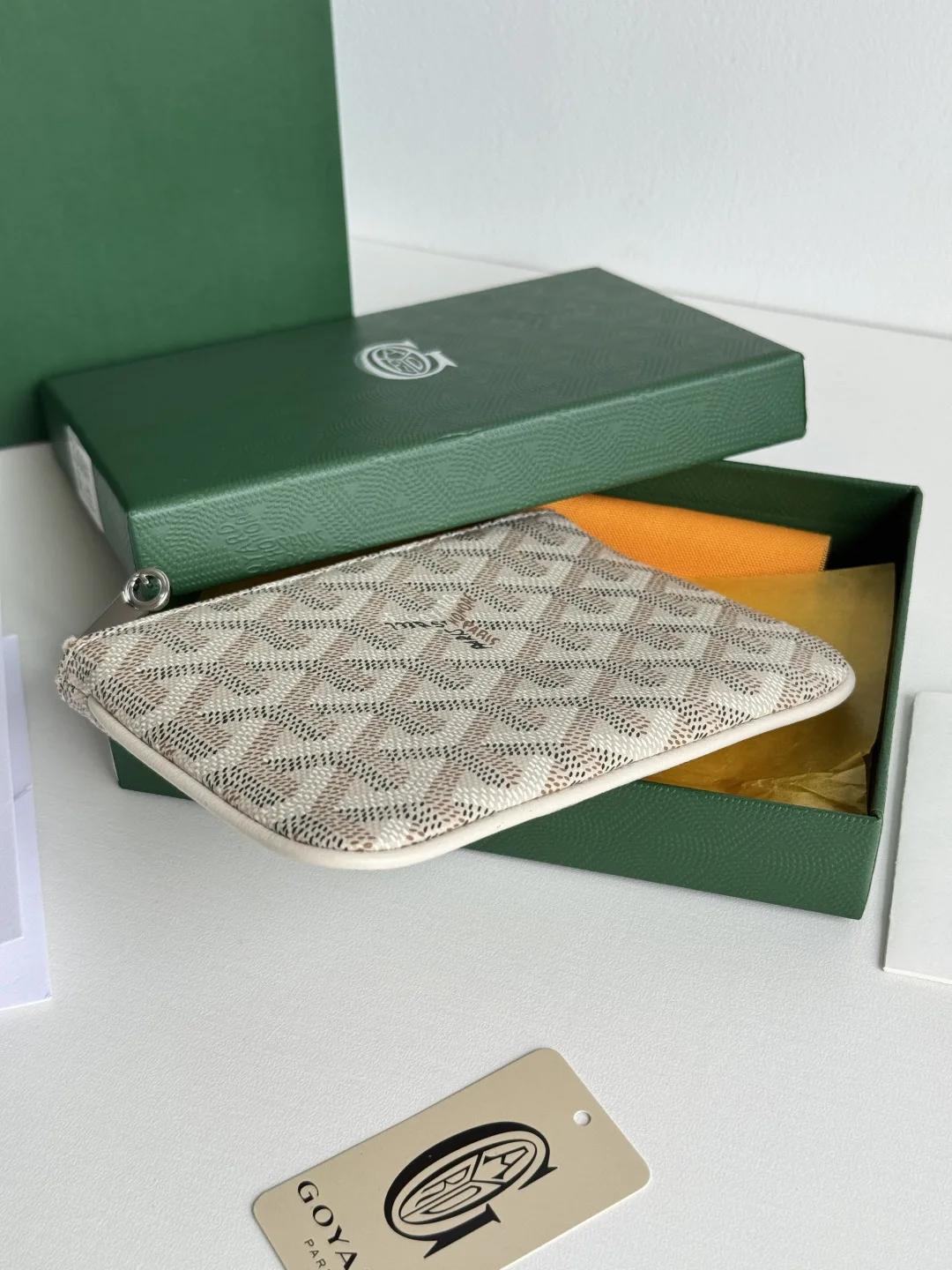 Established in 1853, G0YARD boasts a history of over 160 years. Its canvas is crafted from a blend of linen, cotton, and hemp fibers, then coated with a glossy gum aldehyde for waterproofing, strength, and durability, making it highly sought after by celebrities, royalty, and nobles. The vacuum-plated hardware pull tabs and the stitching on the inner leather label, along with the outer ring indentation, are achieved using imported machinery. Introducing the latest mini clutch coin purse. Dimensions: 15x10x2cm. Code: 3309.