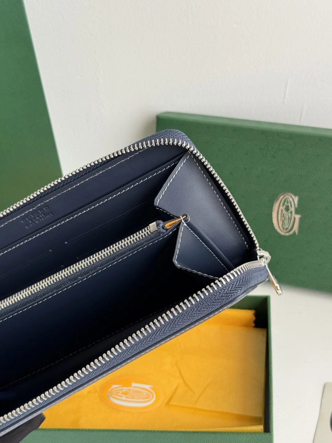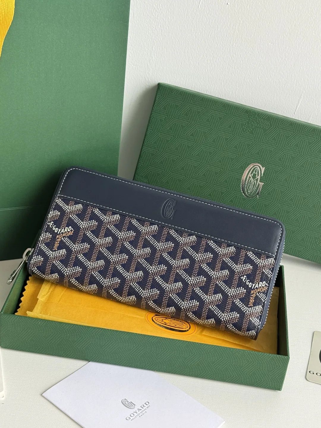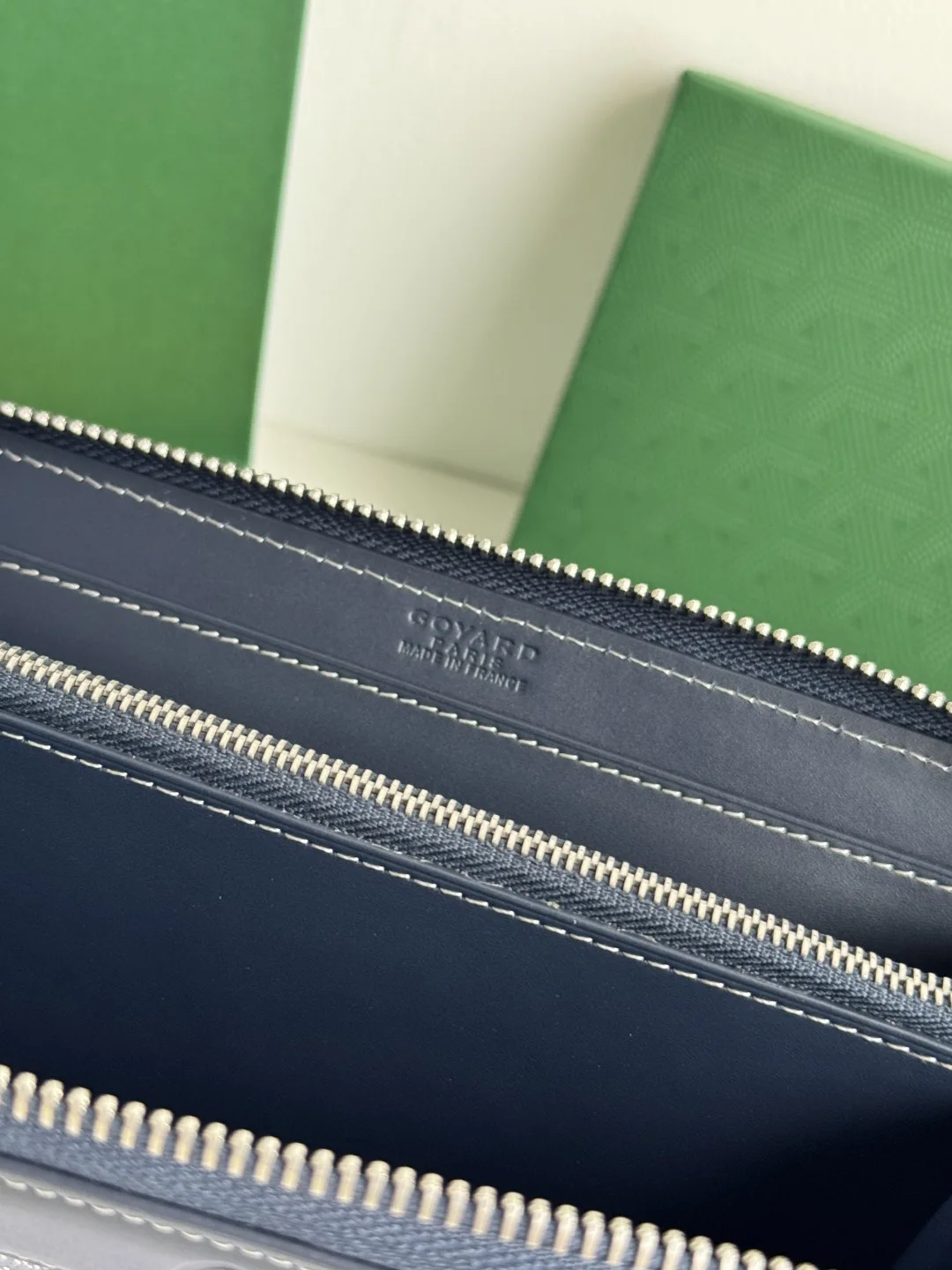 The GOYARD long wallet features 12 card slots, a central zipped pocket, and two large compartments. It can hold cards, banknotes, coins, and other daily documents. Made of cotton-l..