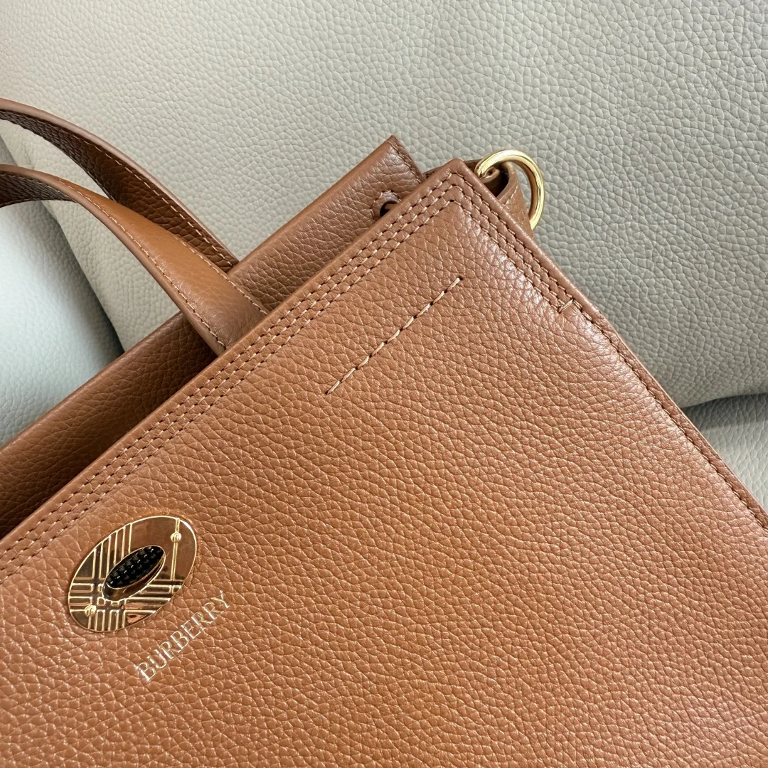 Top Grade 24cm B New Model Tote Bag, crafted from Italian imported grained calfskin leather with a cotton blend lining, elegantly finished with the iconic Haymarket check pattern. The refined style features a check-engraved closure and a horsebit detail, inspired by the belt design of the brand s classic Trench coat. It can be carried by hand or worn as a shoulder bag using the shoulder strap. Dimensions: 24.5 x 13 x 19.5cm. Model Number: 3491