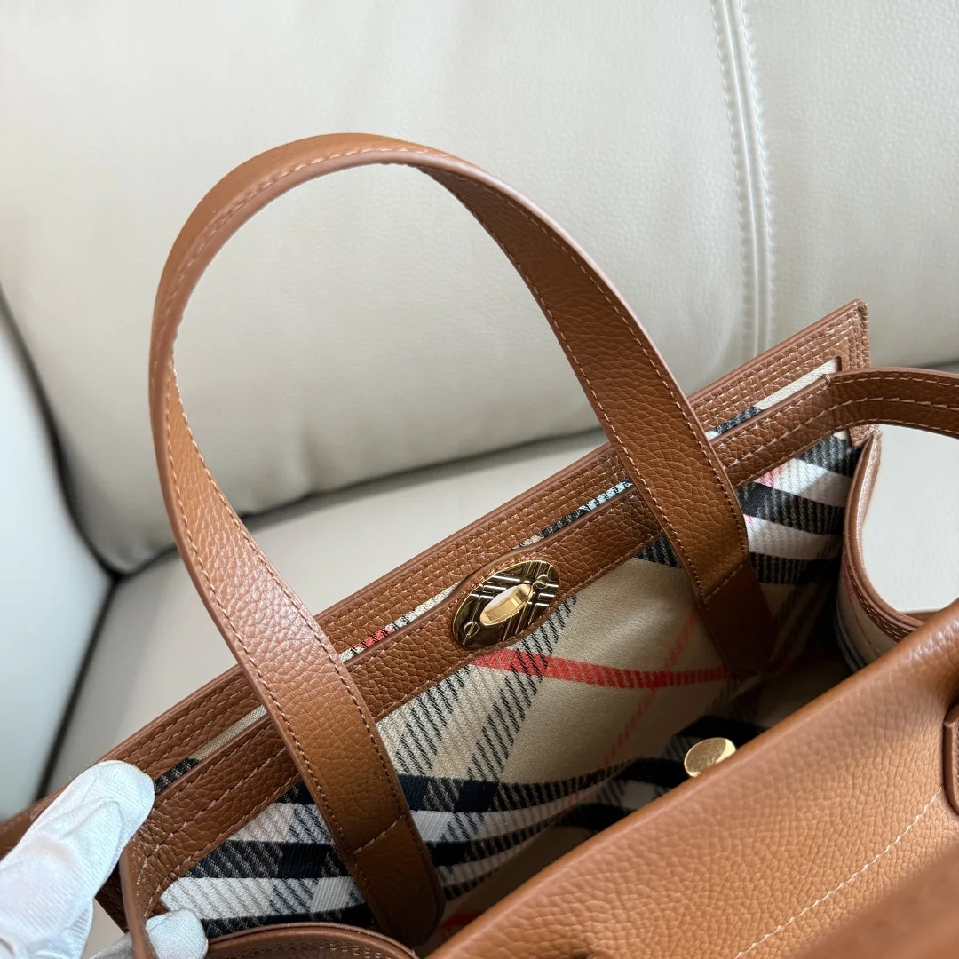 Top Grade 24cm B New Model Tote Bag, crafted from Italian imported grained calfskin leather with a cotton blend lining, elegantly finished with the iconic Haymarket check patter..