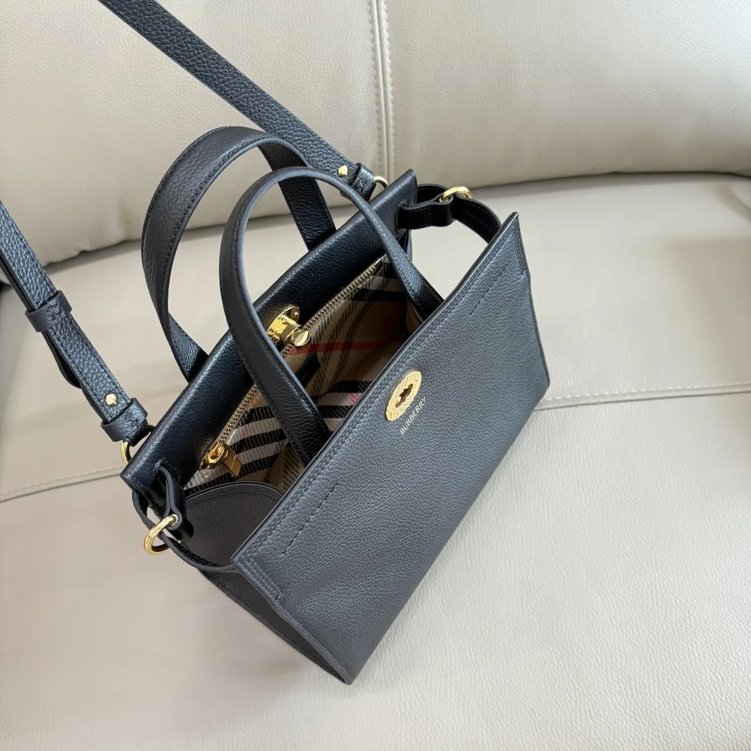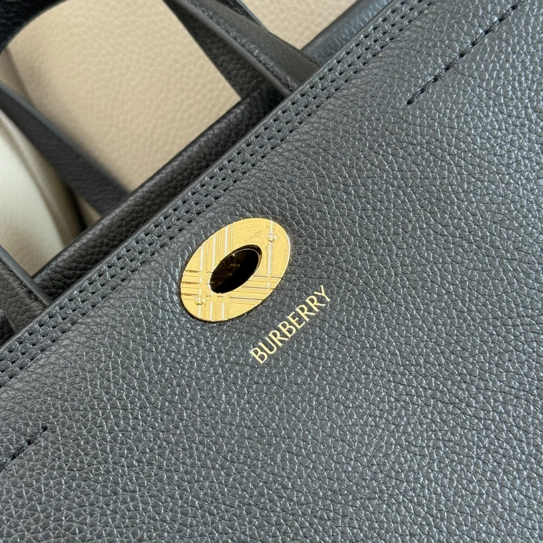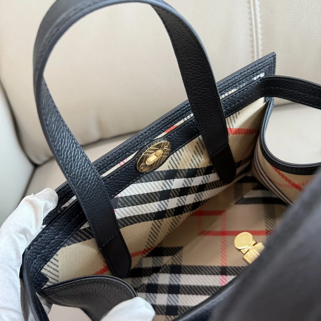 Top Grade 24cm B Family New Tote Bag, crafted from Italian imported grained calfskin leather with a cotton blend lining, elegantly finished with the iconic Haymarket Burberry ch..