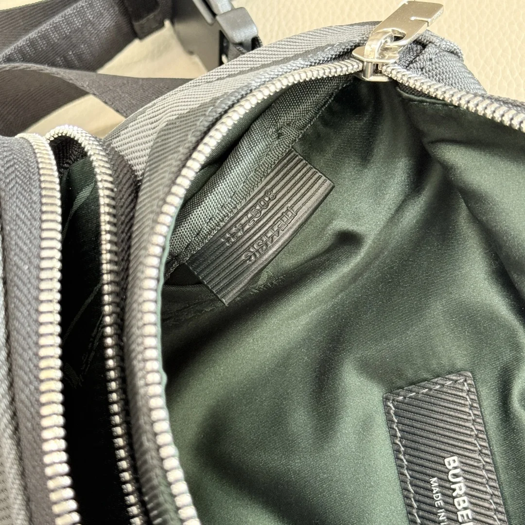 Premium B-family latest plaid waist bag chest bag features a durable ribbed texture with mesh panels on the back. Lined with nylon and accented with a B-shaped zipper pull. Ador..