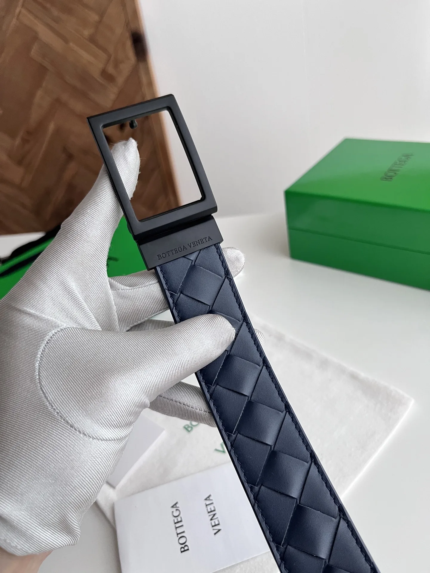 BV 2025 New Men s Woven Belt, Reversible, Handmade Intreccio Large Check Weave, Reversible Italian Calfskin with Vintage Silver Rotatable Square Buckle, Branded on Front, Width 35M..