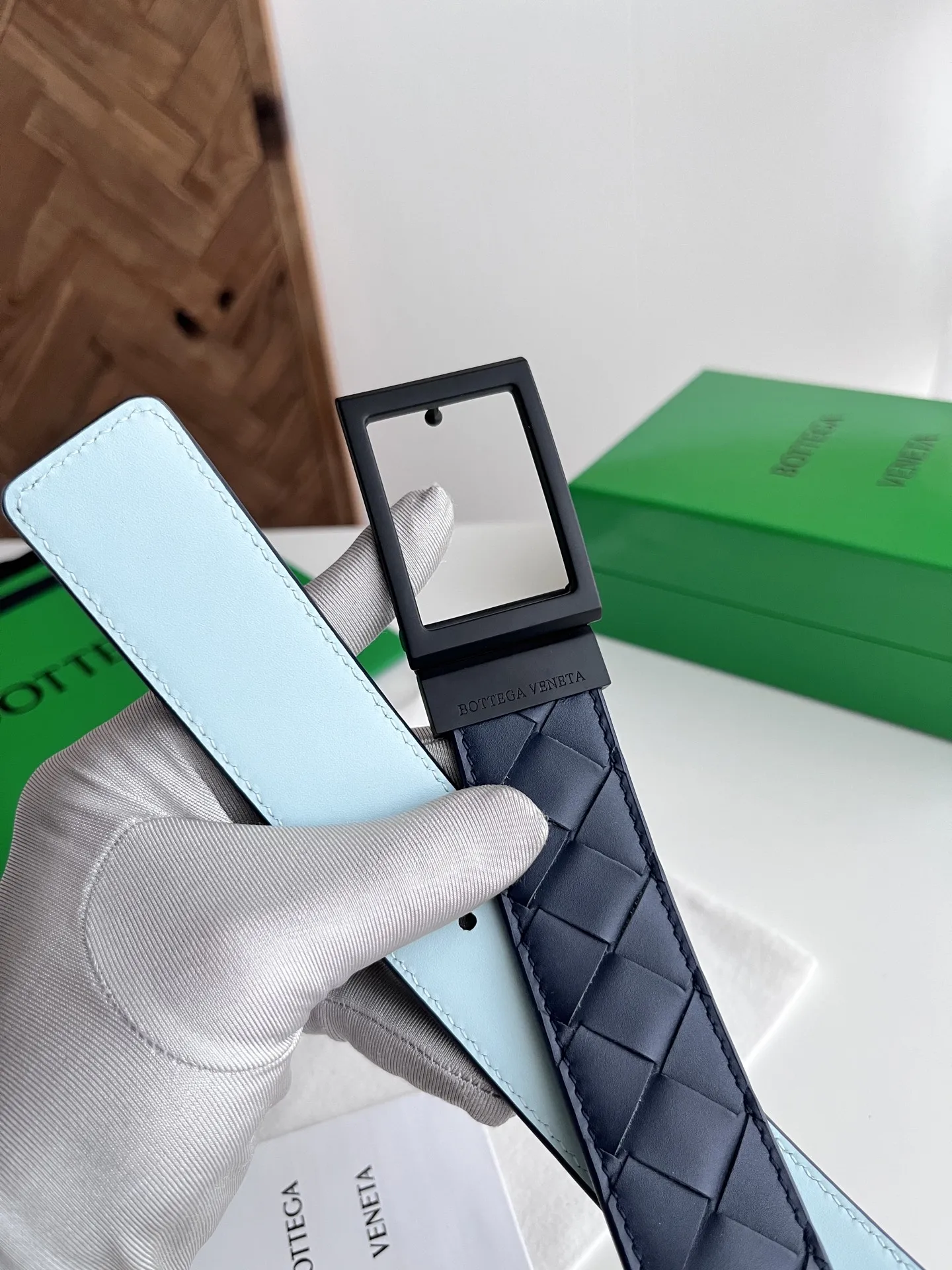 BV 2025 New Men s Woven Belt, Reversible, Handmade Intreccio Large Check Weave, Reversible Italian Calfskin with Vintage Silver Rotatable Square Buckle, Branded on Front, Width 35MM