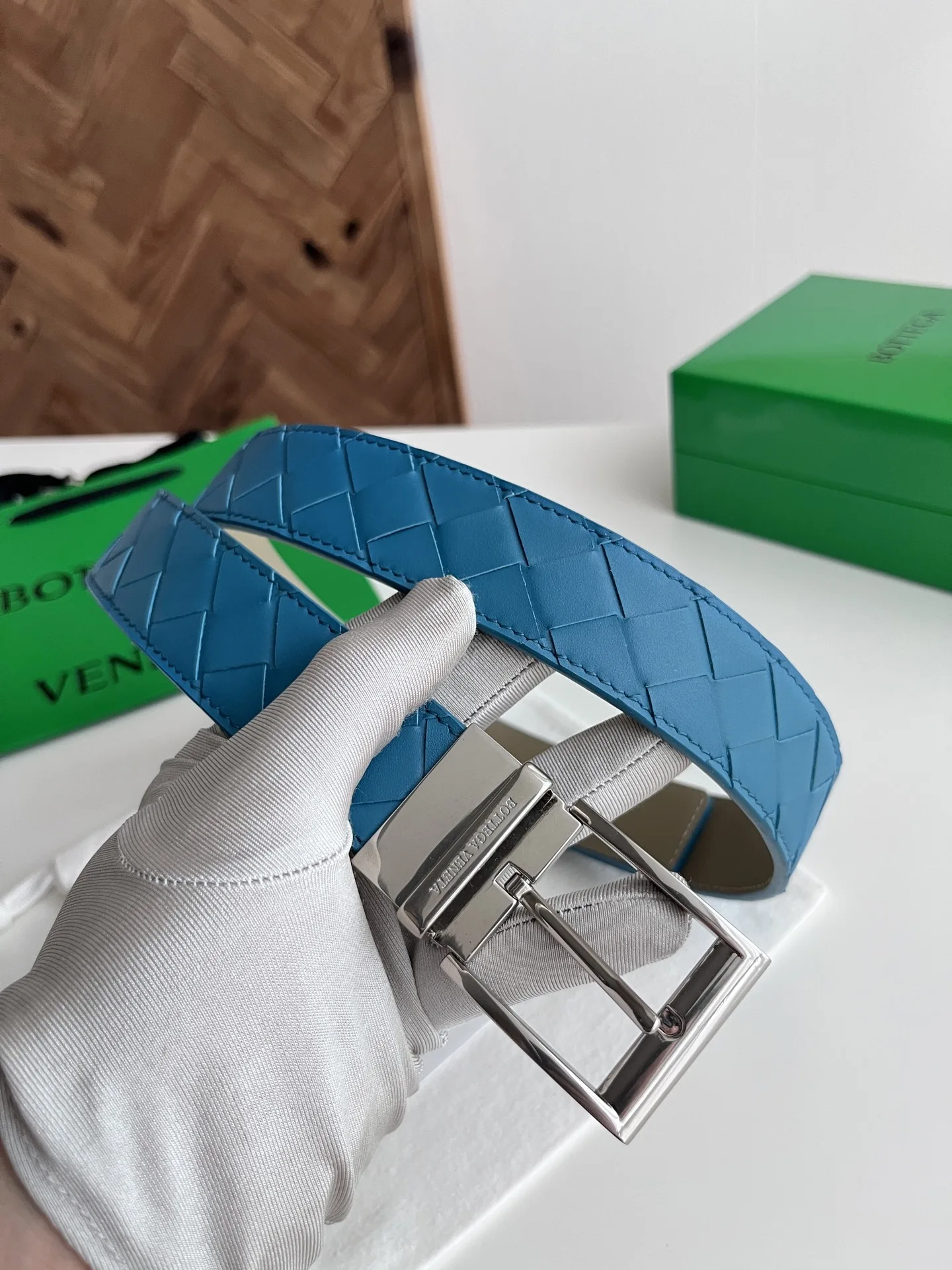 BV 2025 New Men s Woven Belt, Reversible, Handmade Intreccio Large Check Weave, Reversible Italian Calfskin with Micro-Vintage Silver Rotatable Pin Buckle, Branded on the Front, Belt Width 35MM