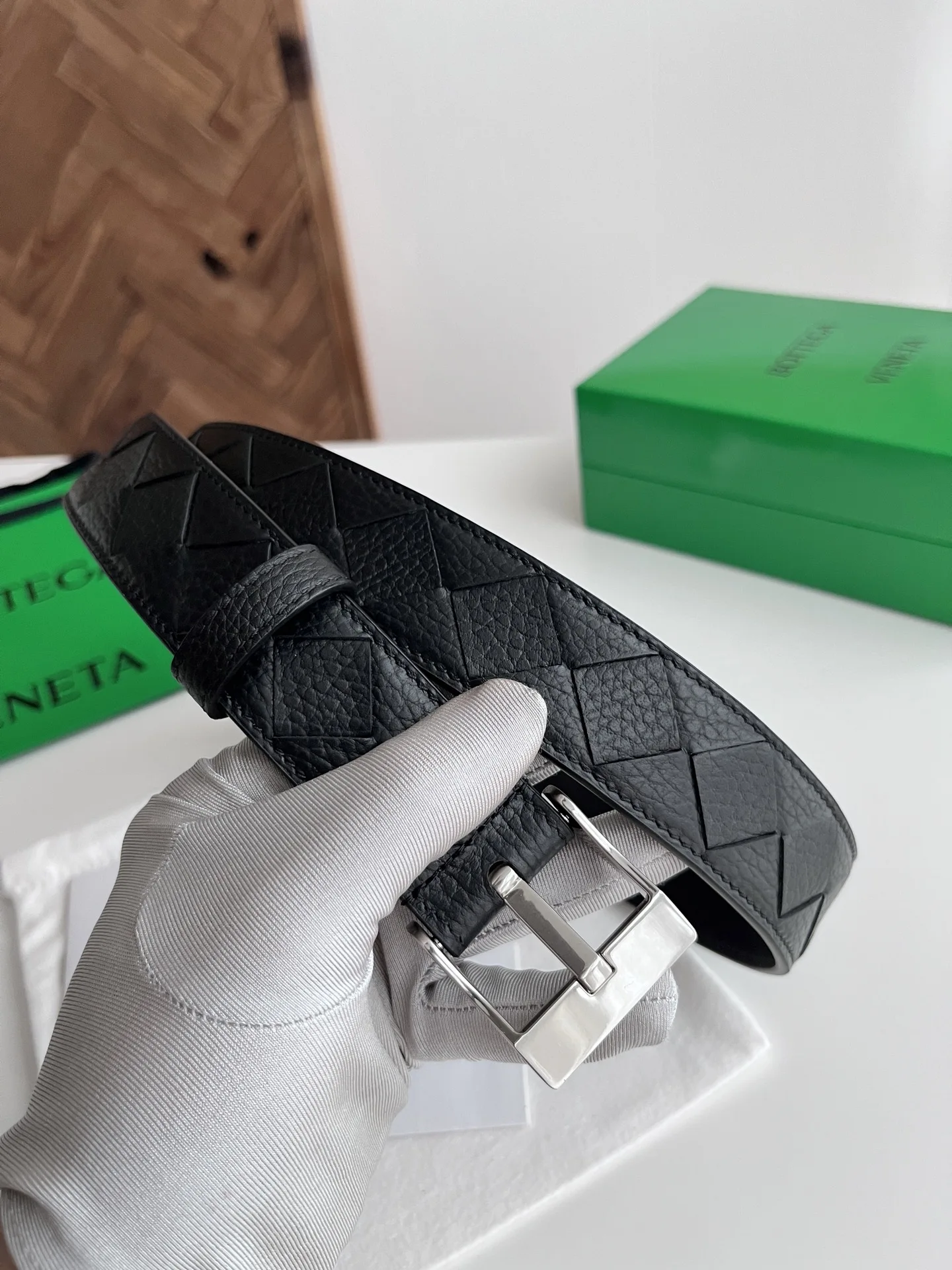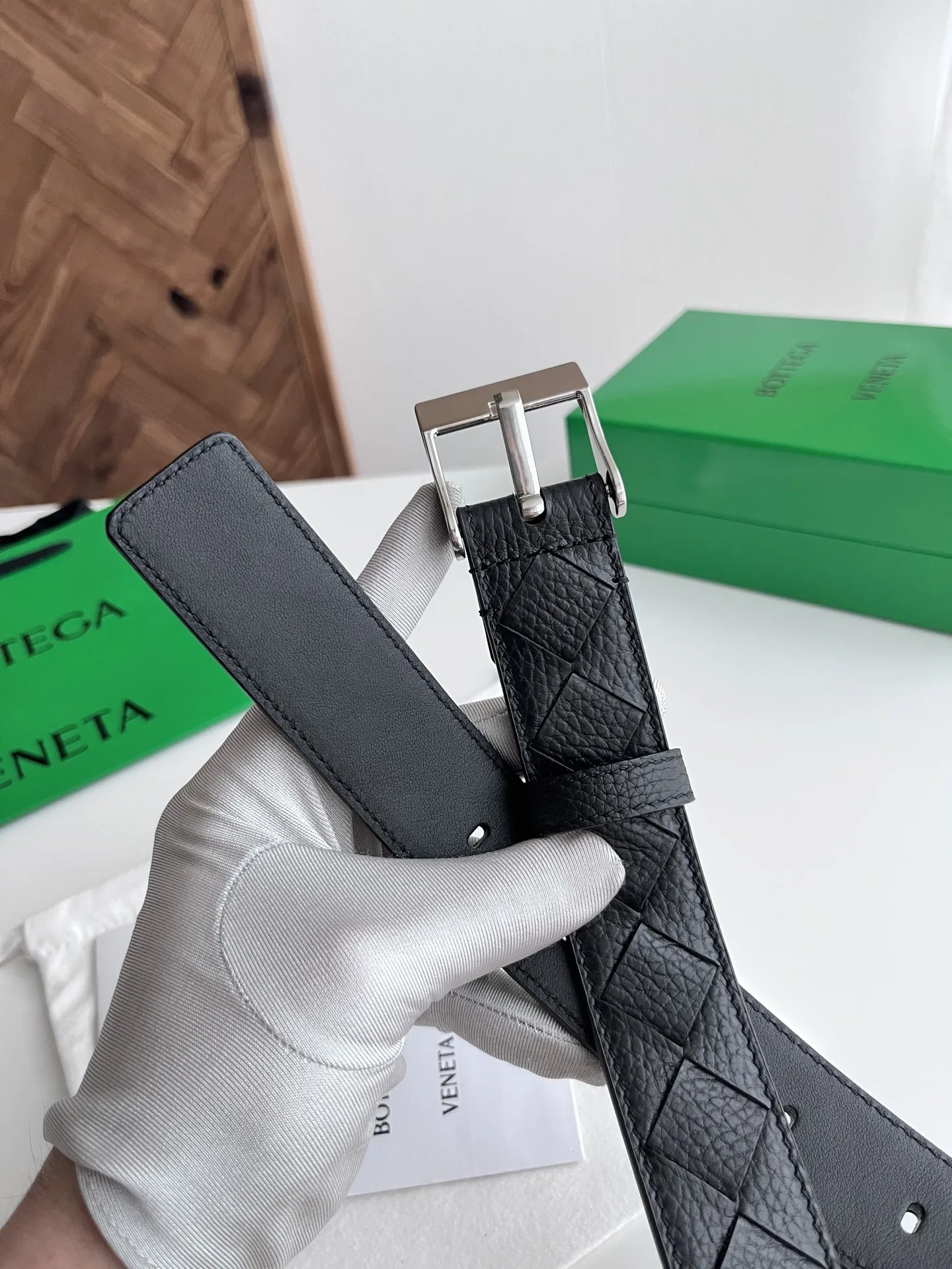 BV 2025 New Men s Belt, Hand-woven Large Intreccio Pattern, Italian Lychee-textured Calfskin Leather, Featuring a New Buckle Design with Vacuum Gunmetal Needle Buckle, Belt Width 3.5cm.