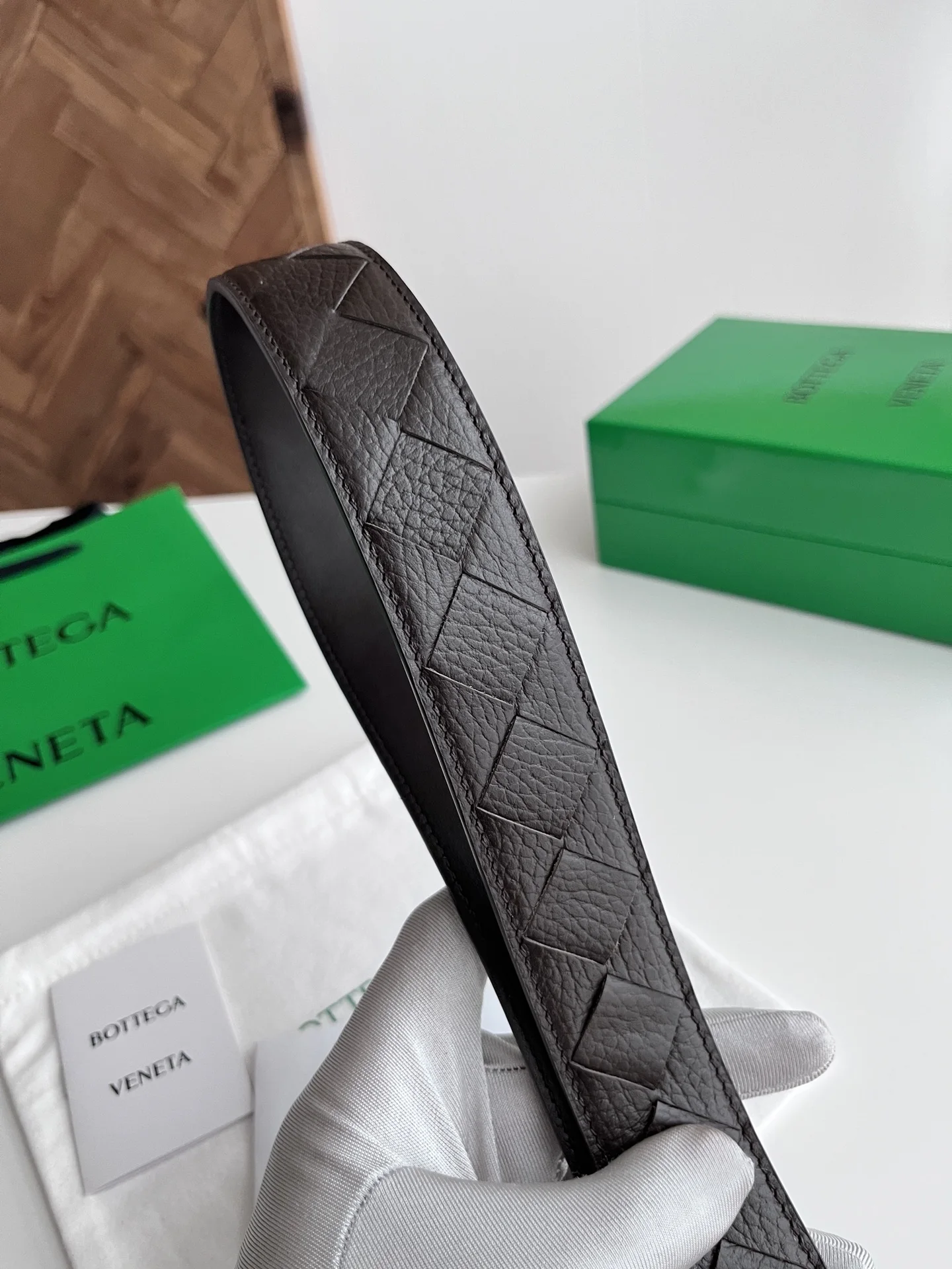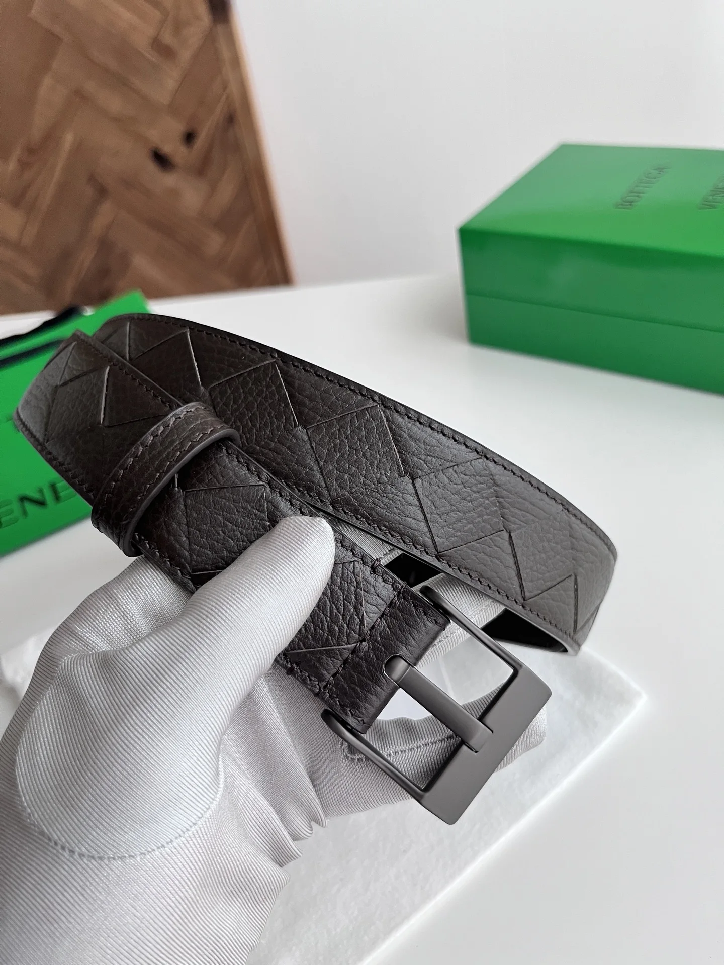 BV 2025 New Men s Belt, Hand-woven Large Intreccio Pattern, Italian Lychee-textured Calfskin, Featuring a New Buckle Design with Vacuum Gunmetal Needle Buckle, Belt Width 3.5cm.
