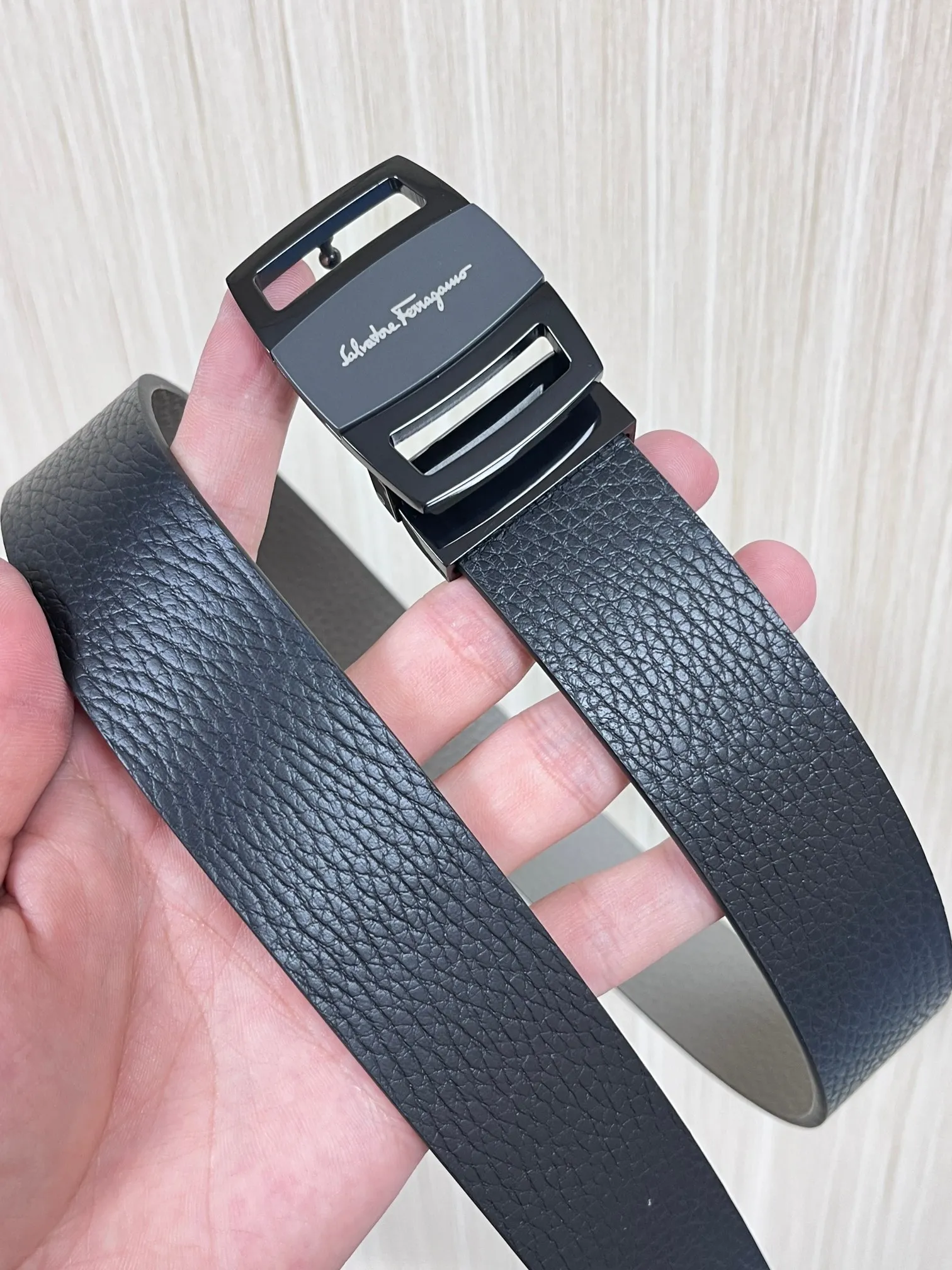 Ferragamo full set packaging, 3.5cm width, custom-made men s belt, double-sided imported cowhide, reversible, freely selectable pairing, genuine material, very textured, fashionable and classic, with exquisite tail clip buckle, length can be cut to size.