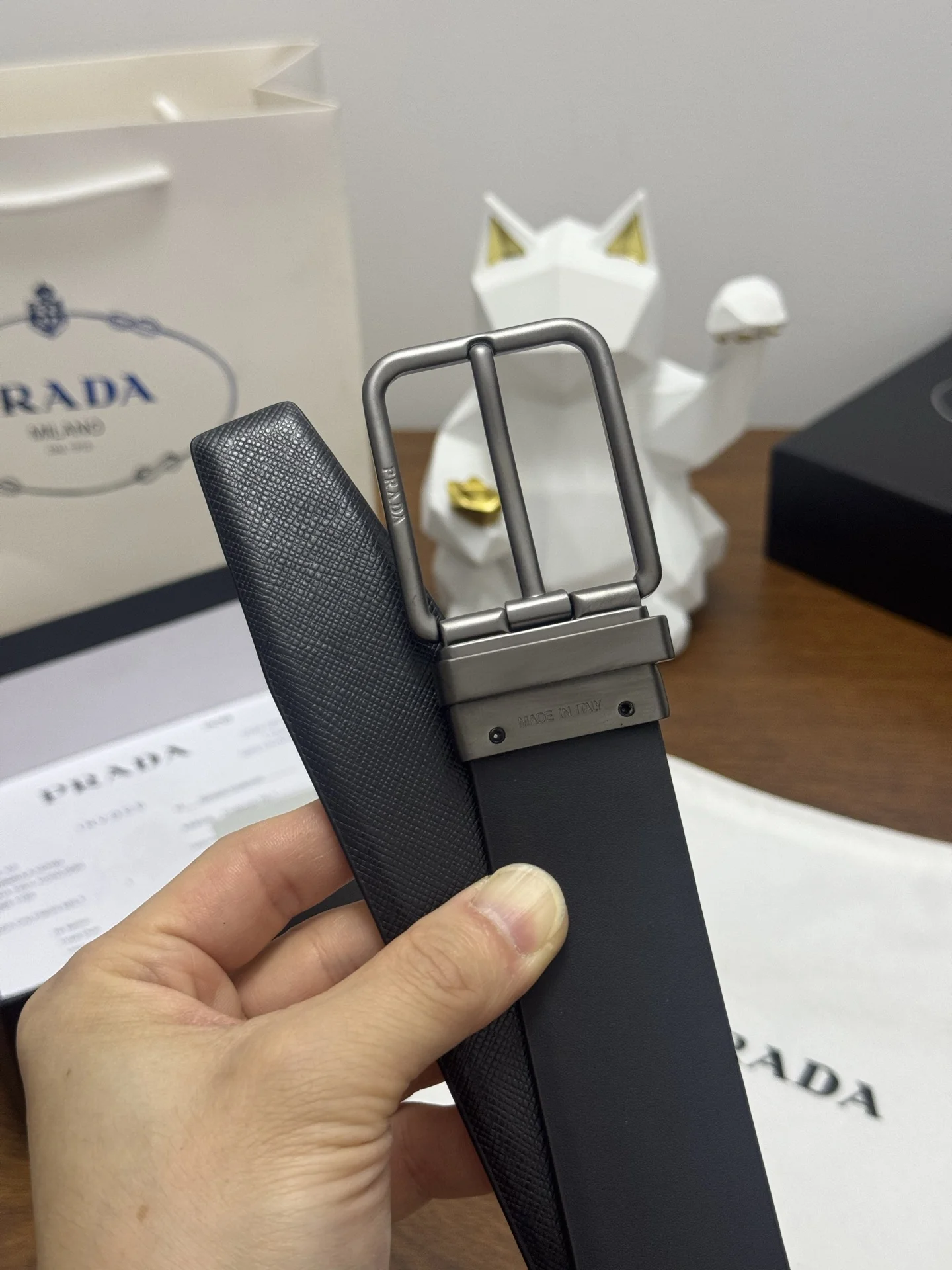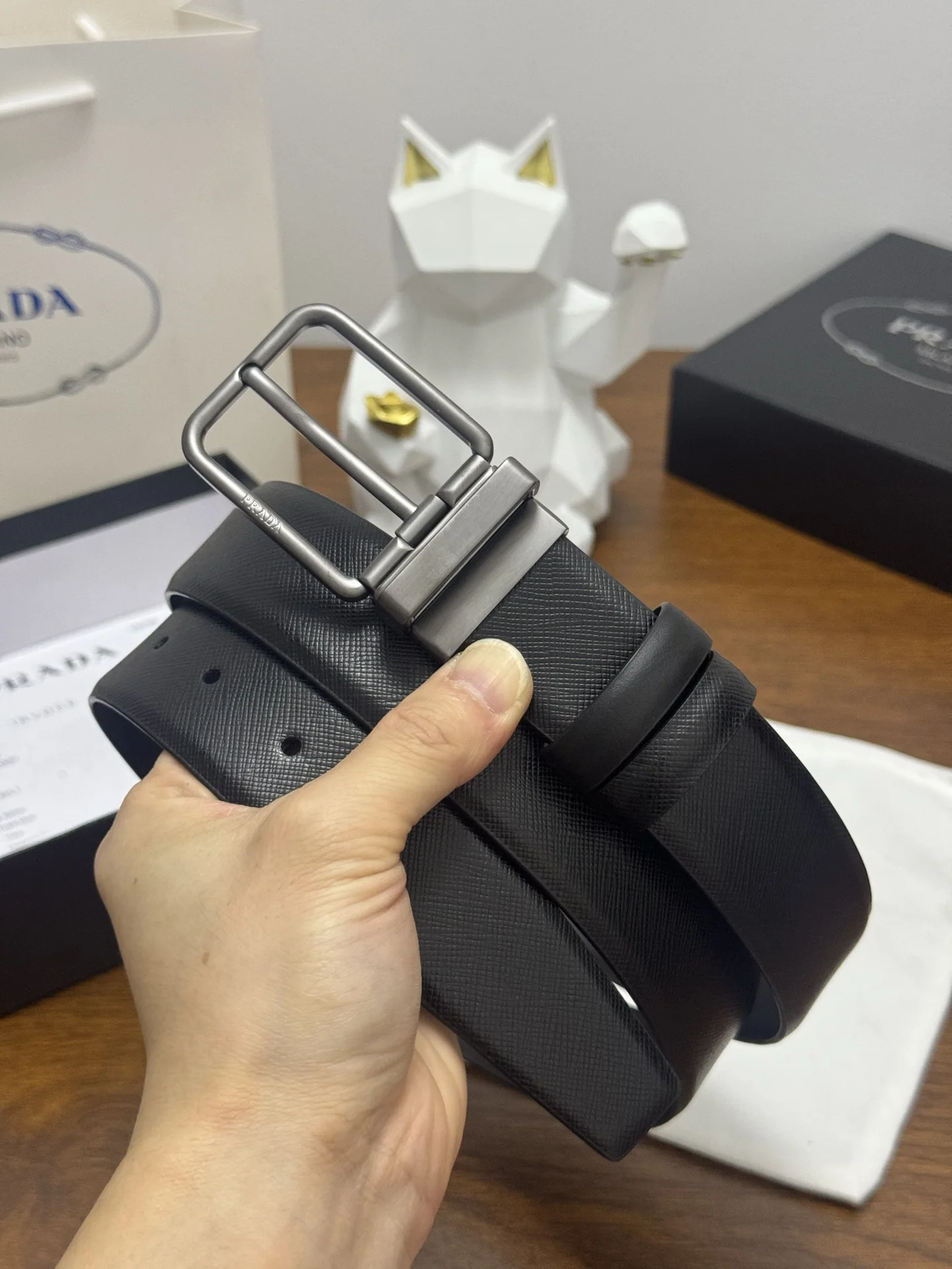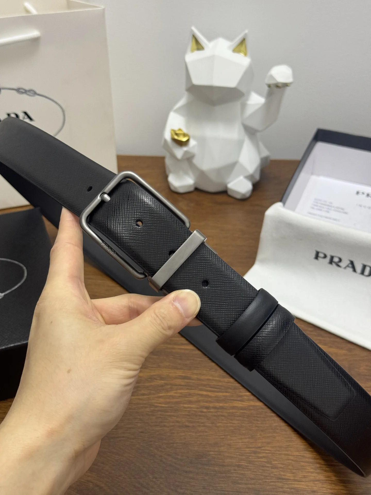 Prada 35MM Men s Crossgrain Textured Leather Belt