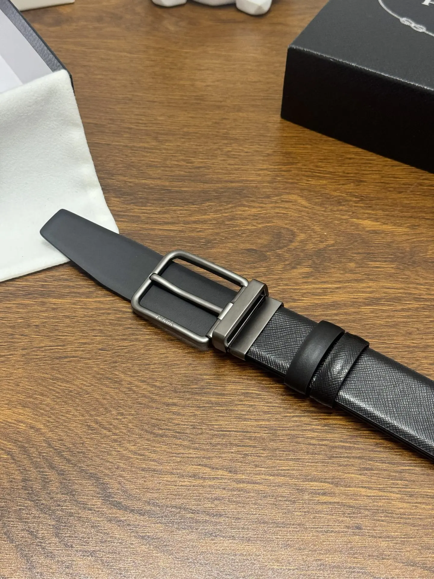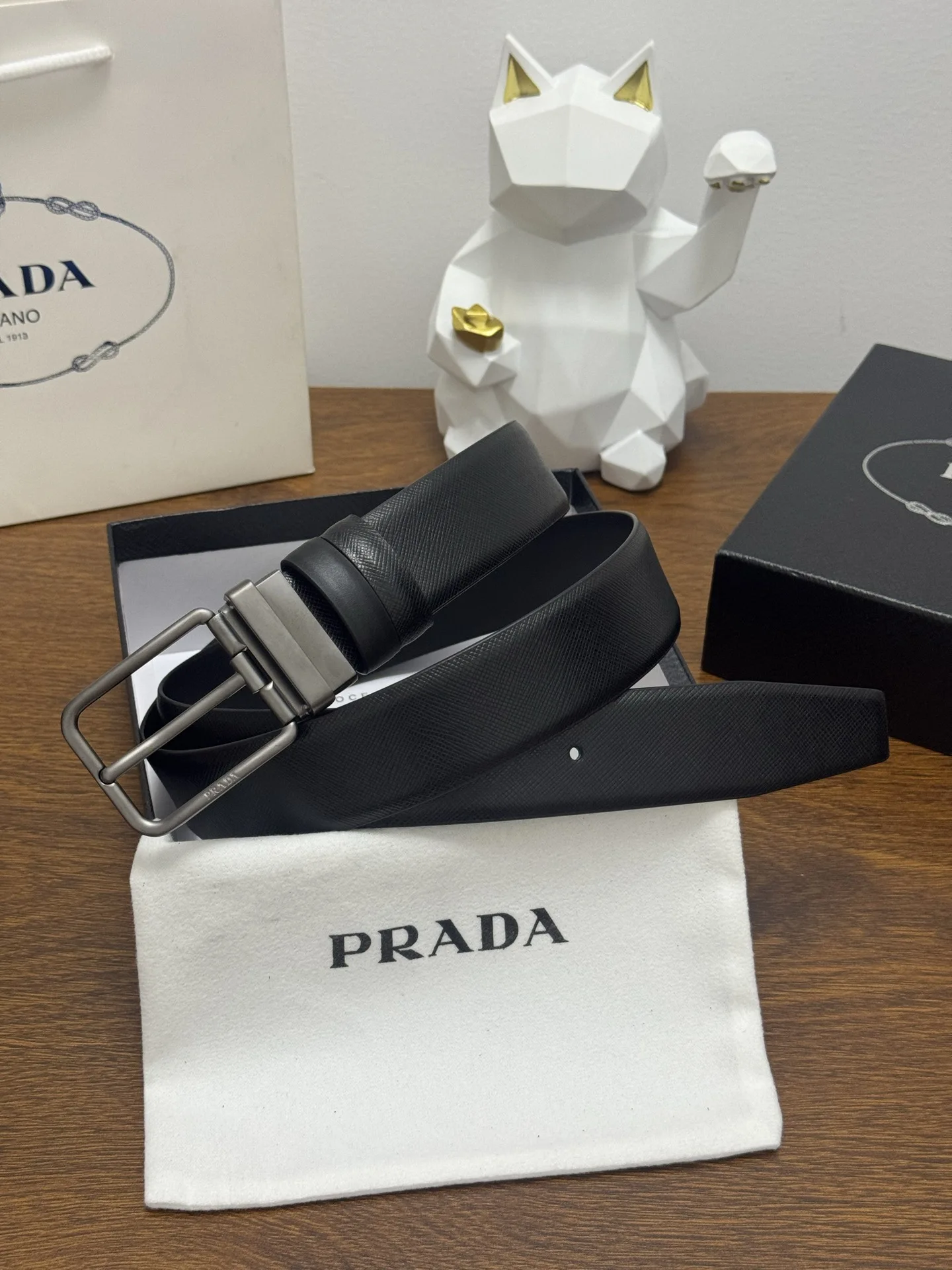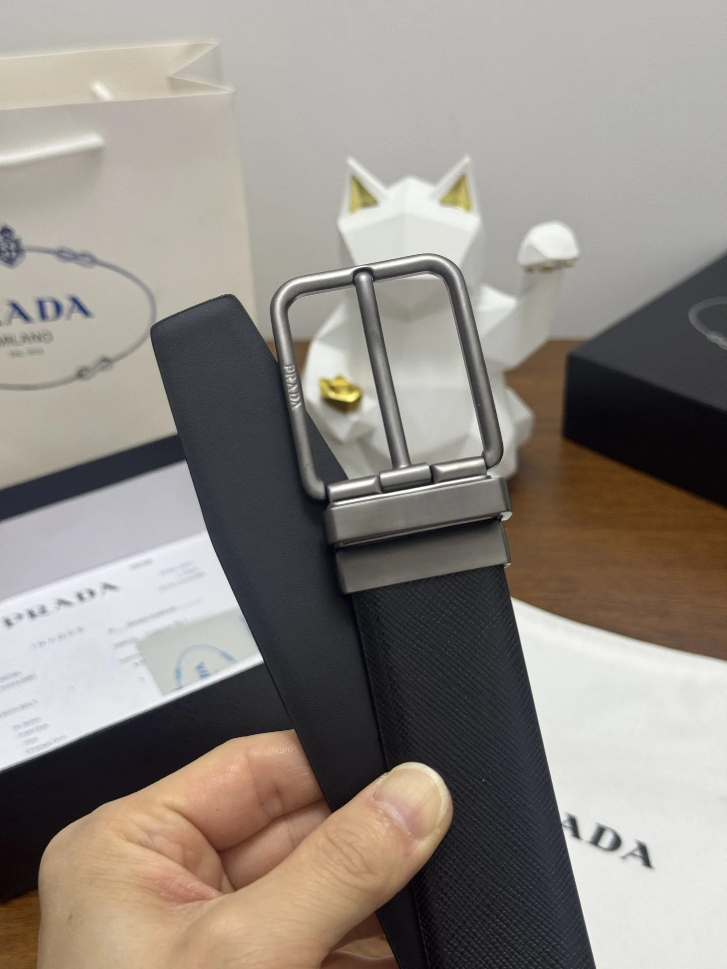 Prada 35MM Men s Crossgrain Textured Leather Belt