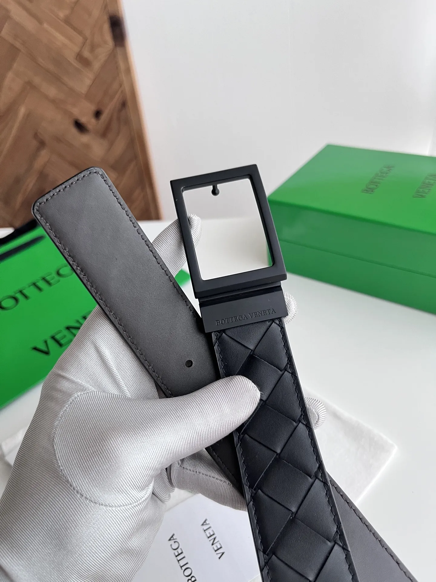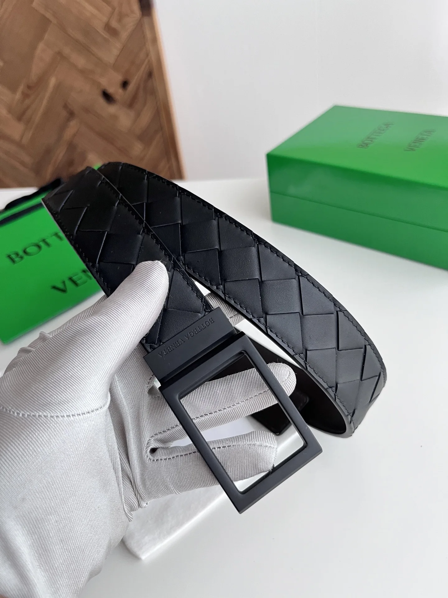 BV 2025 New Men s Woven Belt, Reversible, Handmade Intreccio Large Check Weave, Reversible Italian Calfskin with Vintage Silver Rotatable Square Buckle, Branded on Front, Width 35MM