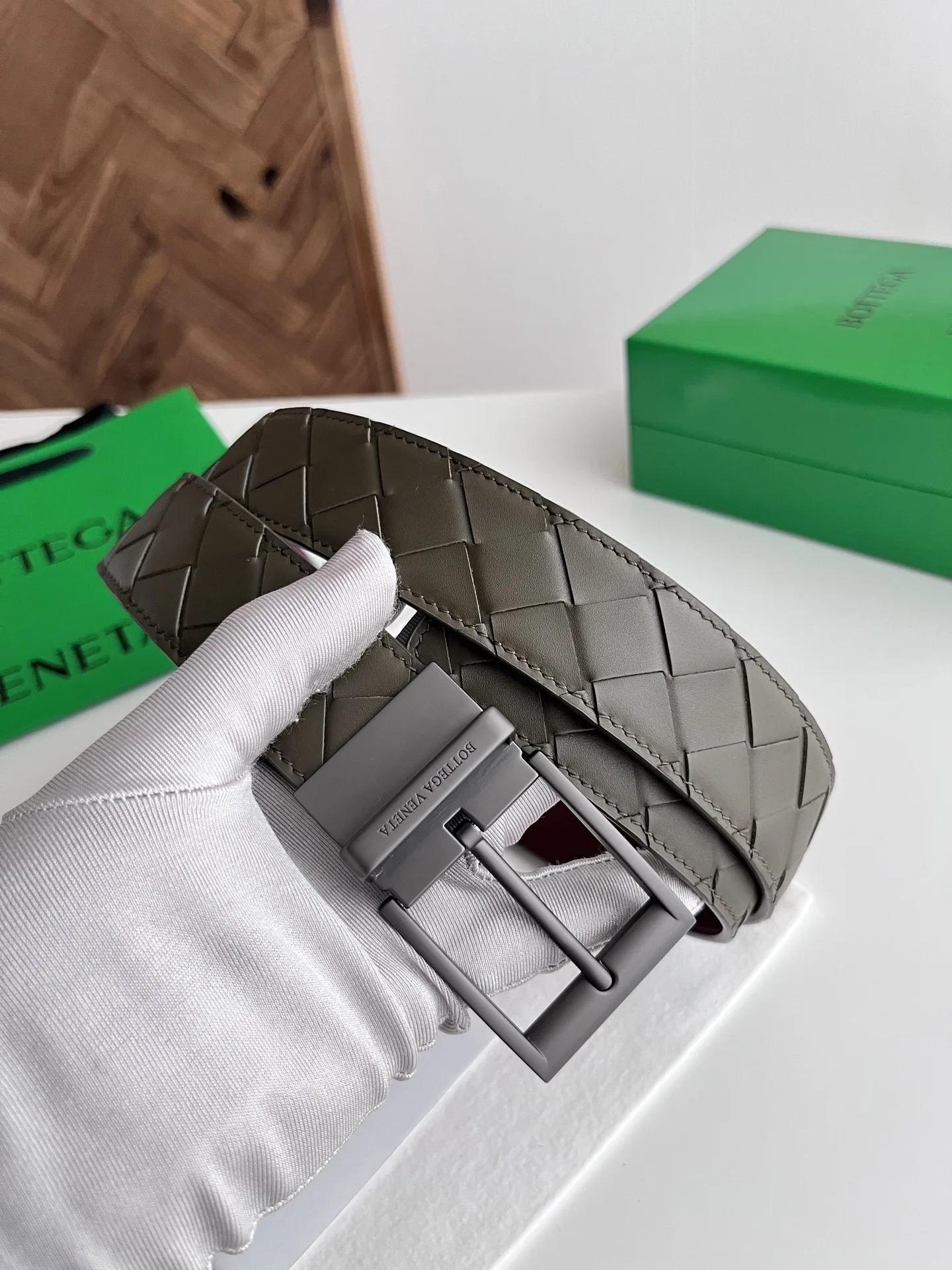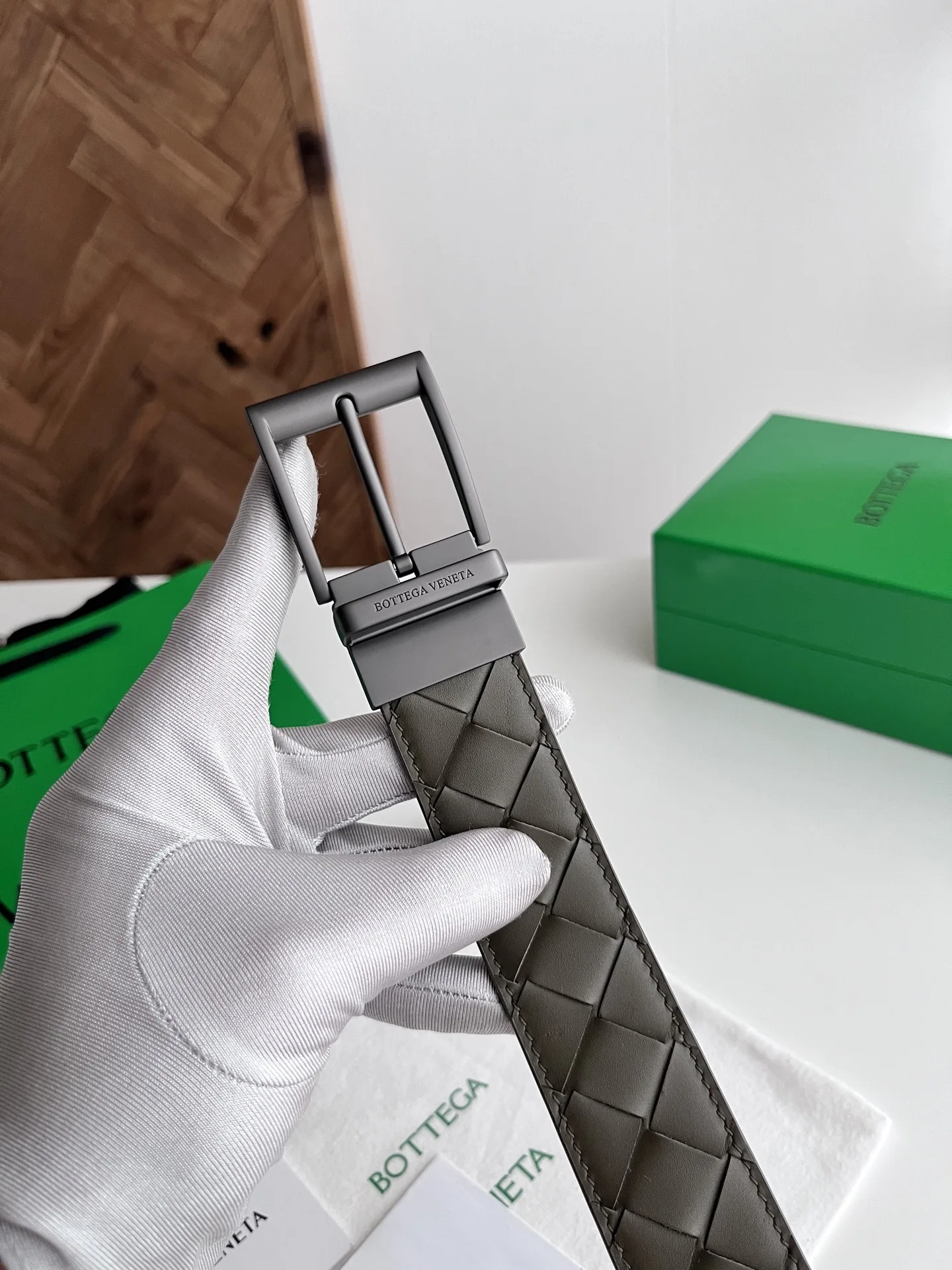 BV 2025 New Men s Woven Belt, Reversible, Handmade Intreccio Large Check Weave, Reversible Italian Calfskin with Micro-Vintage Silver Rotatable Pin Buckle, Branded on the Front, Belt Width 35MM
