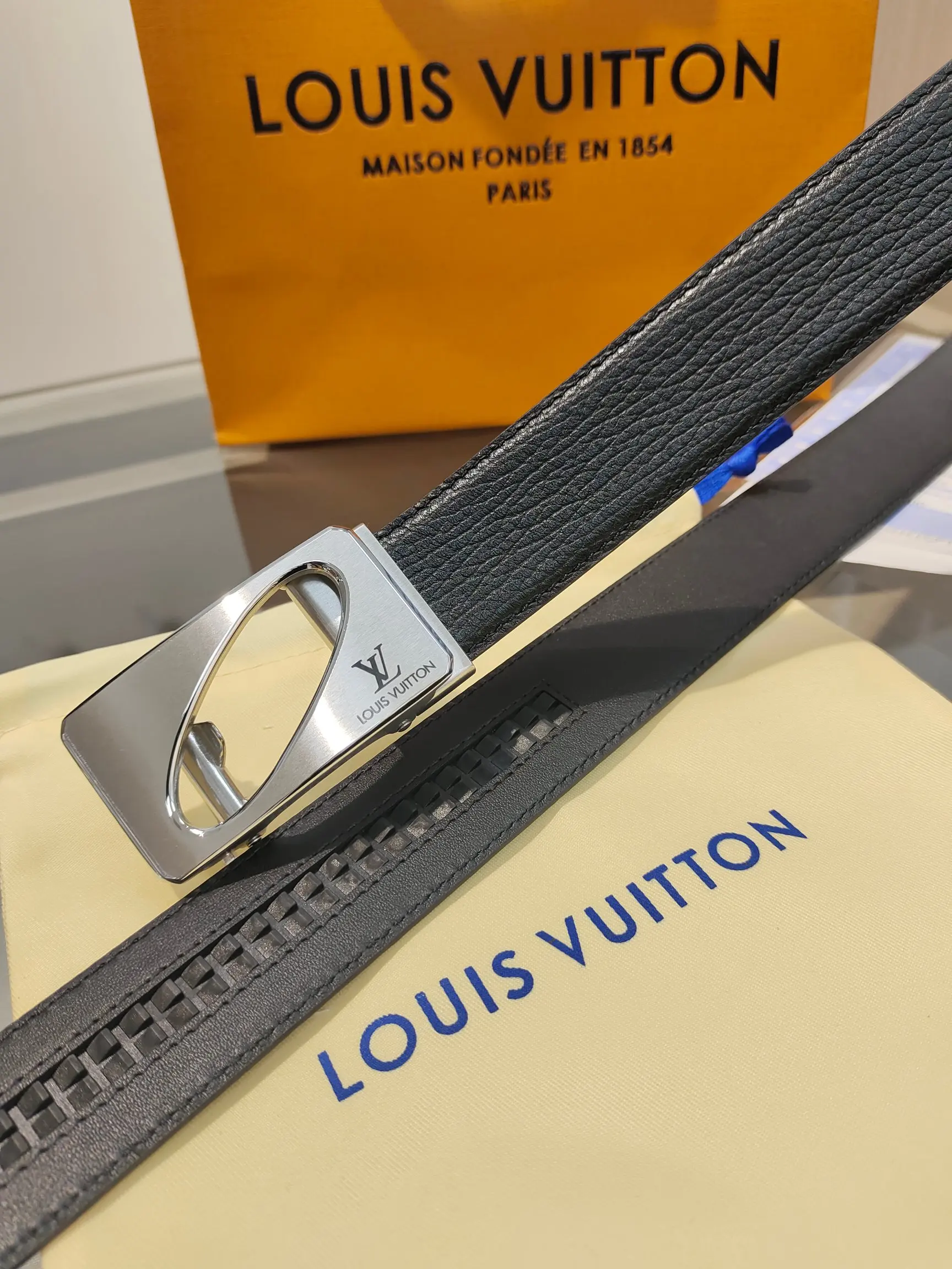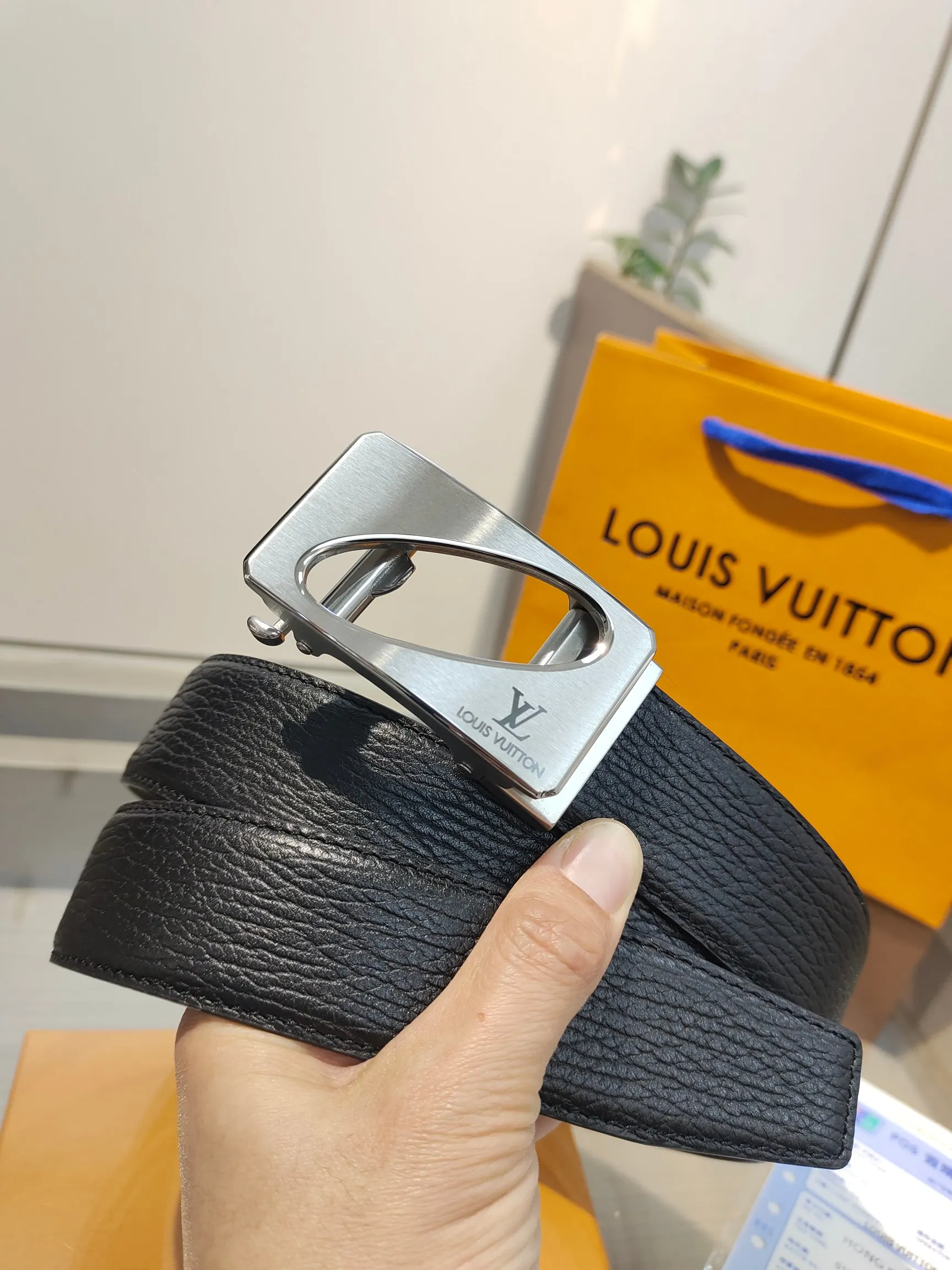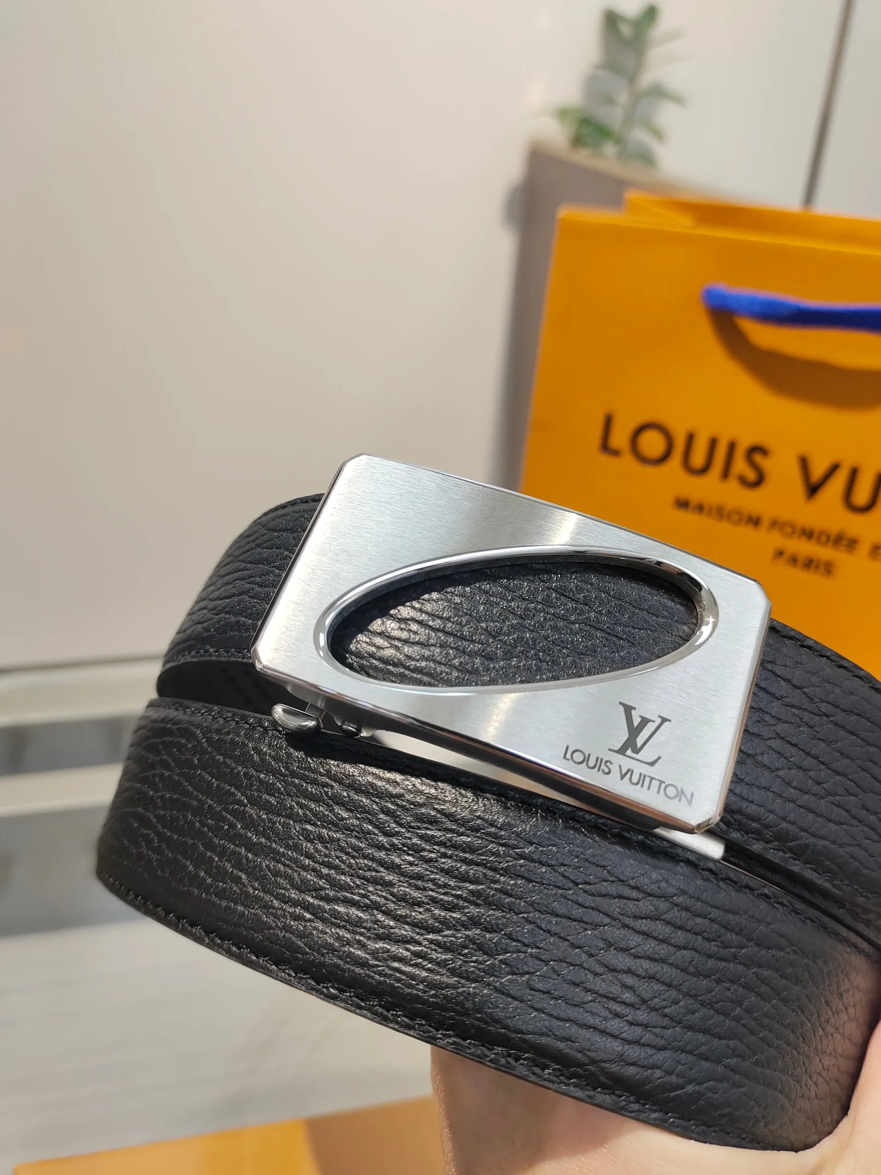 Louis Vuitton 35mm width men s automatic leather belt, automatic smooth buckle belt