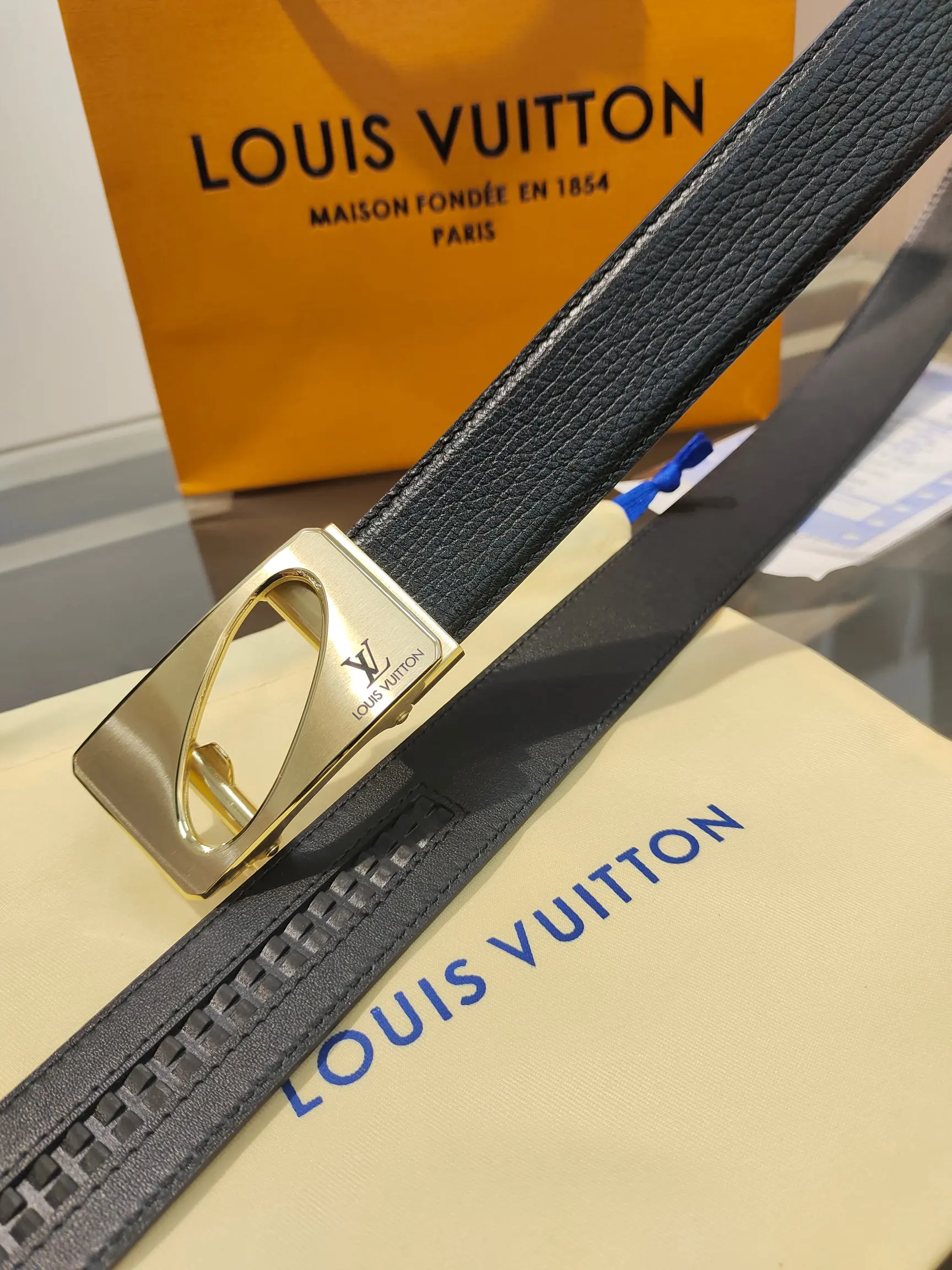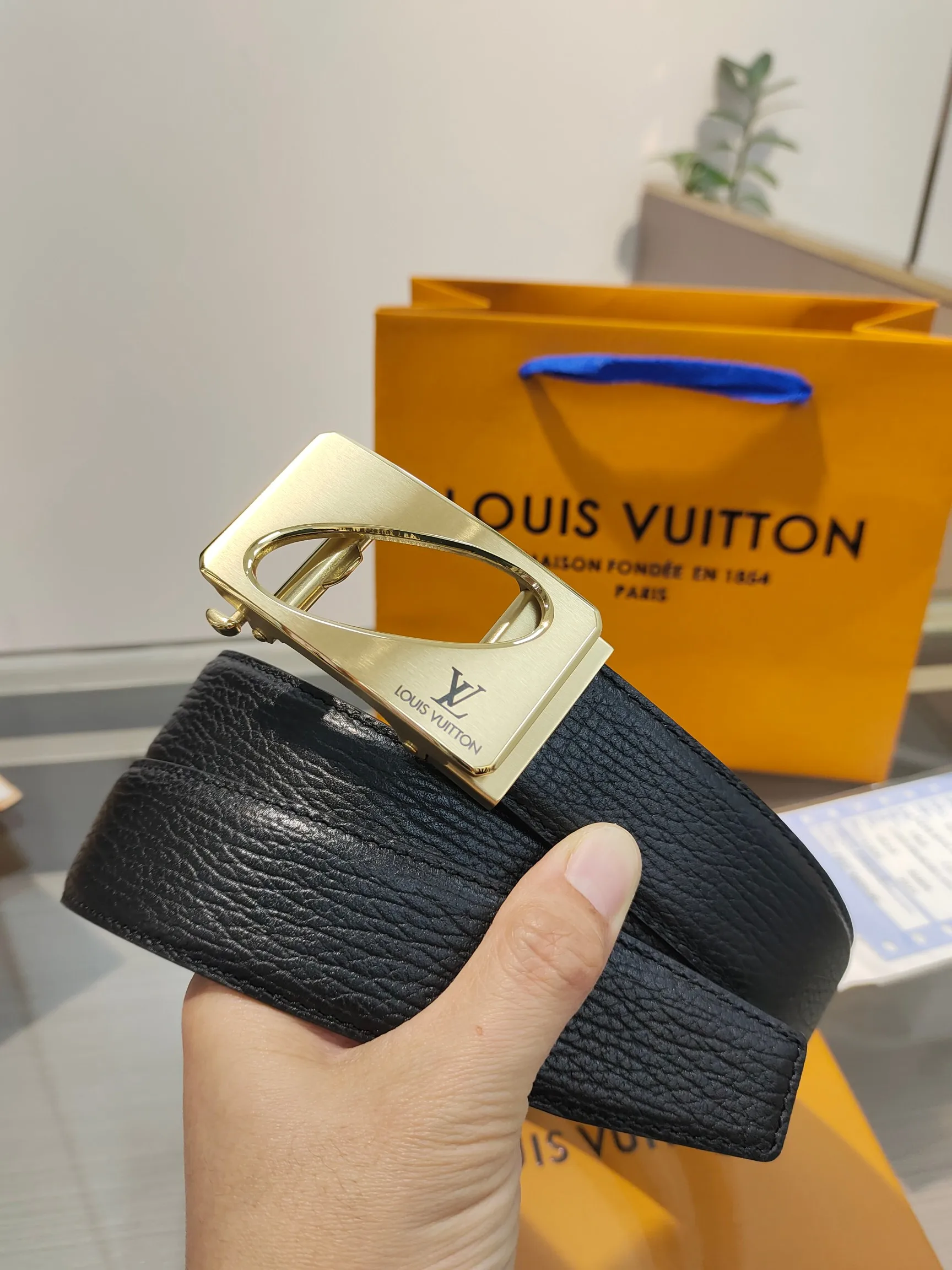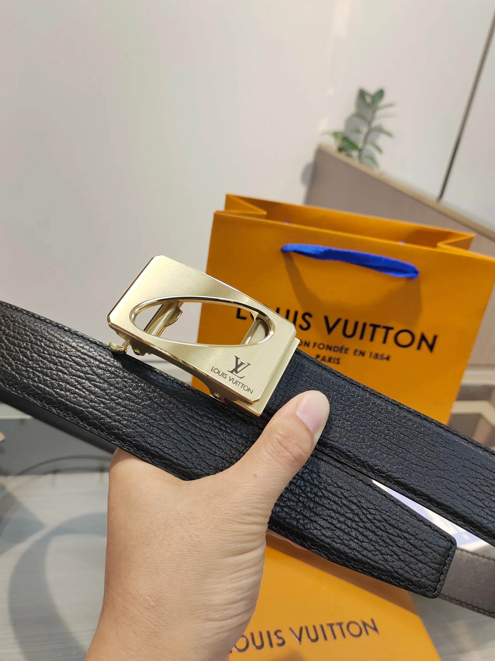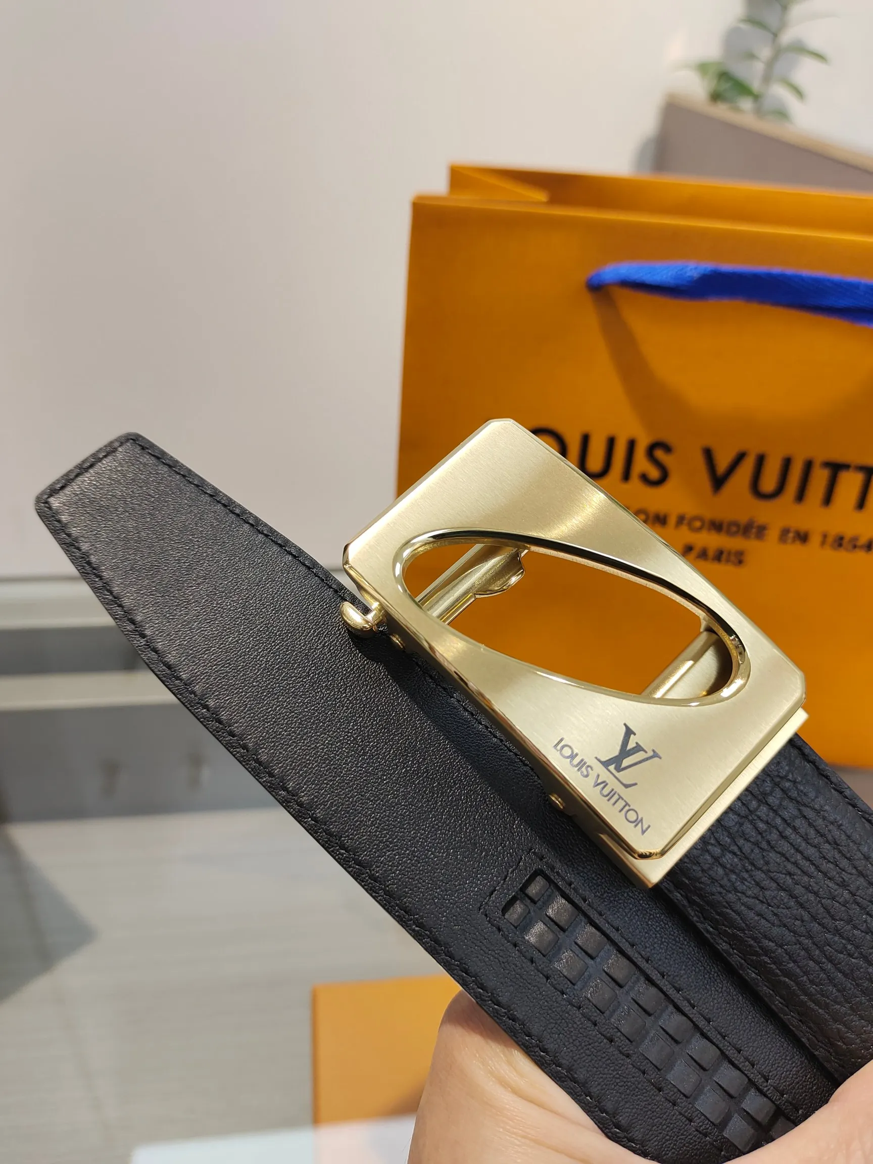 Louis Vuitton 35mm width men s automatic leather belt, automatic smooth buckle belt