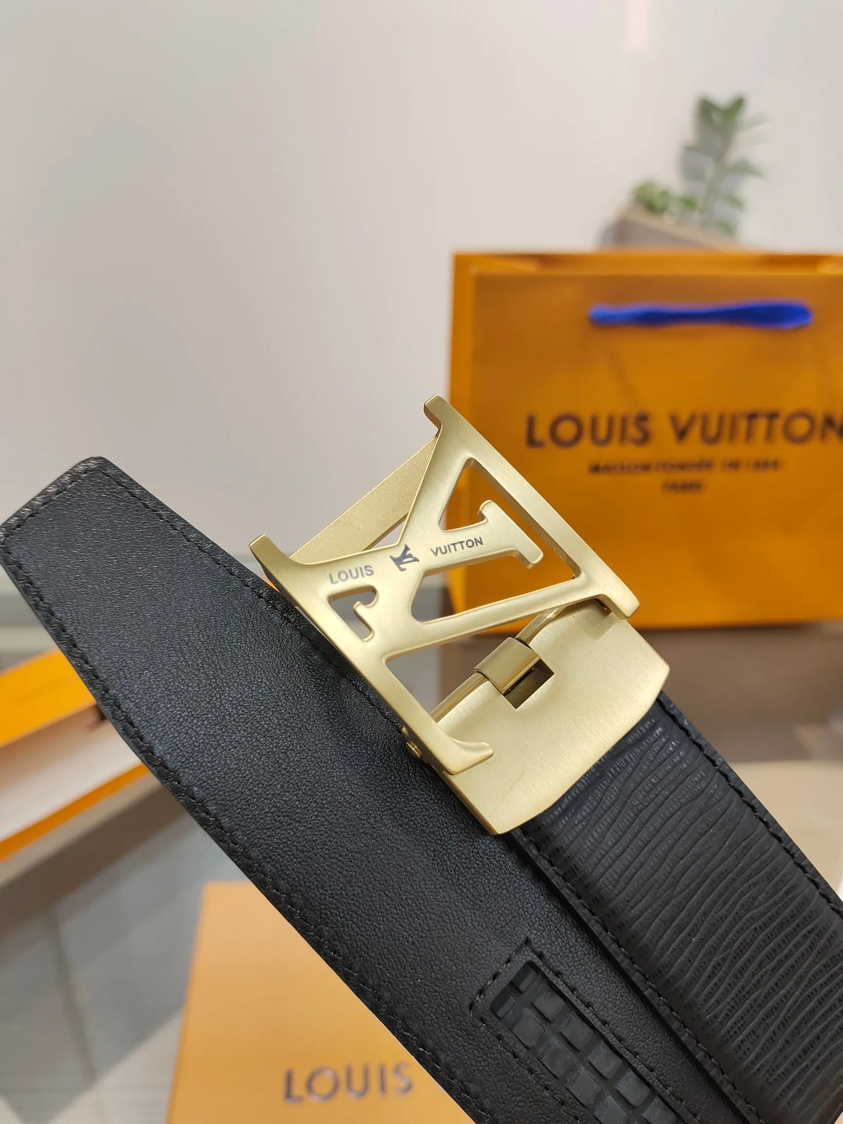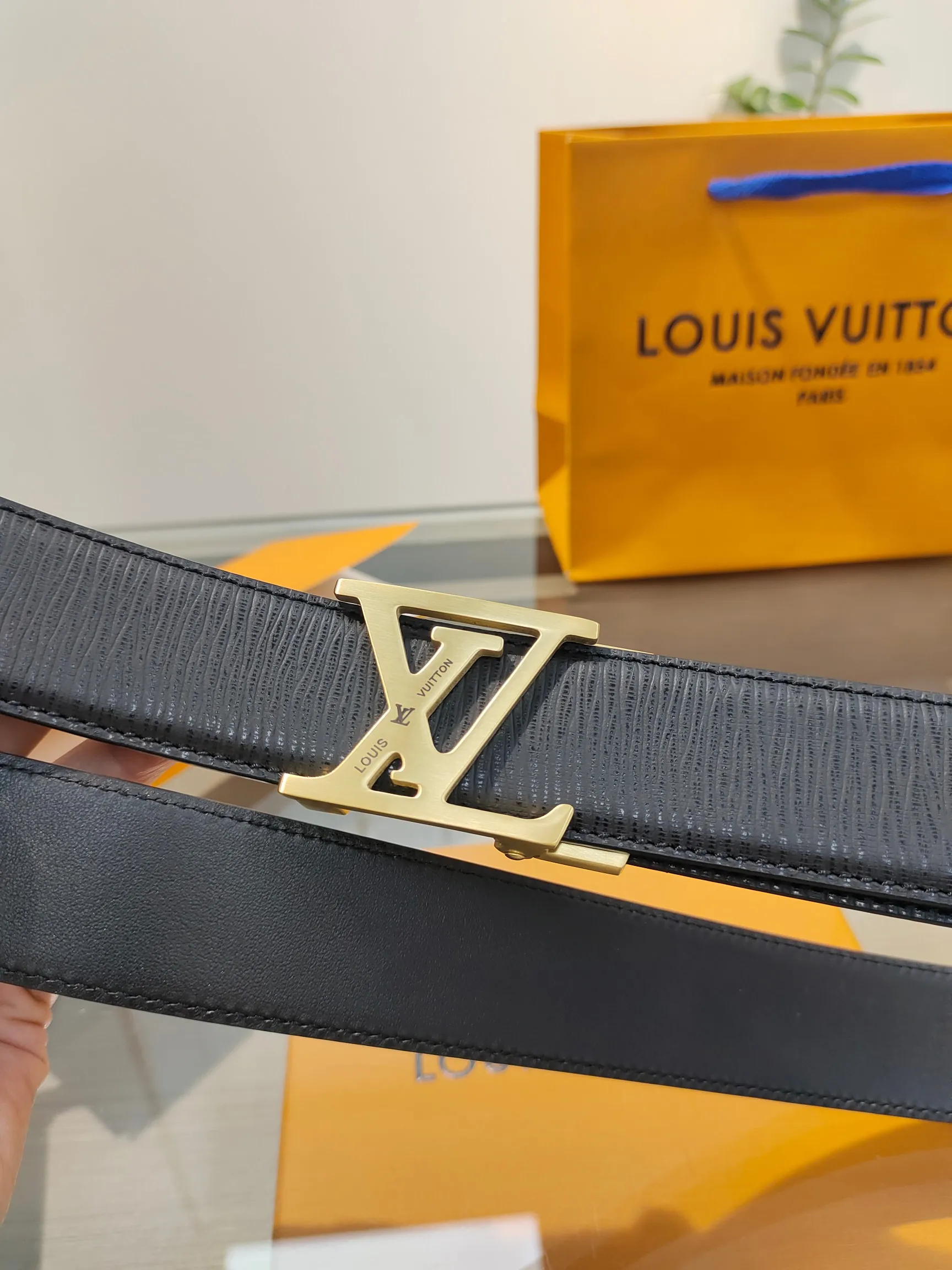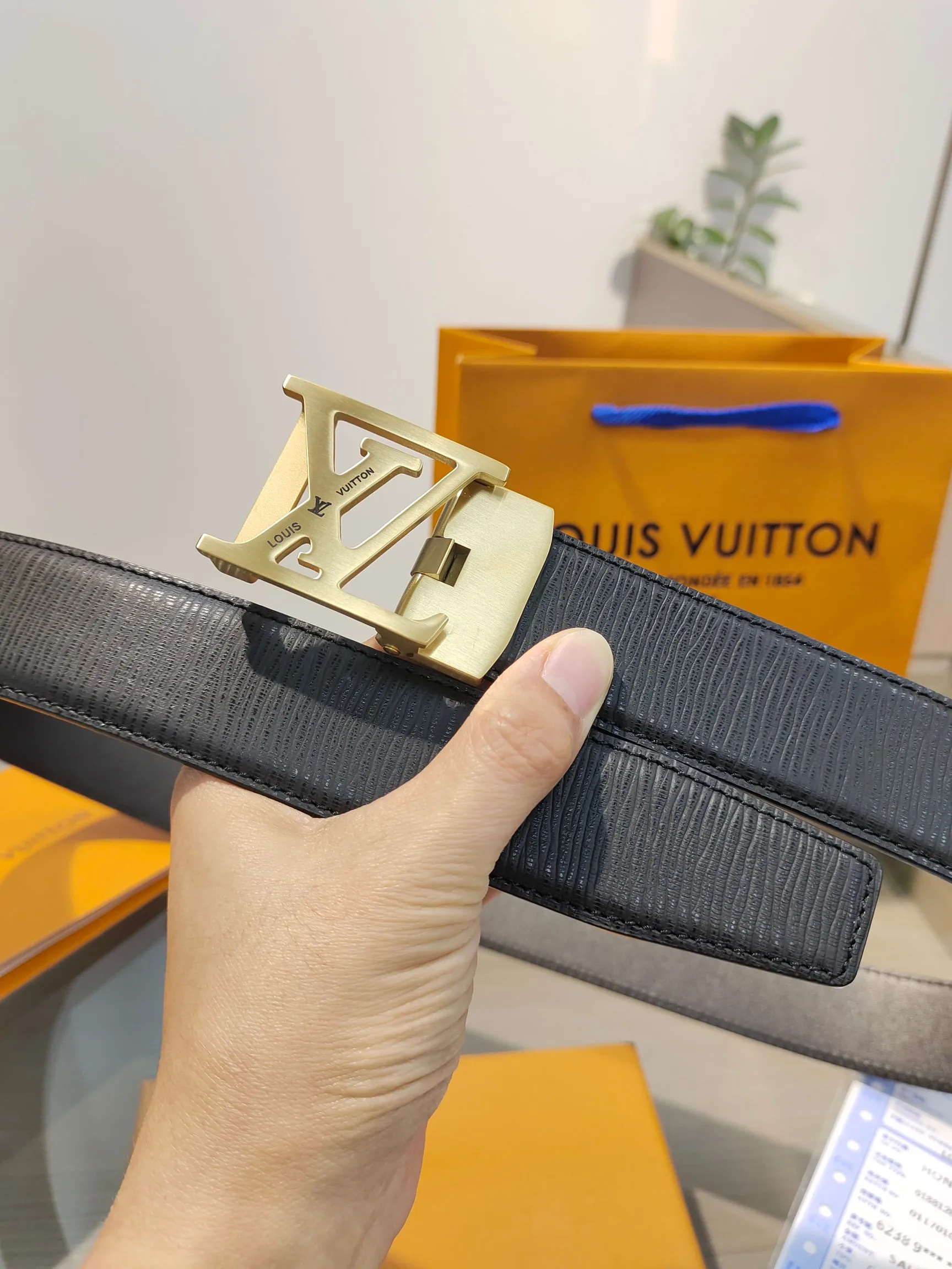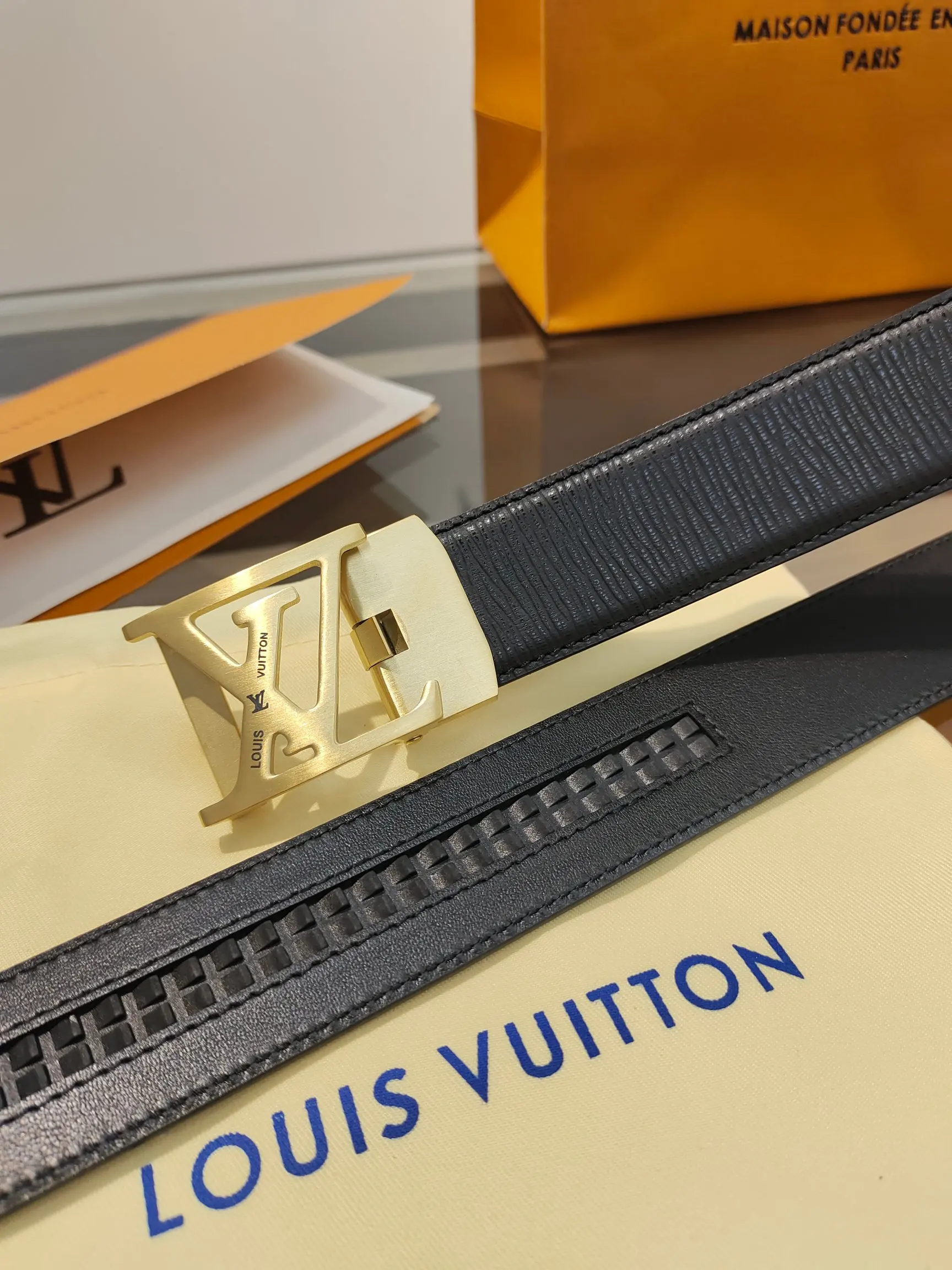 LV. Men s automatic belt with full packaging, automatic smooth buckle belt, made of stainless steel hardware, 35MM width, original belt body, free cutting design