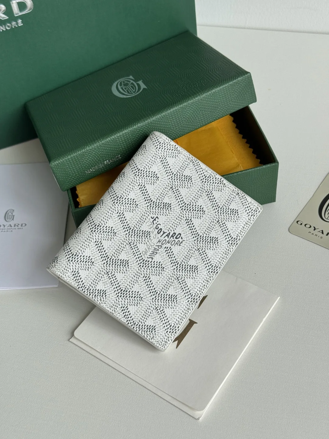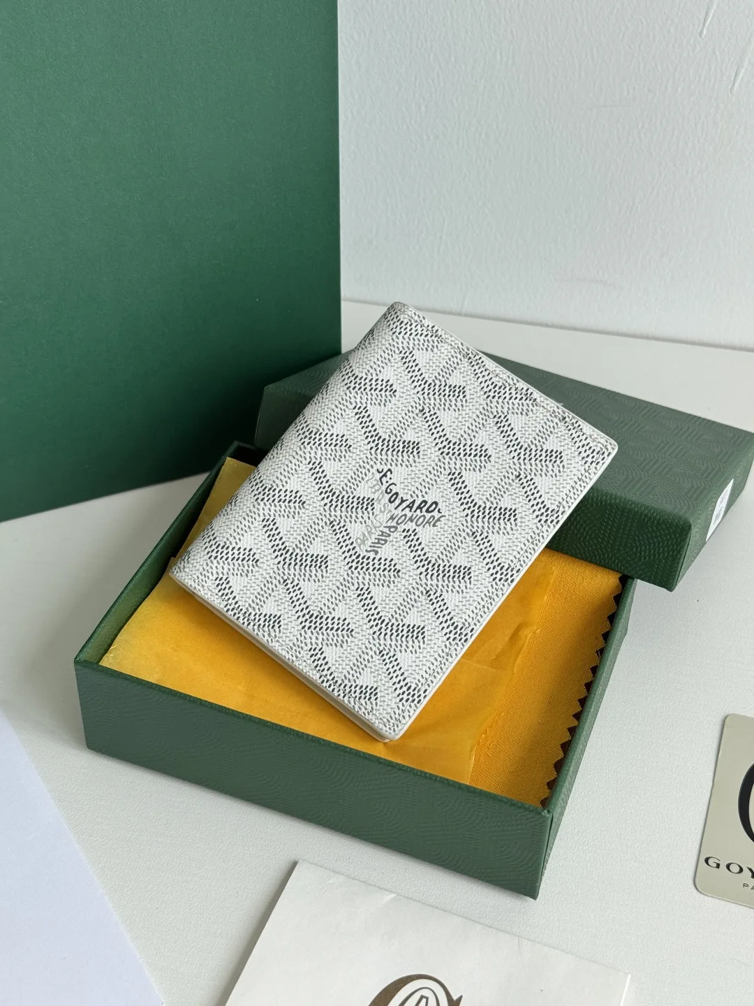 The new Saint-Marc card holder, crafted from top-grain calfskin, features a card slot for displaying badges. Goyard can also store cards and banknotes. Whether for storing badges, ..