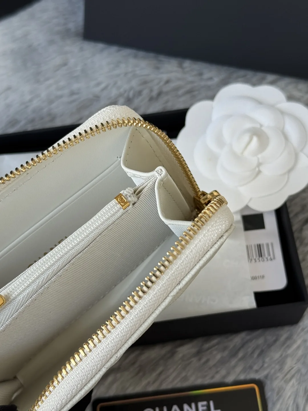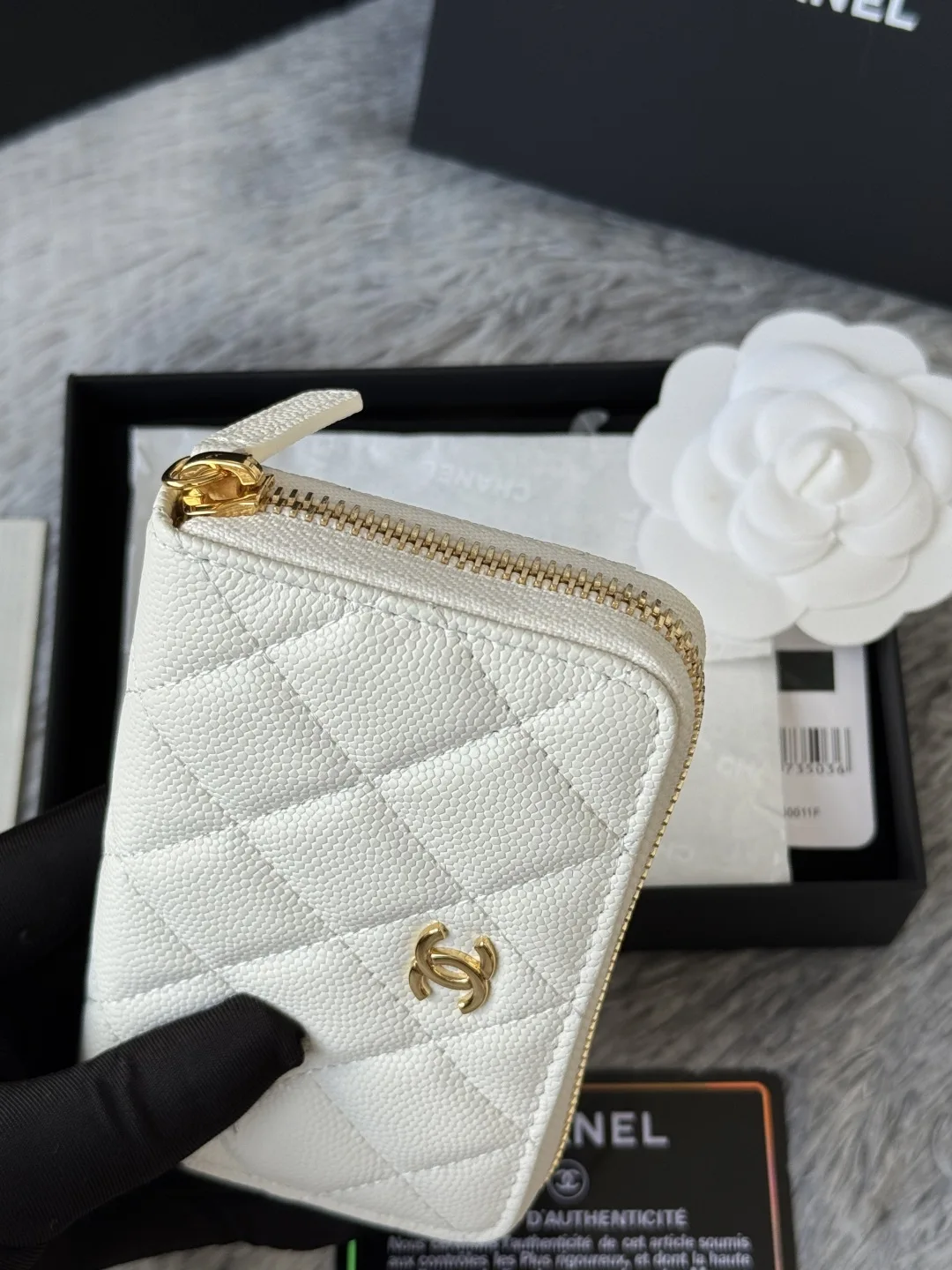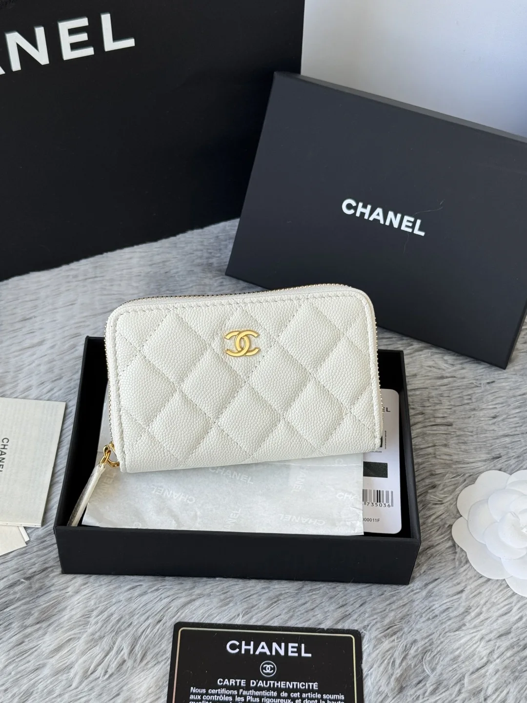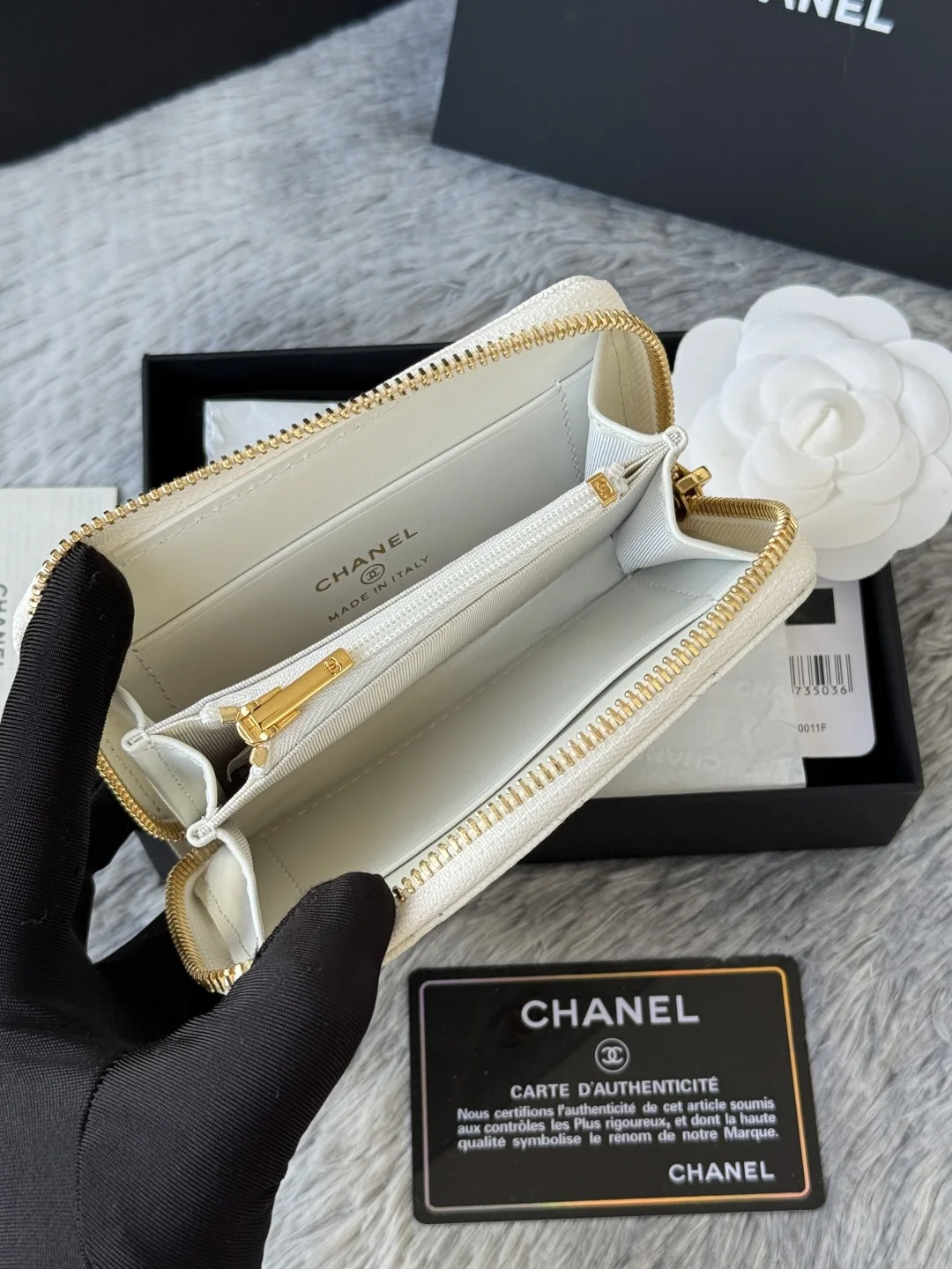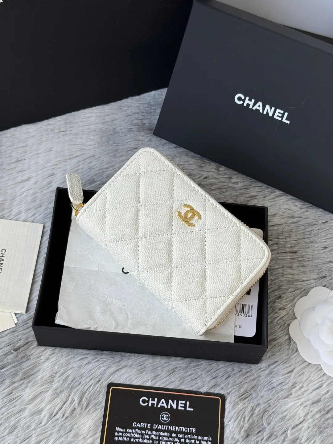 Medium Chanel 25c large zip pouch, with a zippered first-row gossip interior, larger zippered black and gold calfskin coin purse, made of caviar leather. The Ginza SA was fantastic, enthusiastic, and patient, bringing out a bunch of black and gold cardholders. Several popular coin purses were available. I went for the L-shaped zip coin purse, but after trying it out, my nails made it a bit difficult to insert and remove cards. This 25c large version is very stylish, and the upgraded version is very practical. Bought it quickly! Chanel 25c, Chanel coin purse, Chanel cardholder, cardholder recommendation, zip coin purse Chanel. Number: 3686 (0112) 25c Size: 12*5cmx8cmx2cm