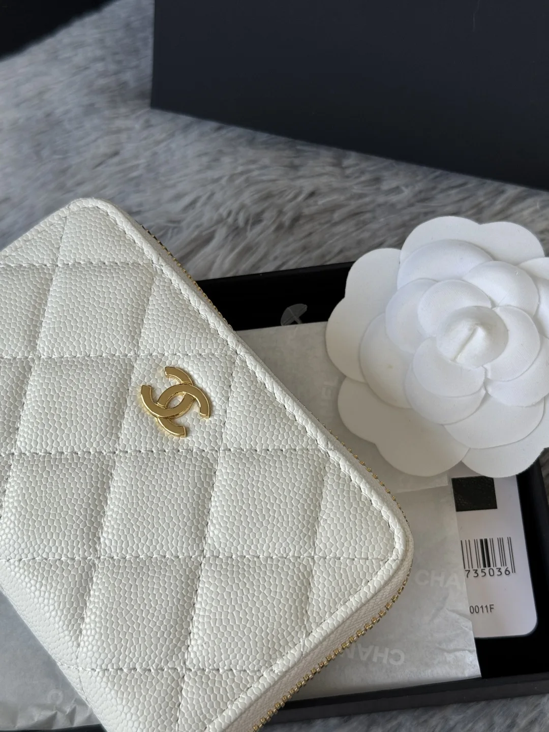 Medium Chanel 25c large zip pouch, with a zippered first-row gossip interior, larger zippered black and gold calfskin coin purse, made of caviar leather. The Ginza SA was fantast..