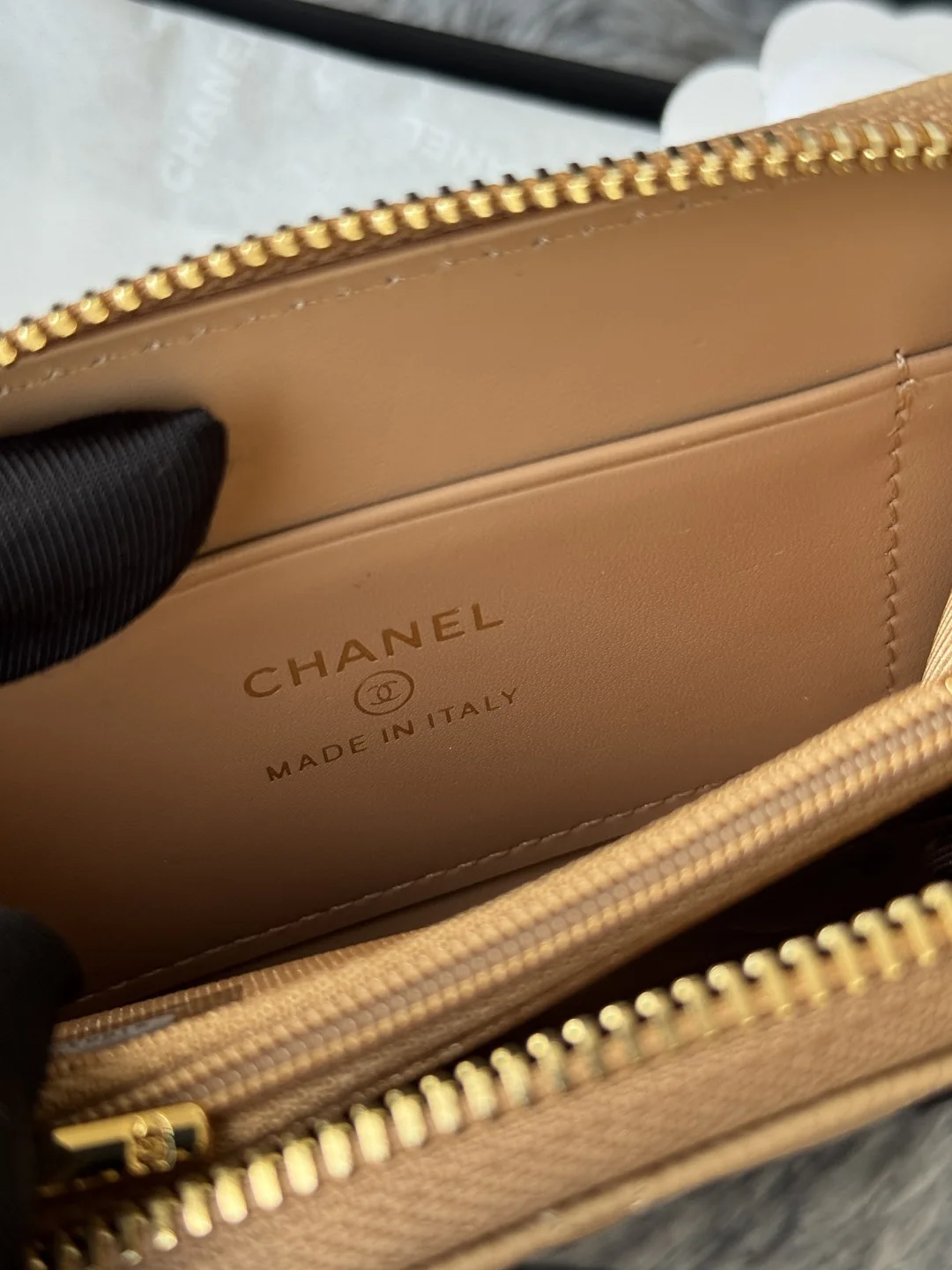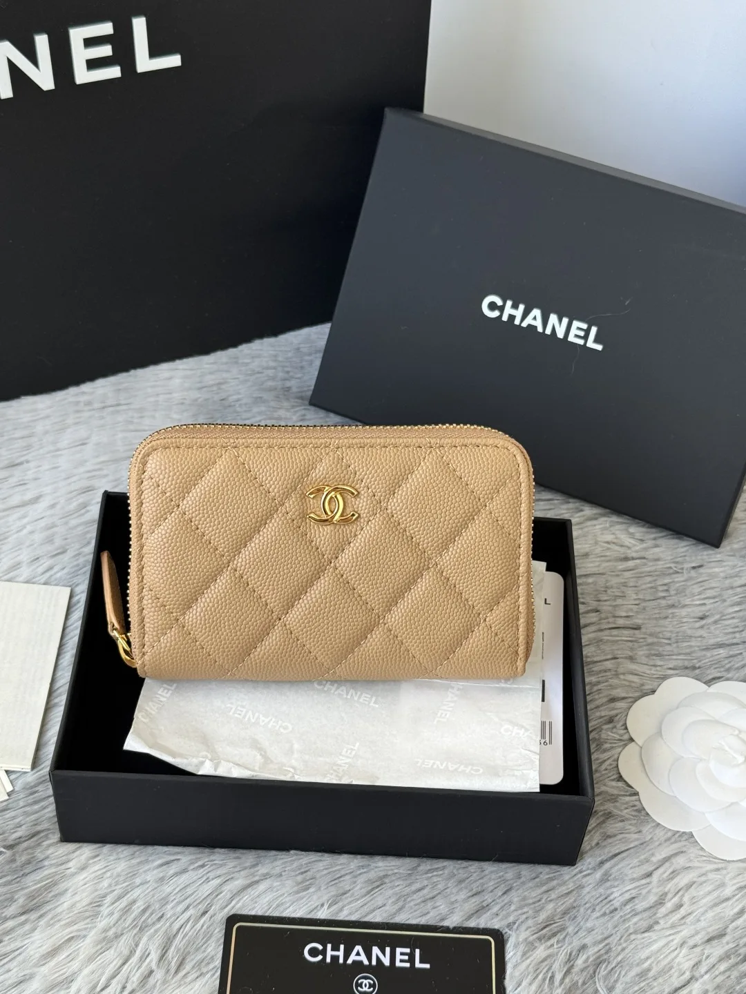 Medium Chanel 25c large zip pouch, with a zippered first-row gossip interior, larger zippered black and gold calfskin coin purse, made of caviar leather. The Ginza SA was fantastic, enthusiastic, and patient, bringing out a bunch of black and gold cardholders. Several popular coin purses were available. I went for the L-shaped zip coin purse, but after trying it out, my nails made it a bit difficult to insert and remove cards. This 25c large version is very stylish, and the upgraded version is very practical. Bought it quickly! Chanel 25c, Chanel coin purse, Chanel cardholder, cardholder recommendation, zip coin purse Chanel. Number: 3686 (0112) 25c Size: 12*5cmx8cmx2cm