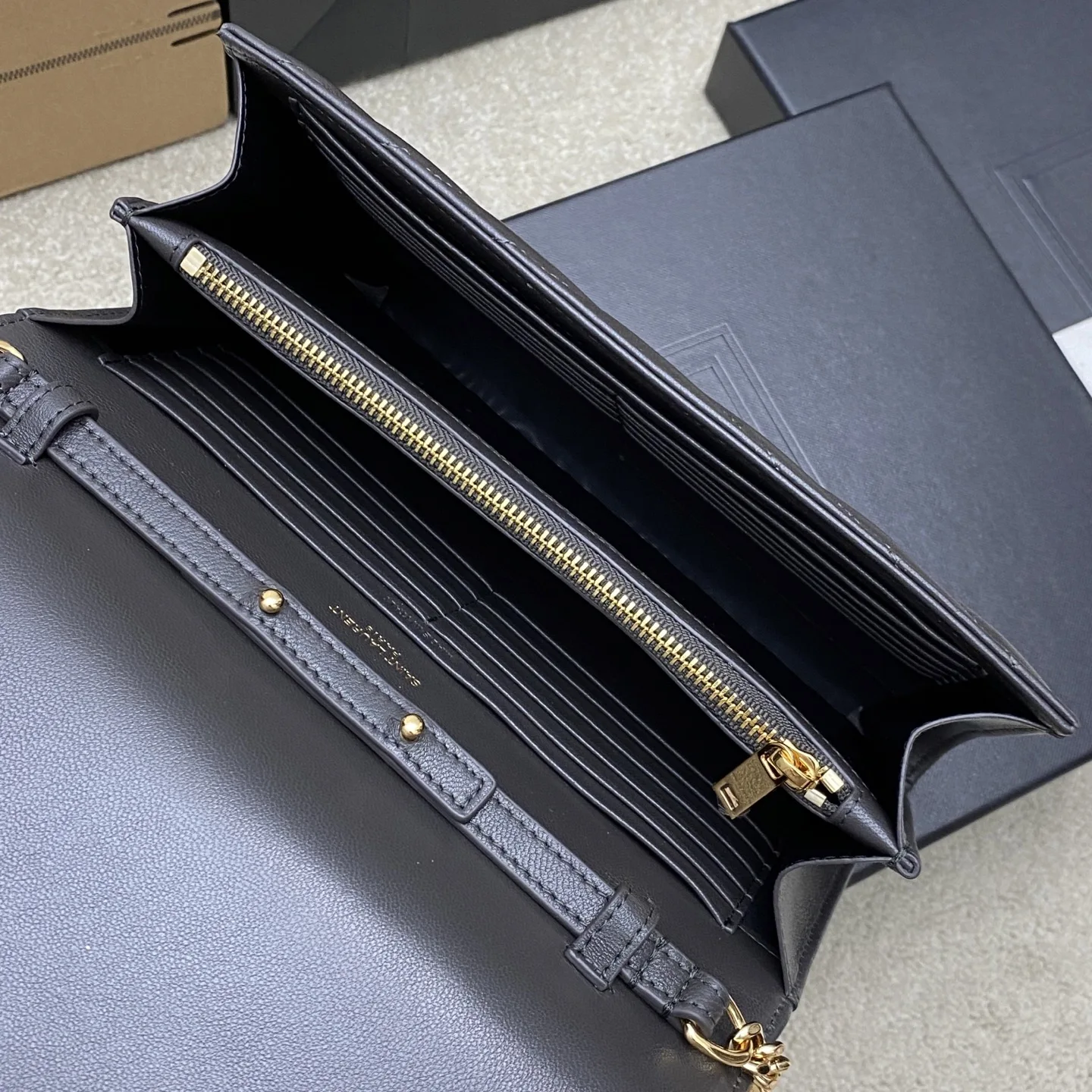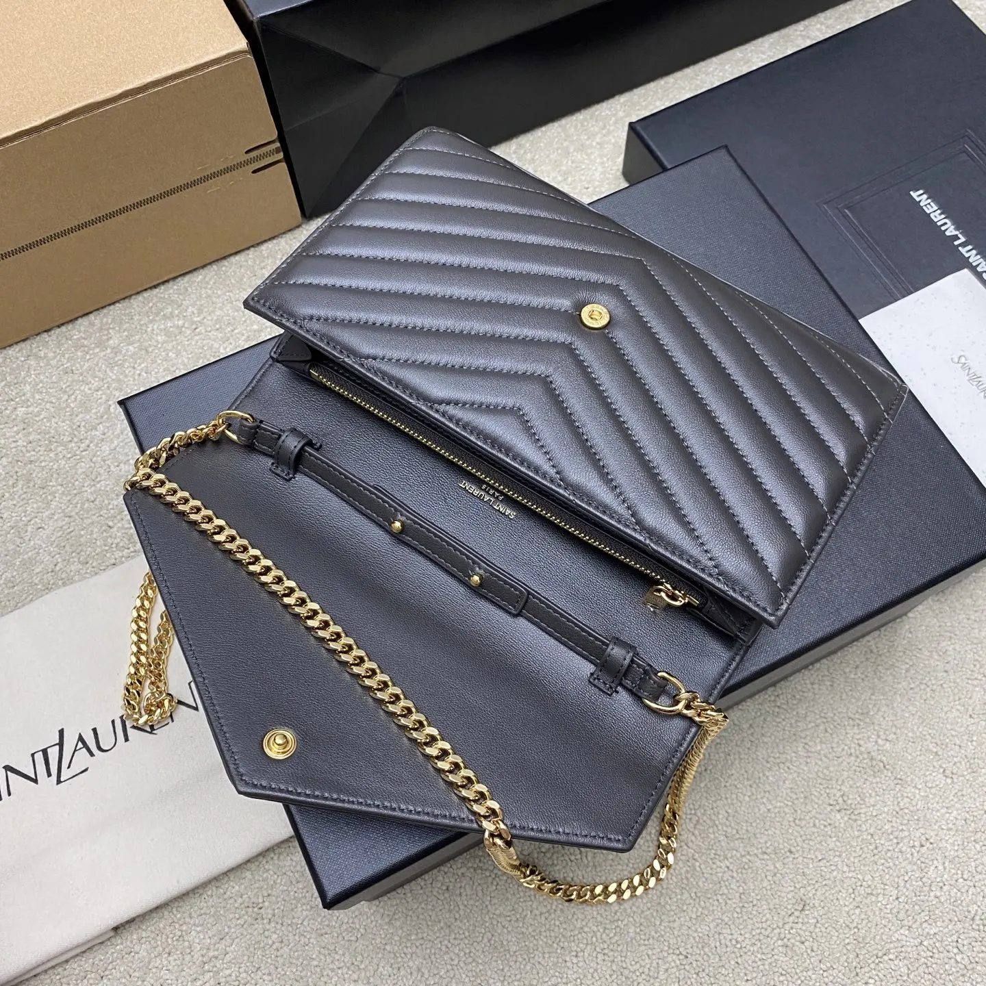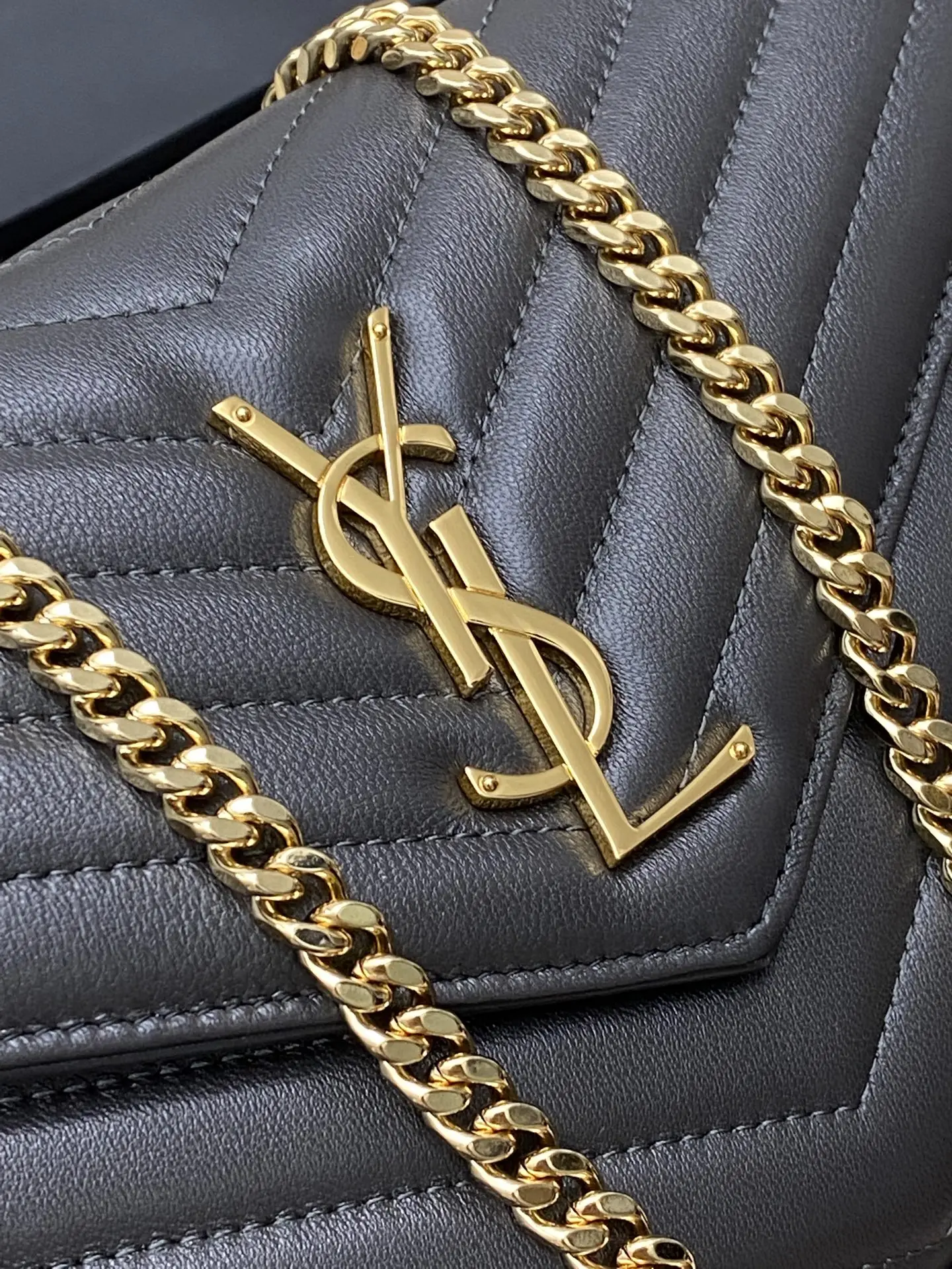 Grey sheepskin/gold MONOGRAM sheepskin chain crossbody bag, a super practical small bag. The most classic style, made of 100% original sheepskin with fine handcraftsmanship. The custom metal YSL logo highlights individuality. The flap design ensures security. Small bag with large capacity, the interior features 20 card slots, two banknote compartments, two central compartments, and one zippered inner pocket to hold everything!